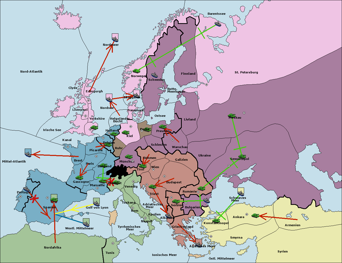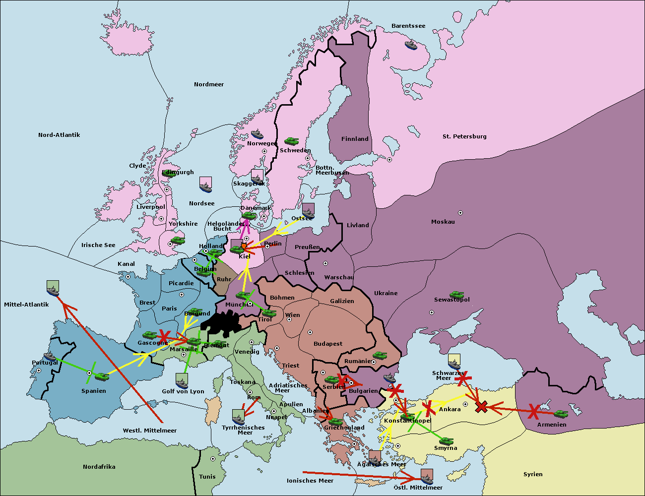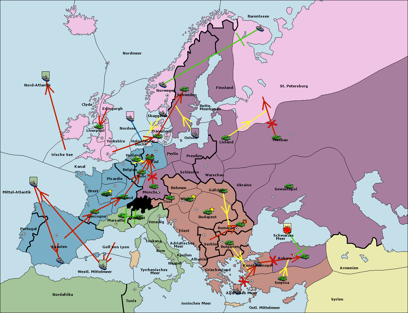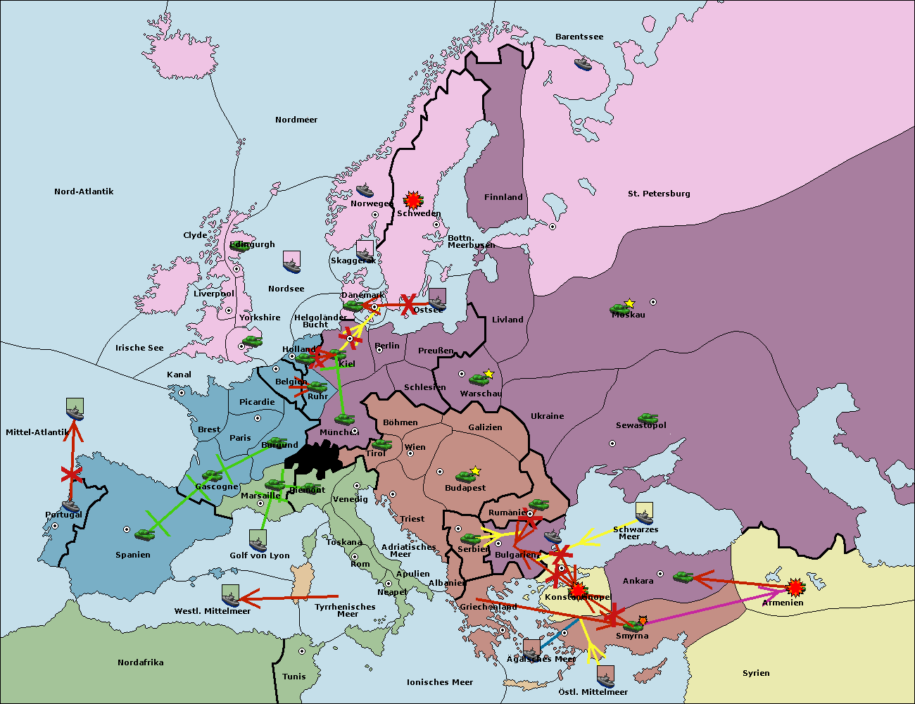 • Die Armee in Konstantinopel support hold nach Bulgarien.