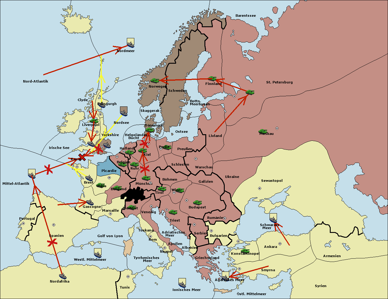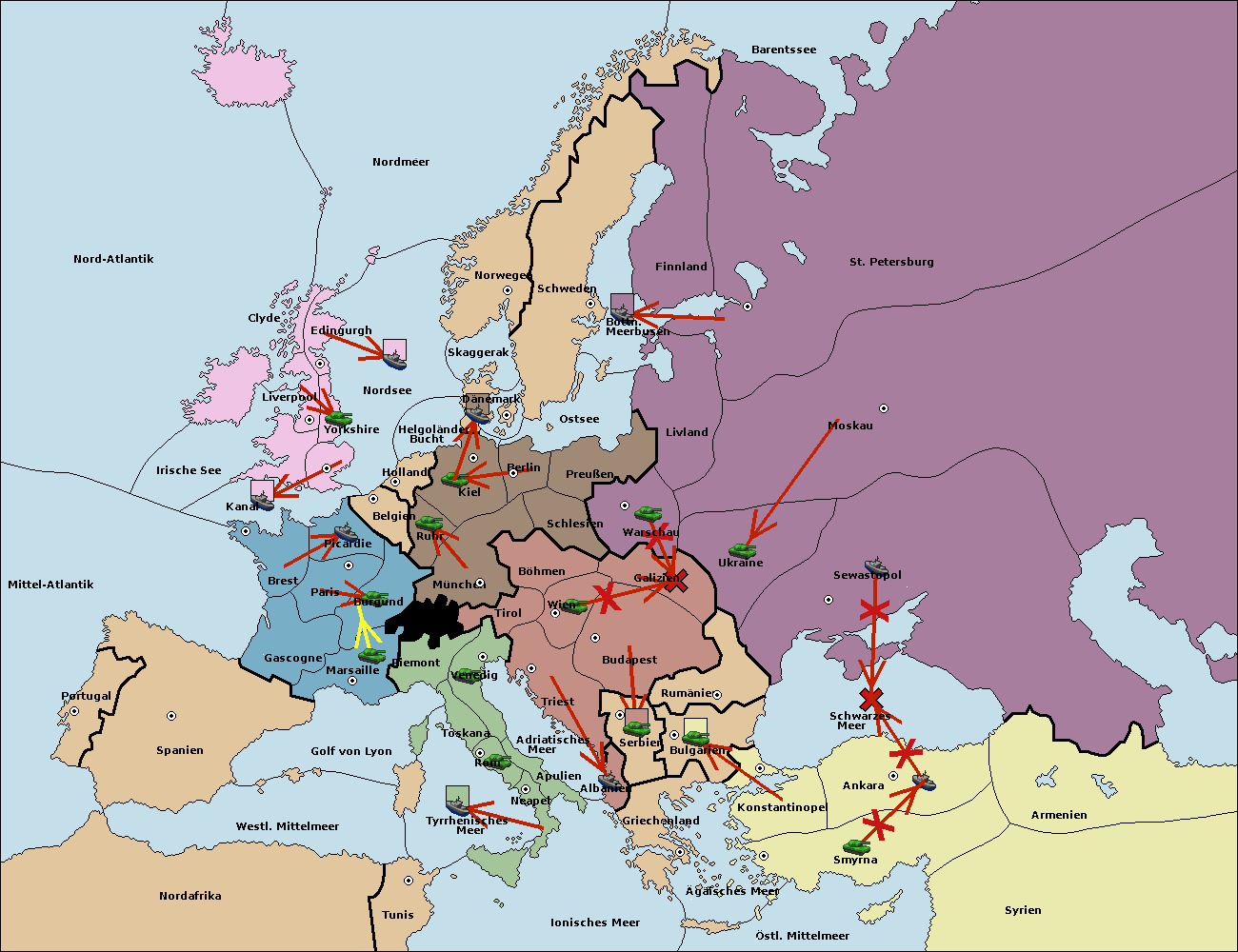 • Die Flotte in Griechenland support hold nach Bulgarien. (gescheitert)