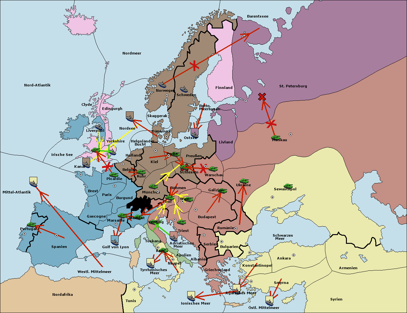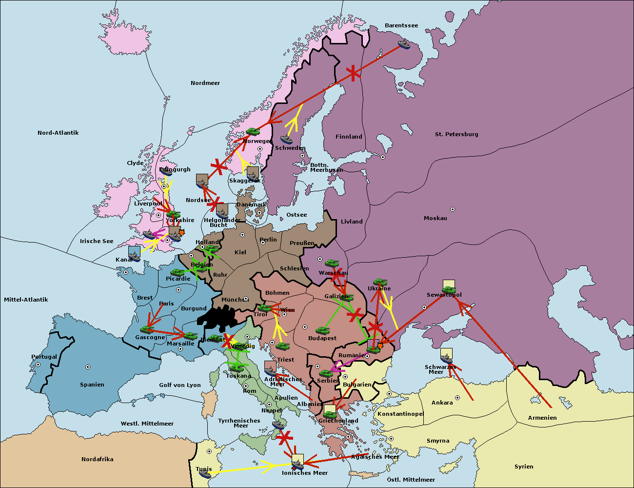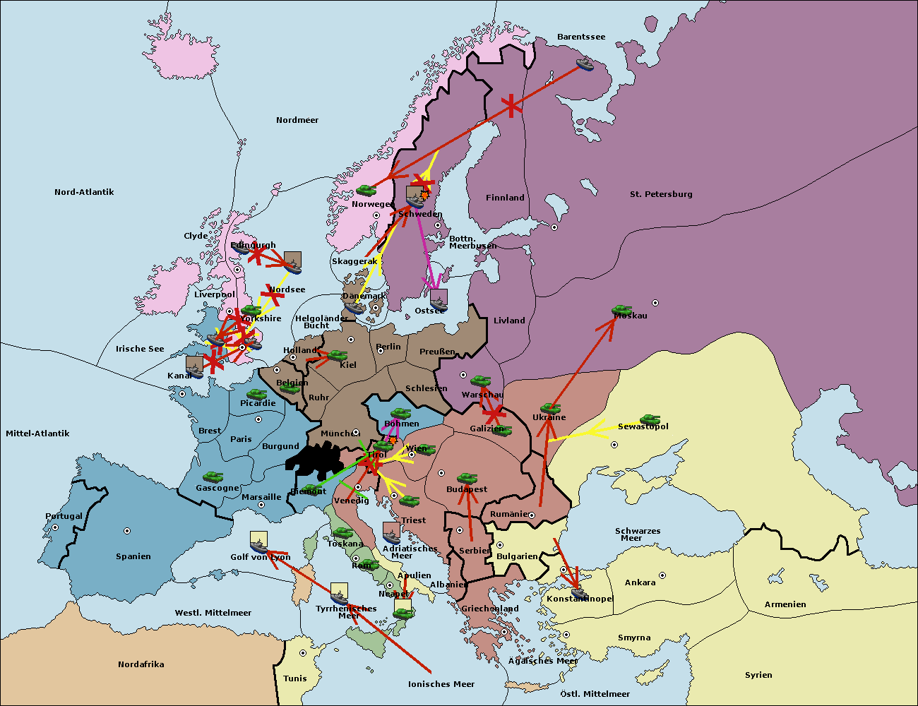 • Die Flotte in St. Petersburg (Nordküste) support move nach Norwegen von Skagerak. (gescheitert)