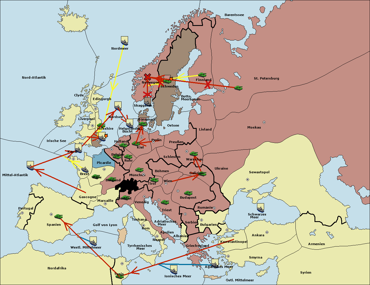 • Die Armee in St. Petersburg move nach Norwegen. (gescheitert)