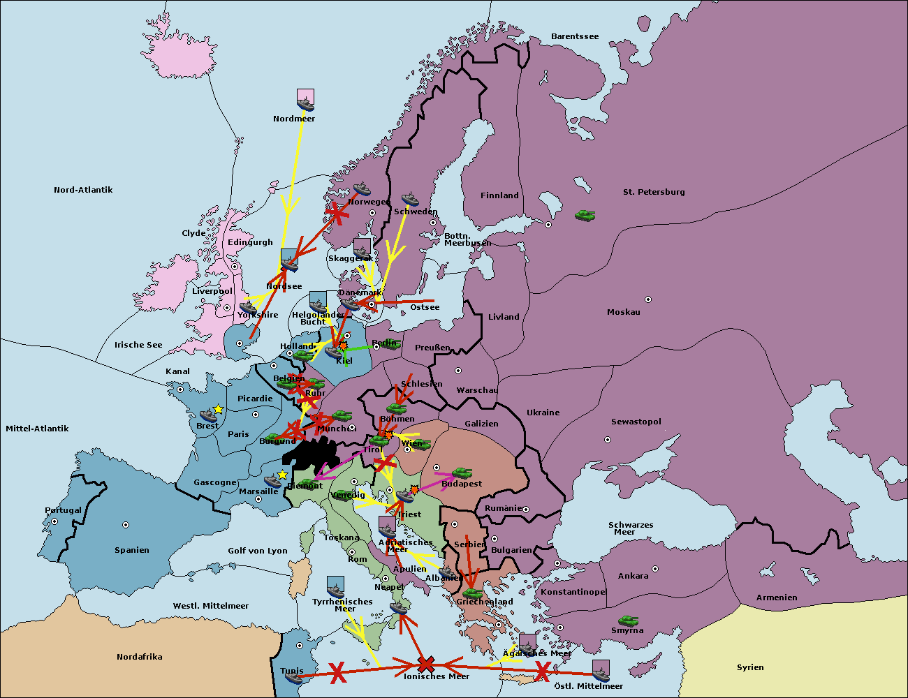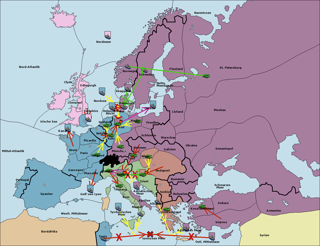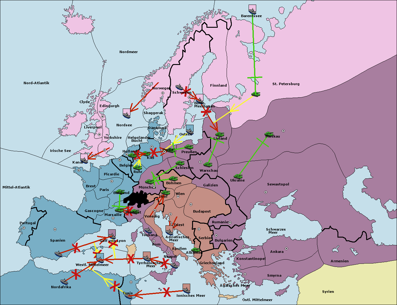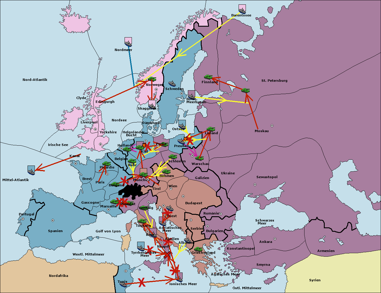• Die Flotte in Nord Afrika move nach Tunis. (gescheitert)