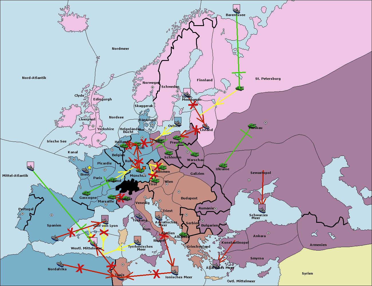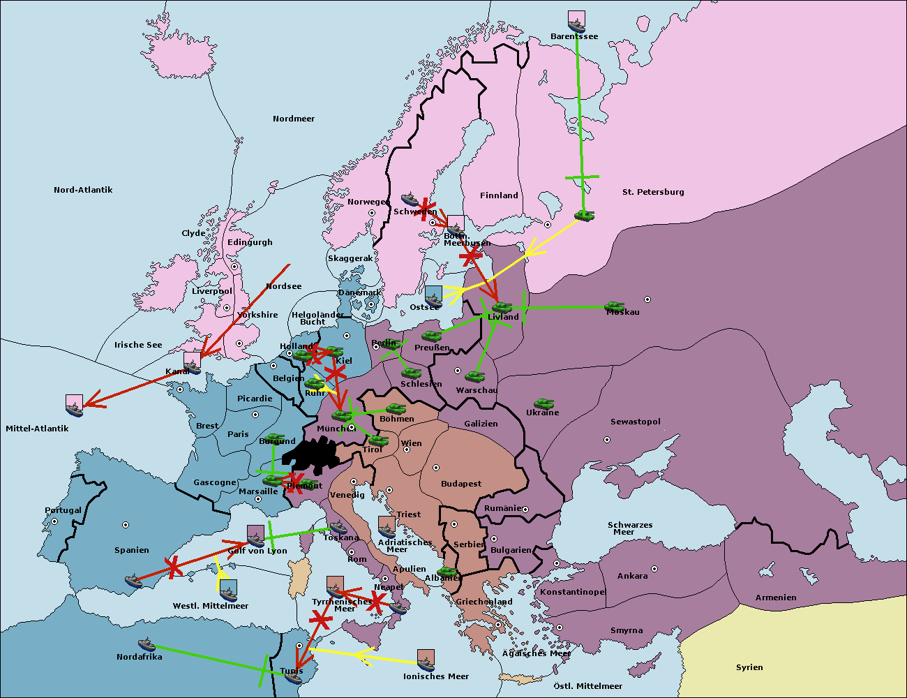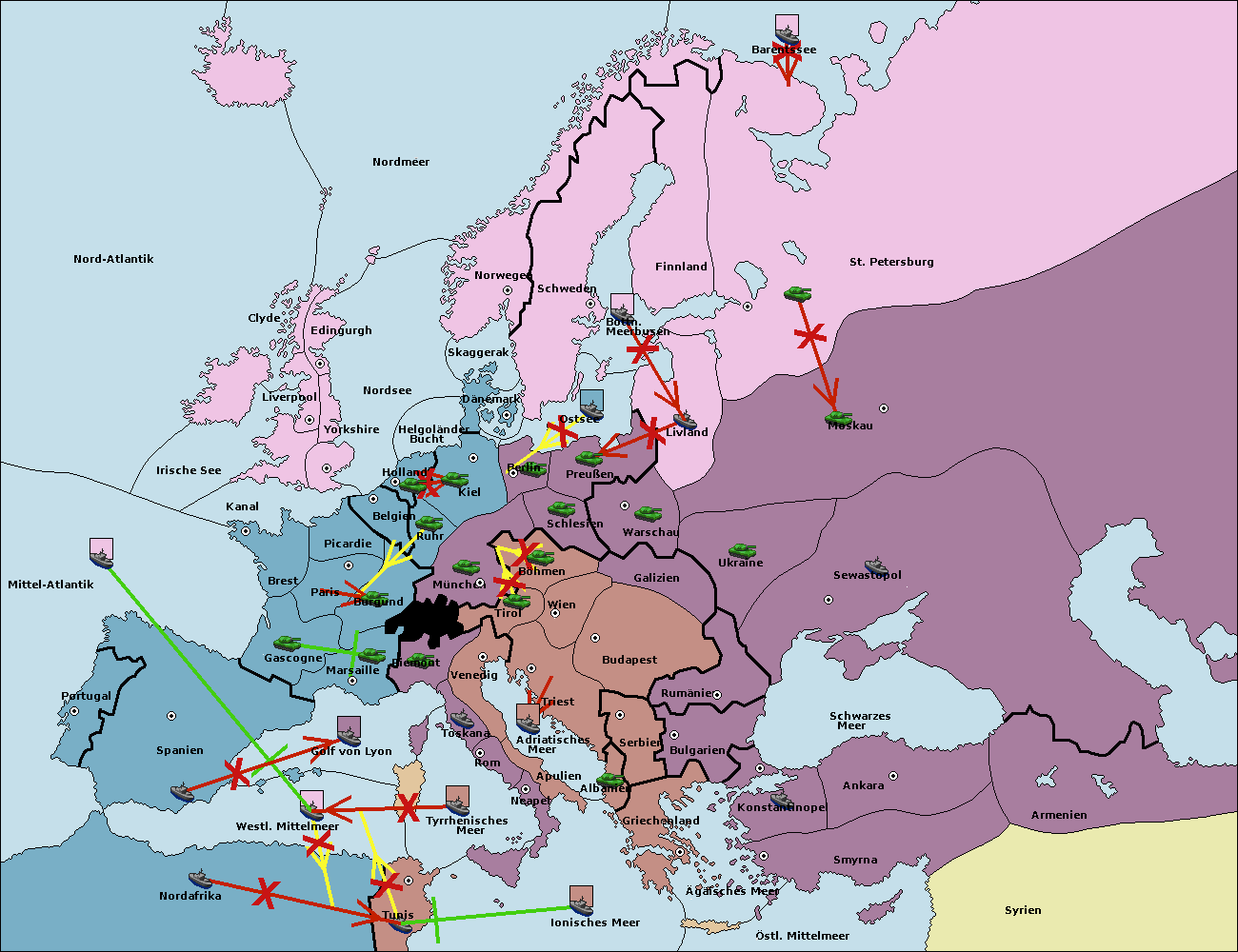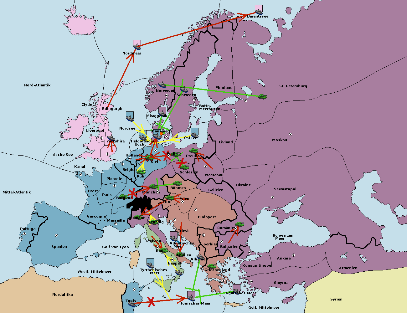 • Die Flotte in Nord Afrika move nach Tunis. (gescheitert)