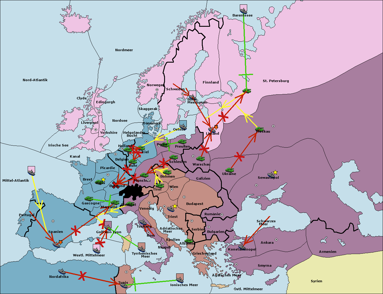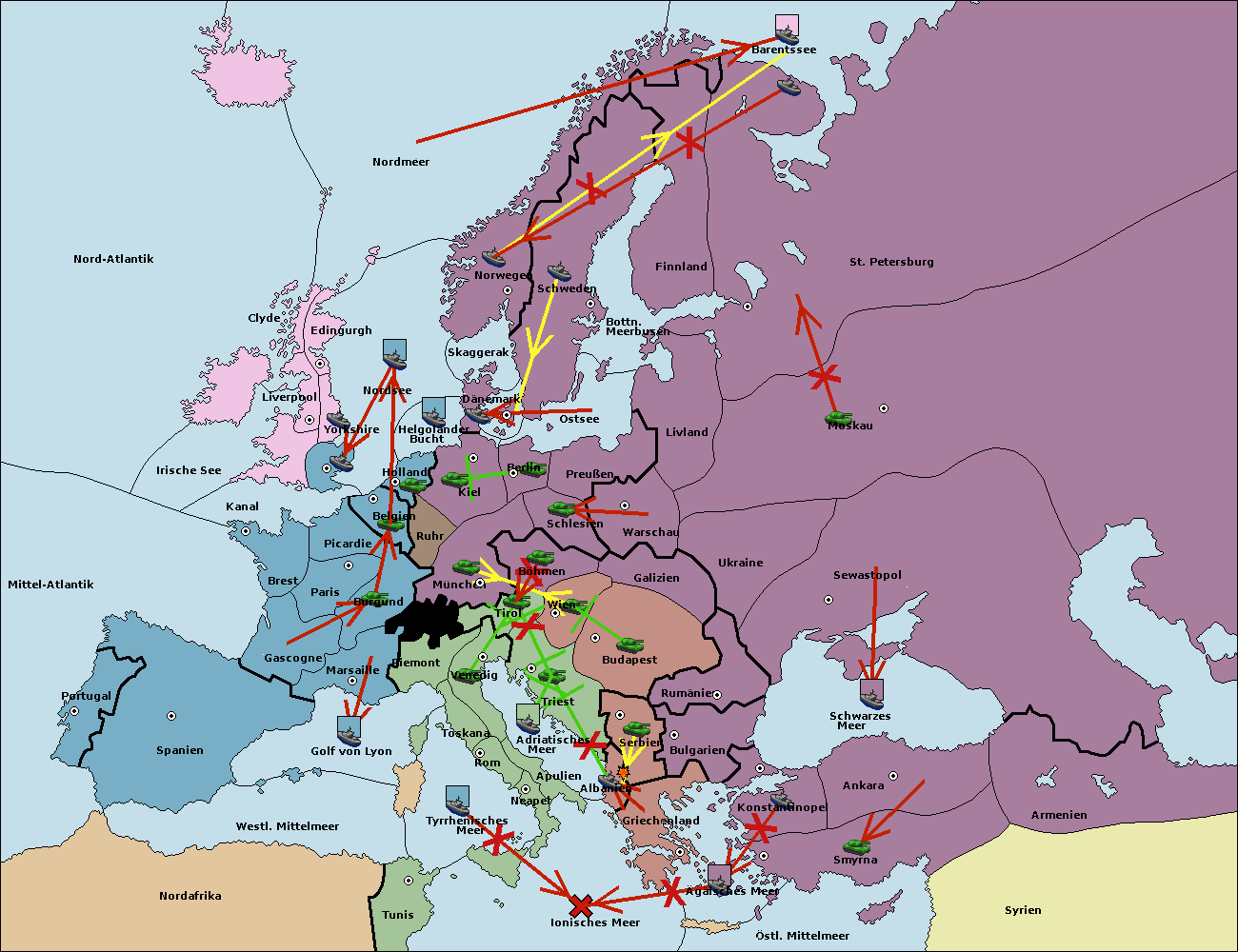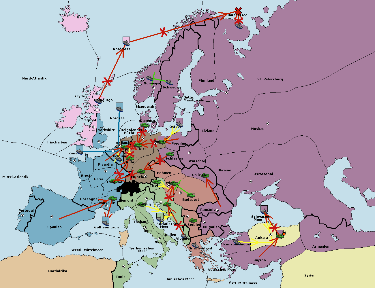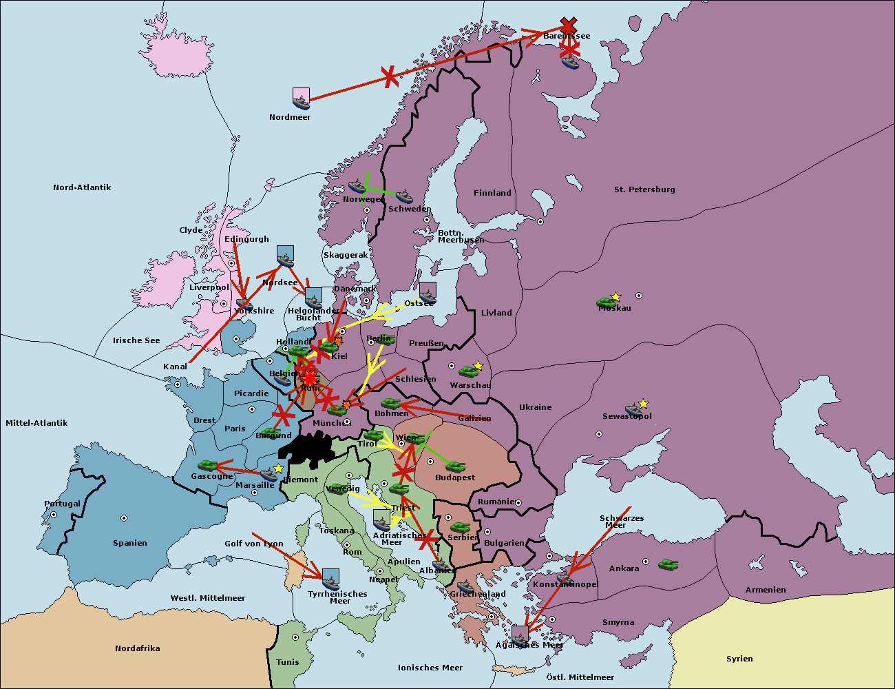 • Die Flotte in Nord Afrika move nach Tunis. (gescheitert)