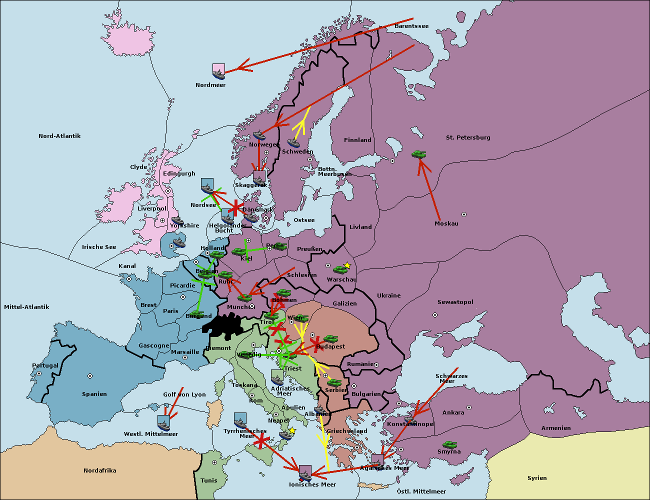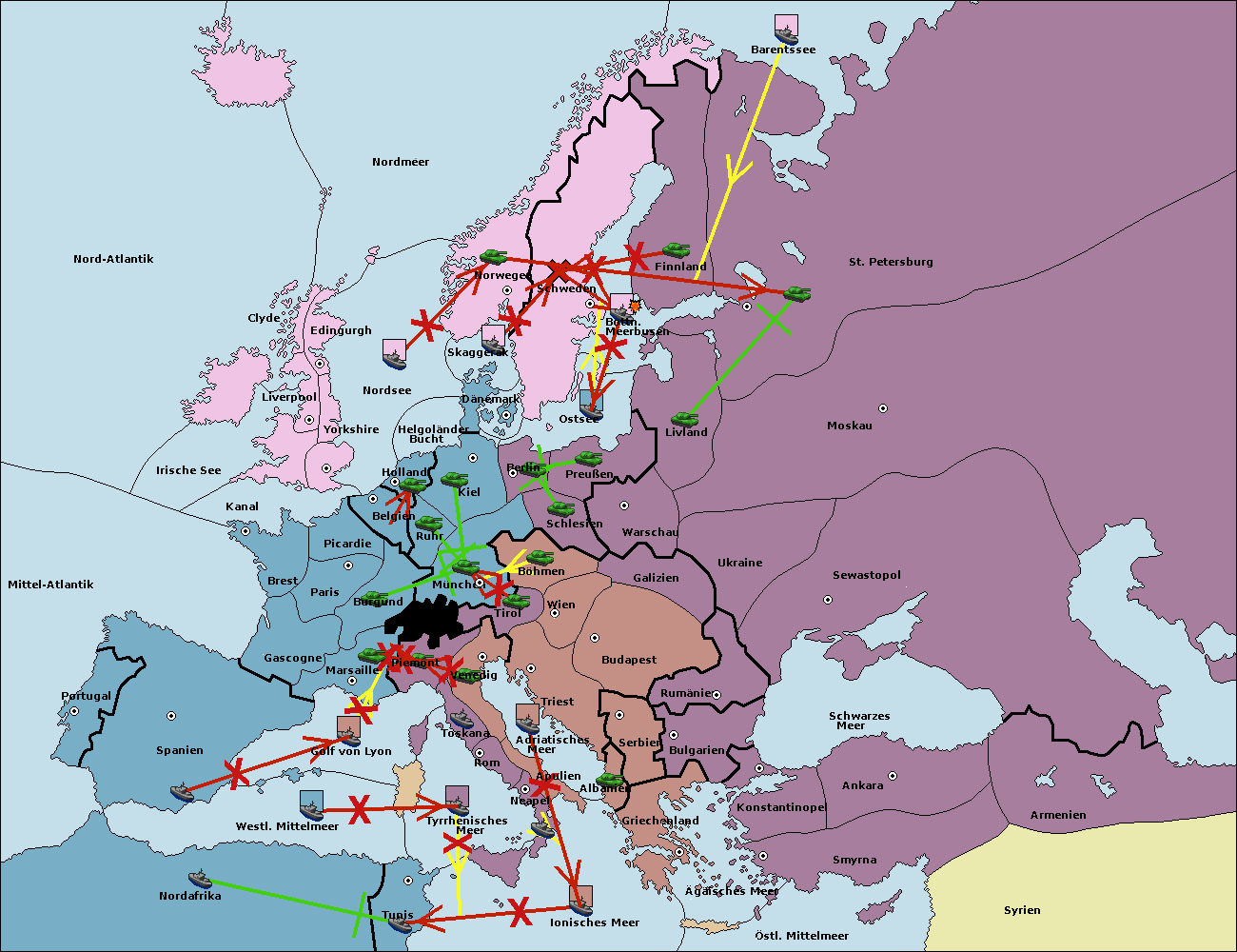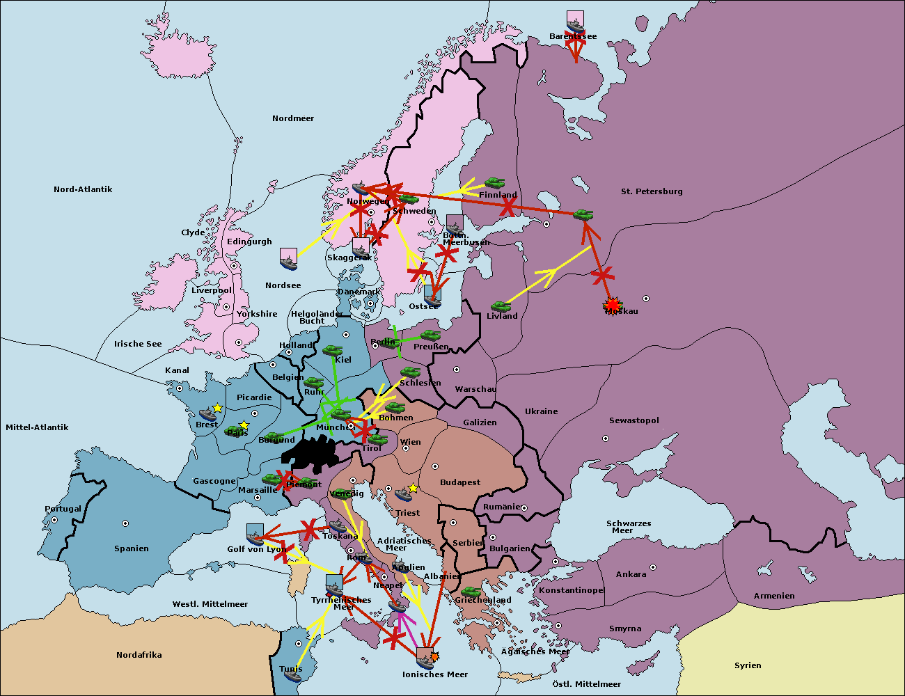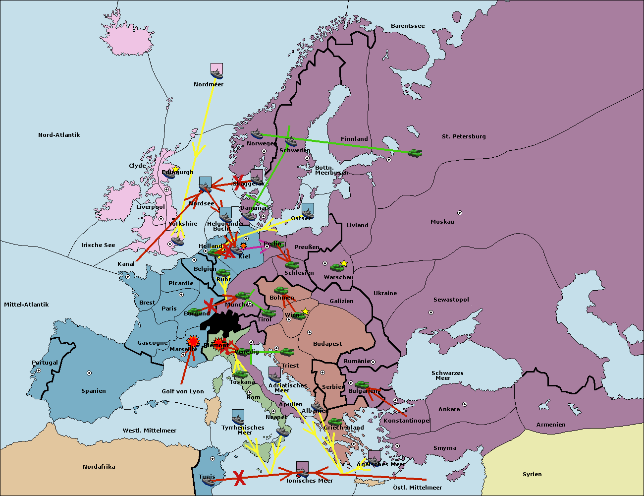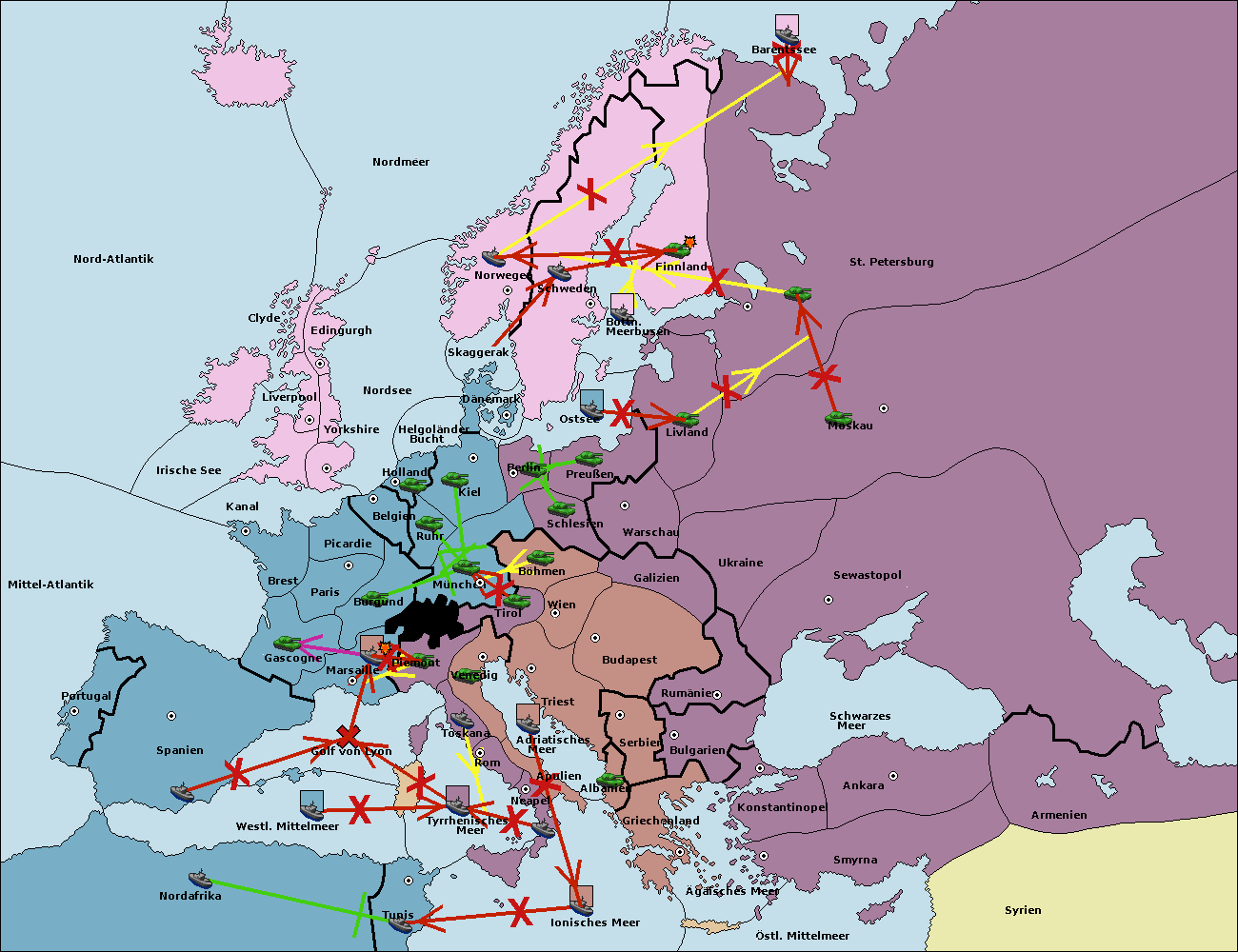 • Die Flotte in Spanien (Südküste) support move nach Marseille von Burgund. (gescheitert) (verdrängt)