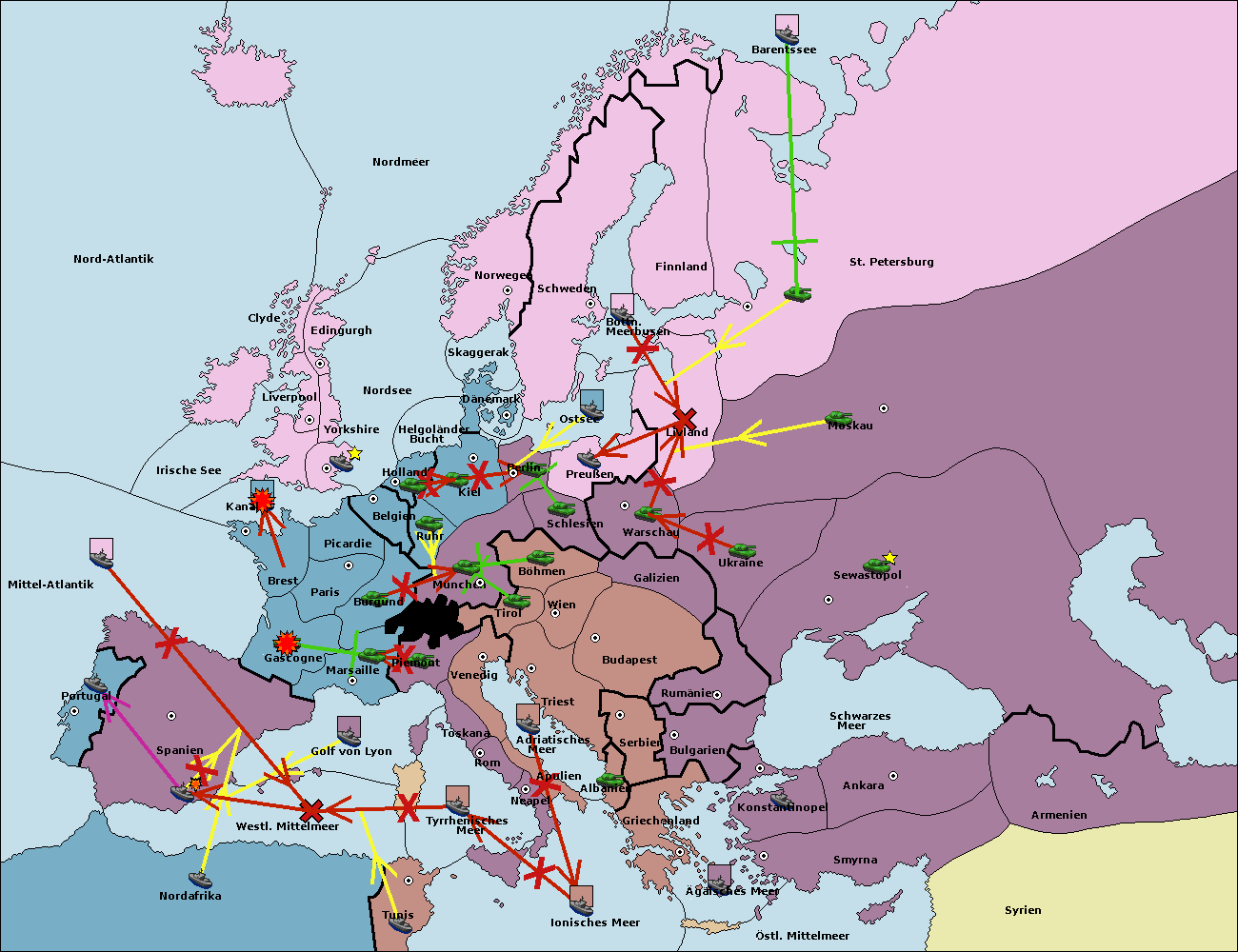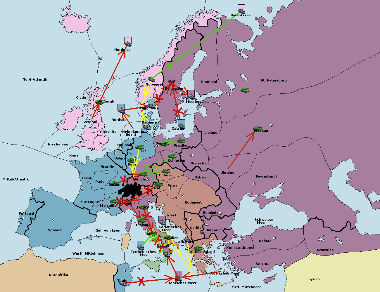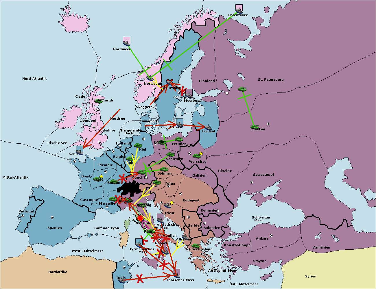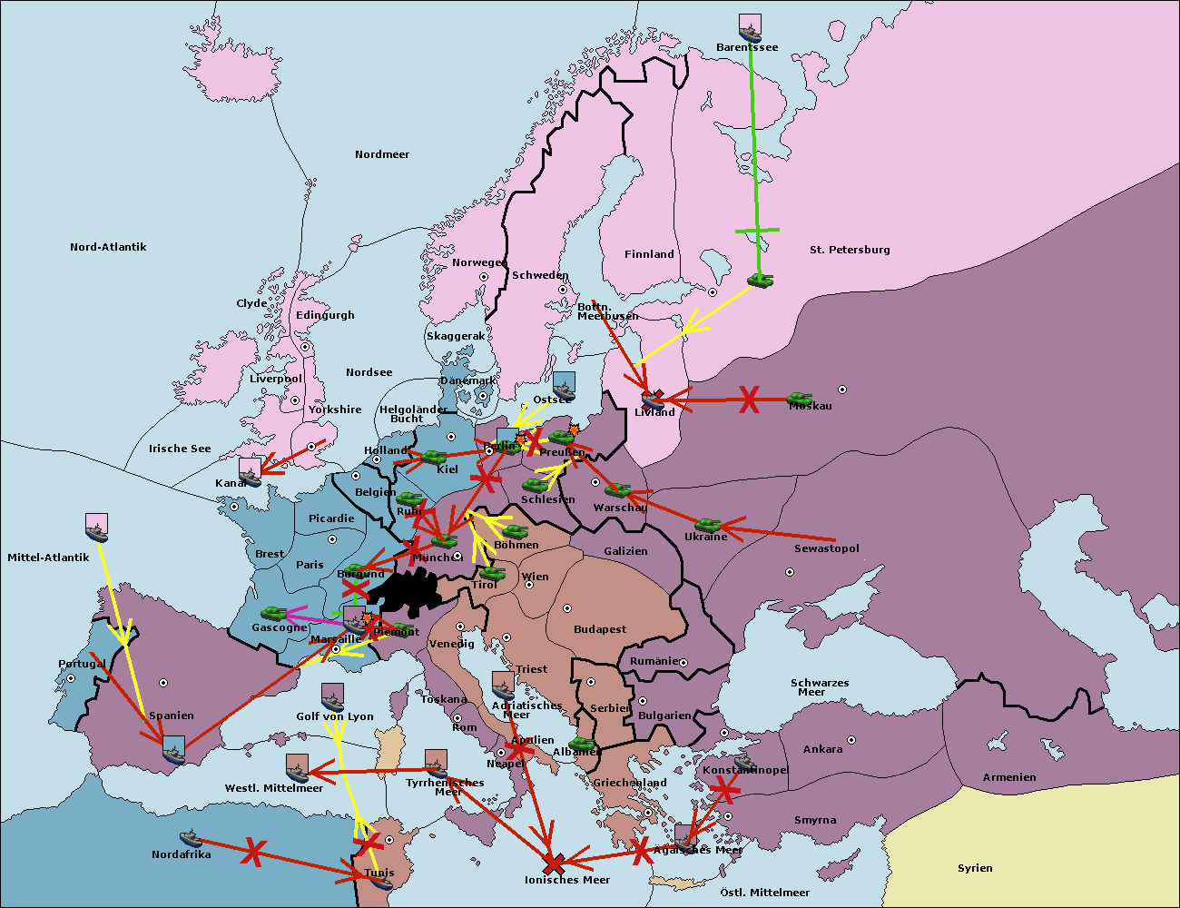 • Die Flotte in Spanien (Südküste) support move nach Marseille von Burgund. (gescheitert) (verdrängt)