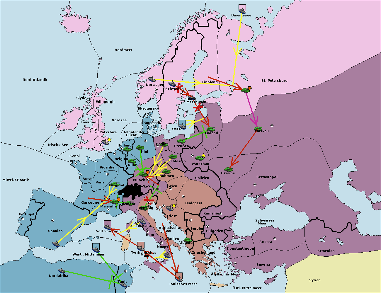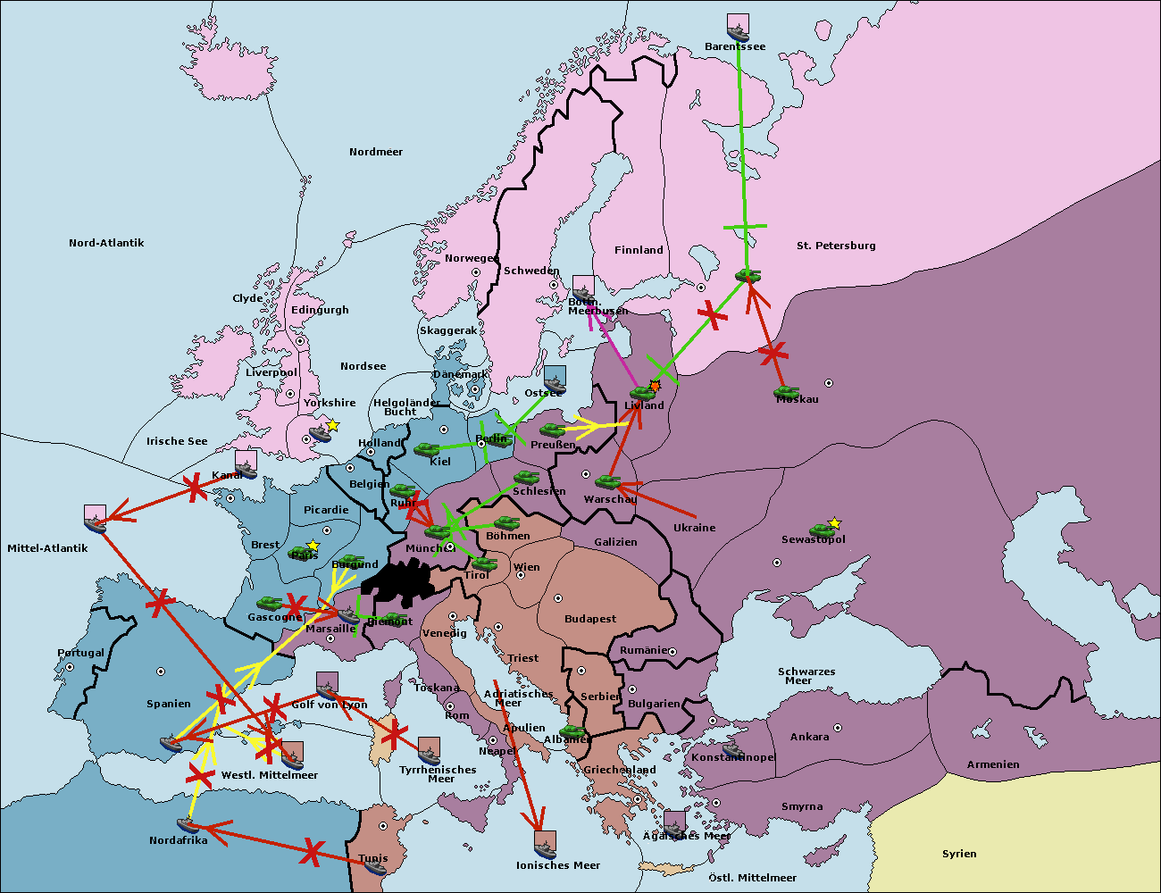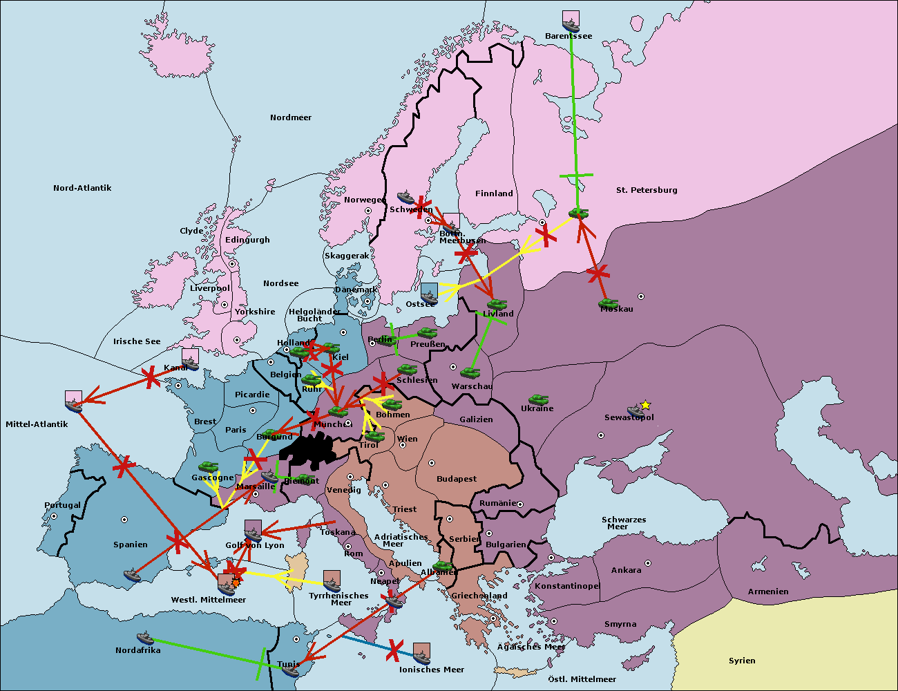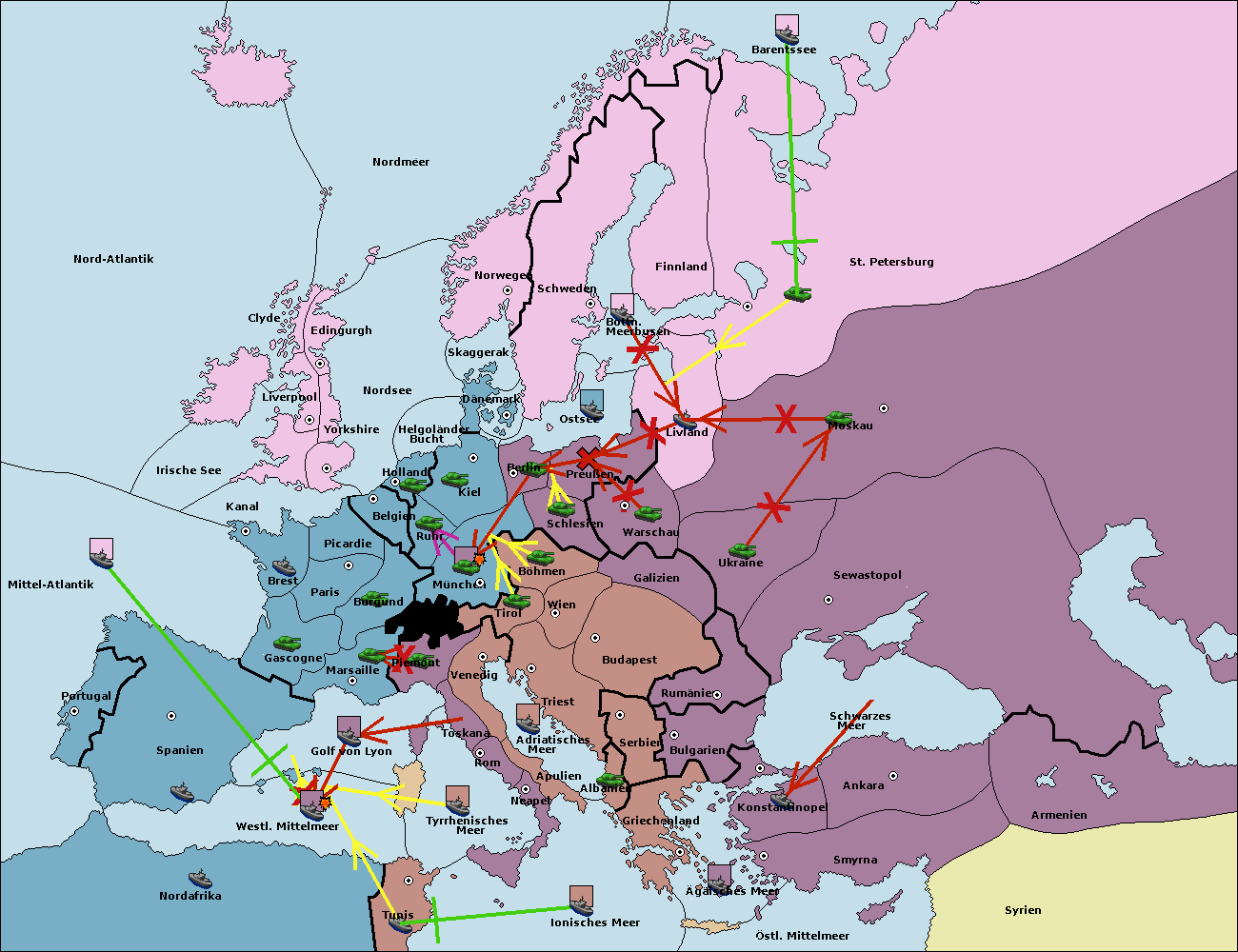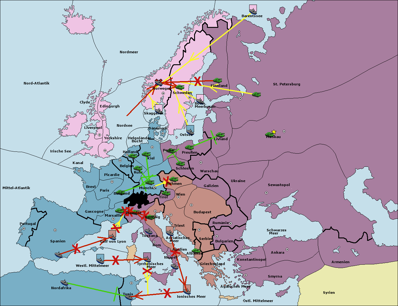 • Die Flotte in Spanien (Südküste) support move nach Marseille von Burgund. (gescheitert) (verdrängt)