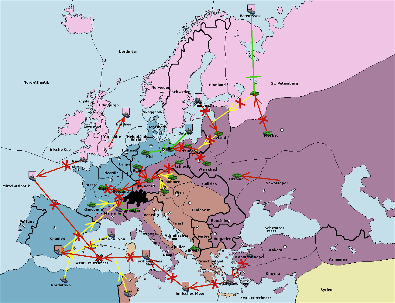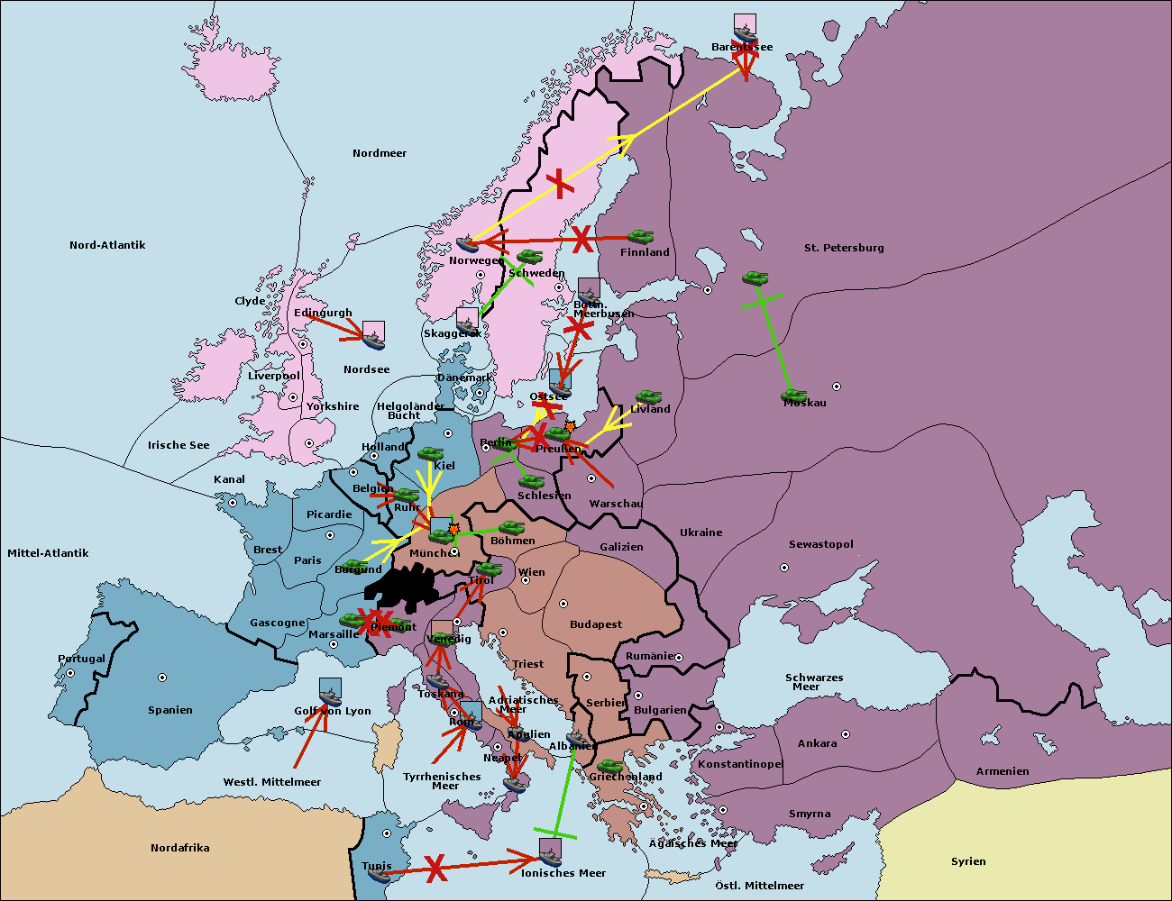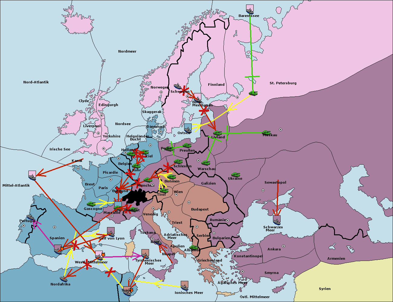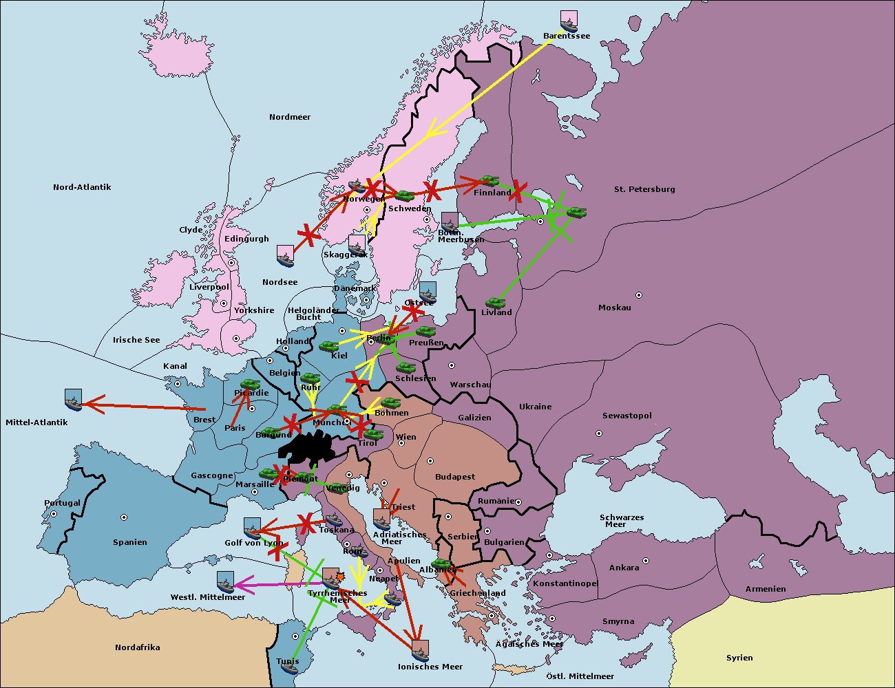 • Die Flotte in Tunis move nach Nord Afrika. (gescheitert)
