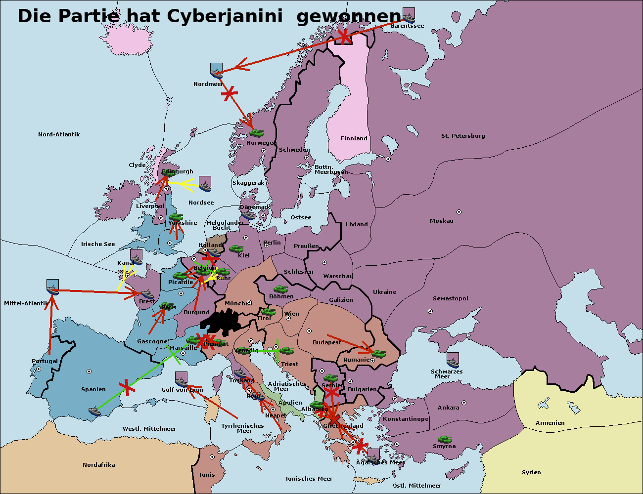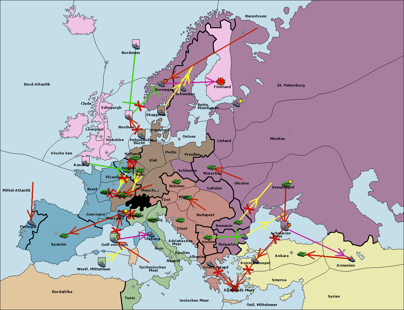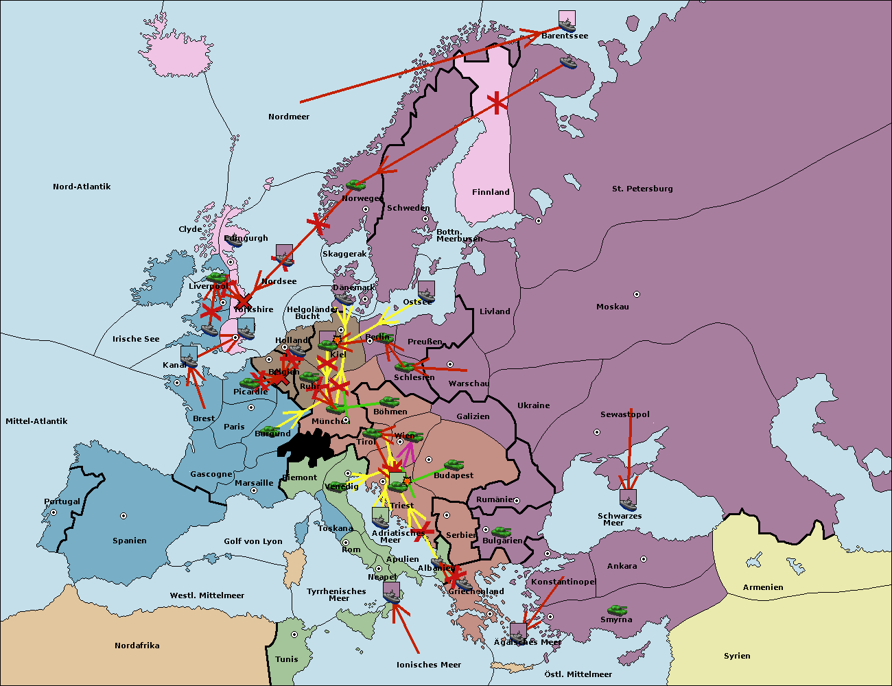 • Die Flotte in St. Petersburg (Nordküste) move nach Barentssee.