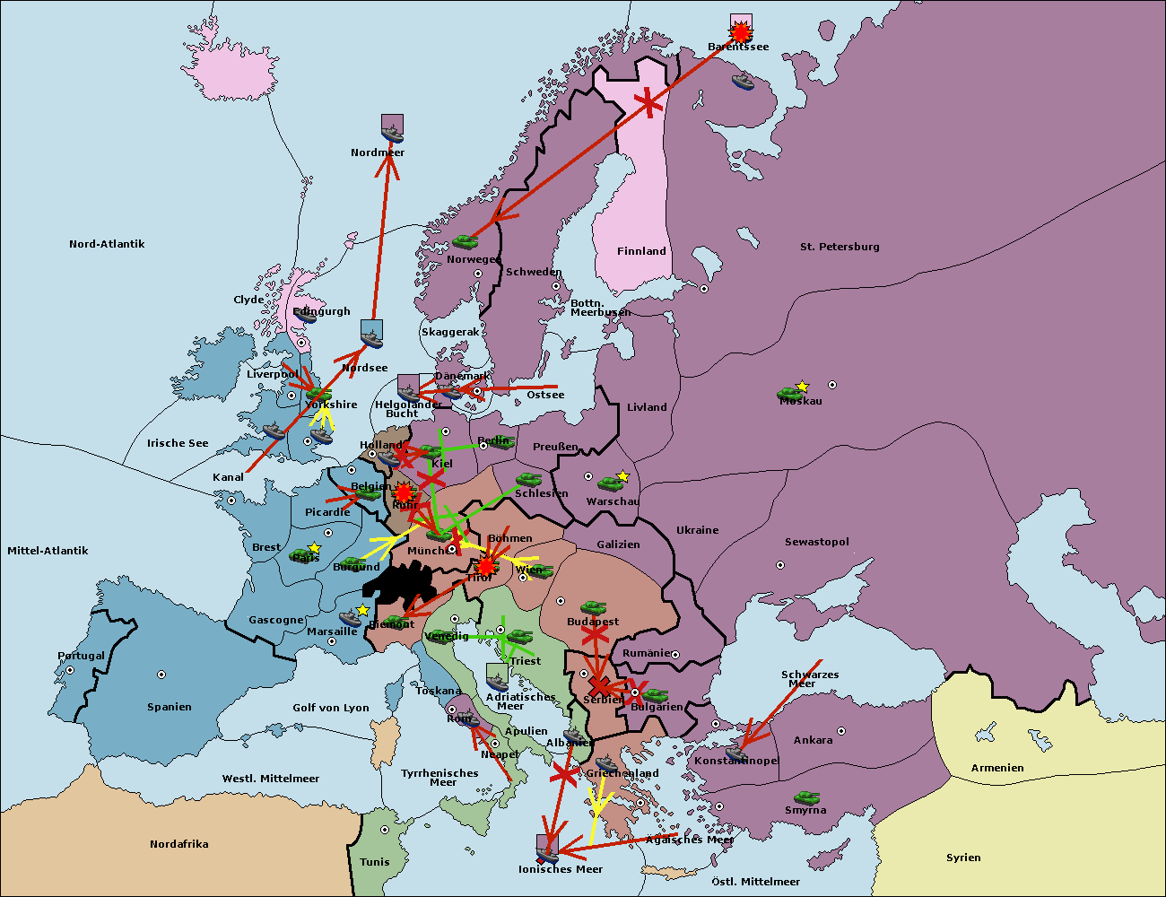• Die Flotte in Bulgarien (Nordküste) support move nach Schwarzes Meer von Sewastopol.