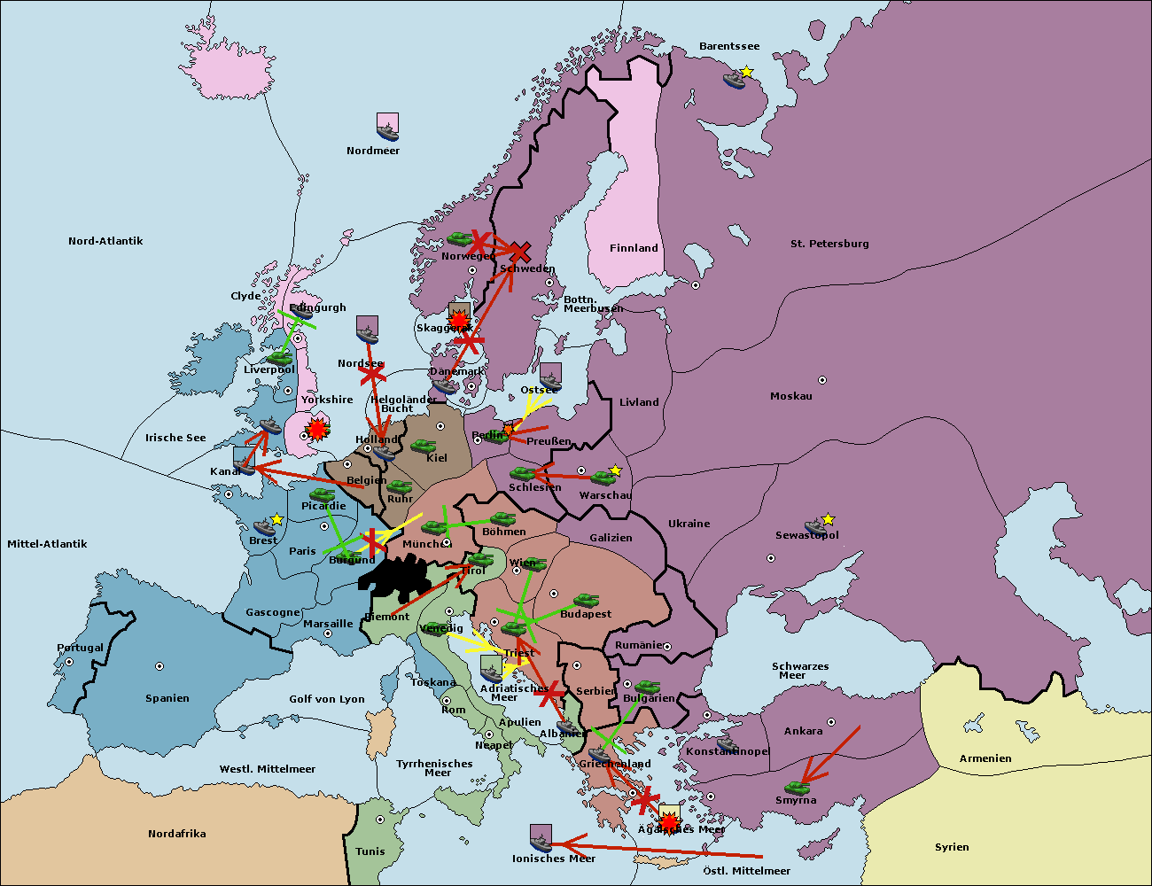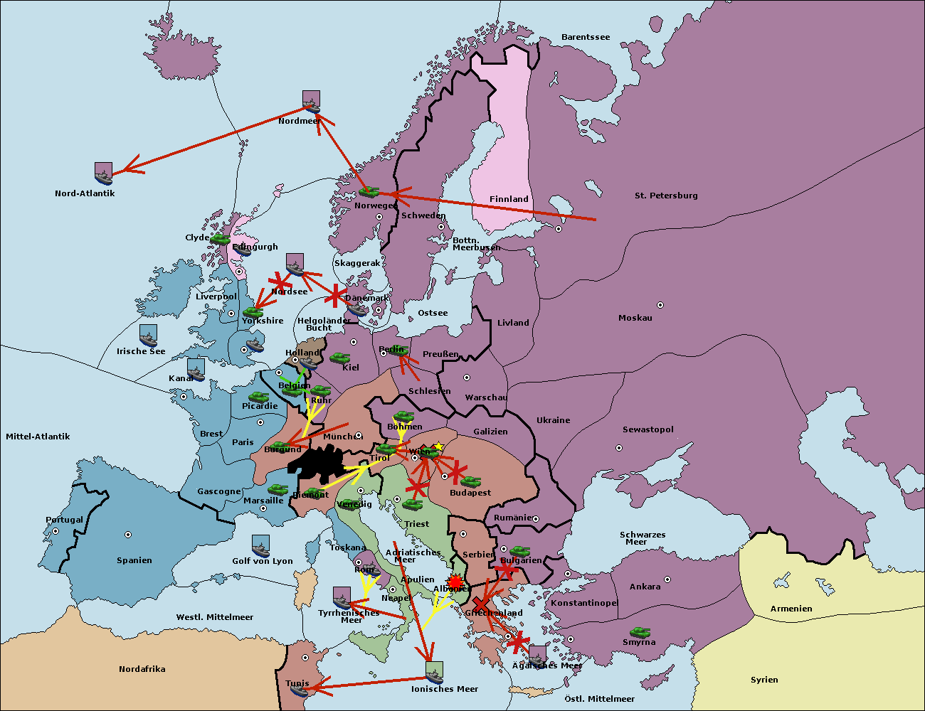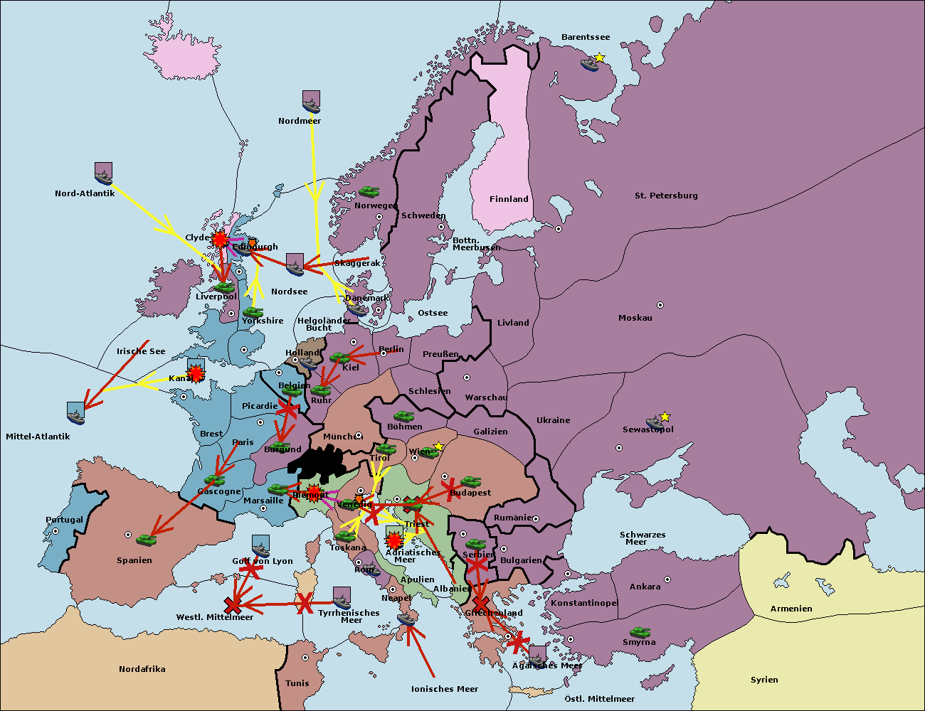 • Die Armee in Bulgarien wird zerstörtFlotte in Bulgarien gebaut.