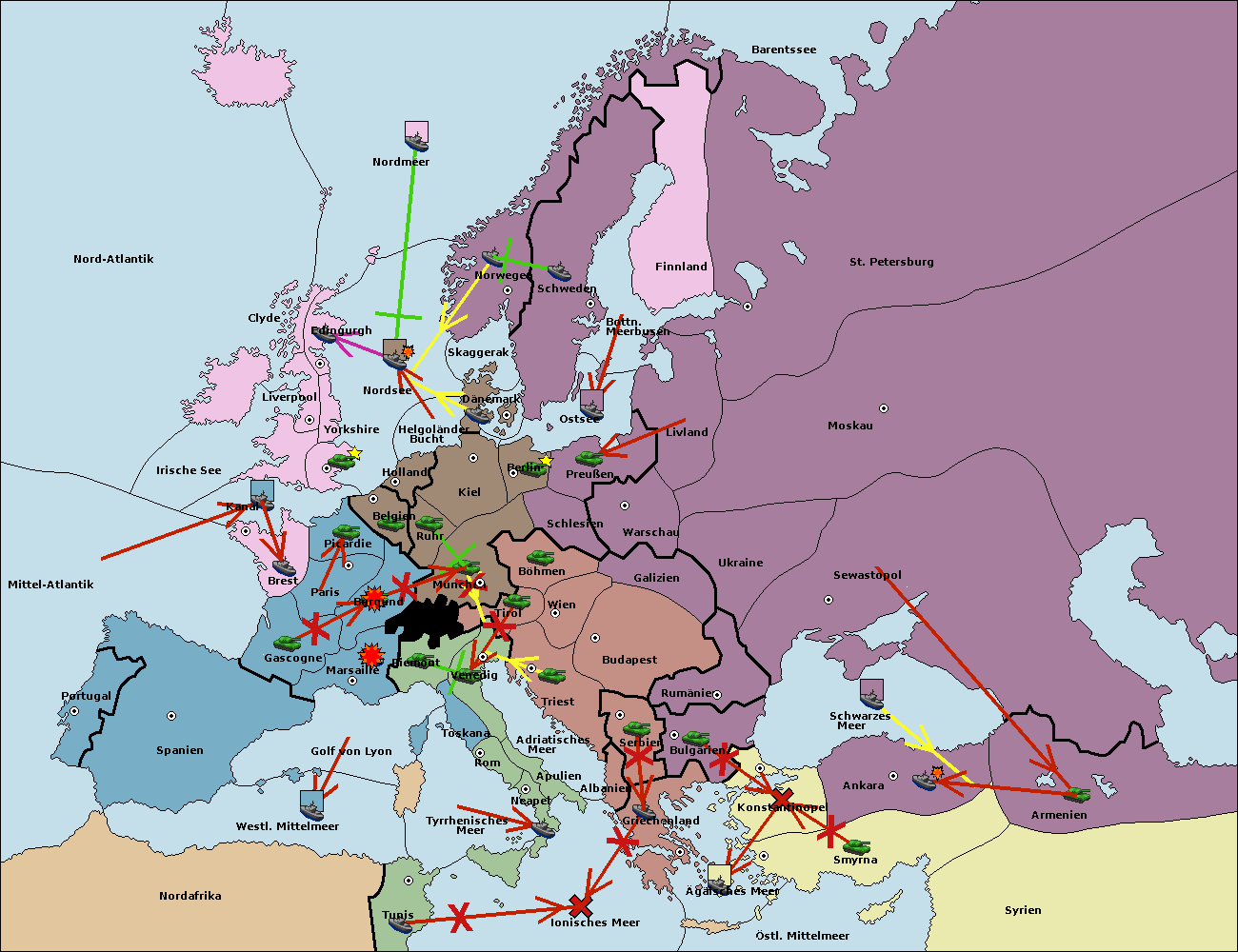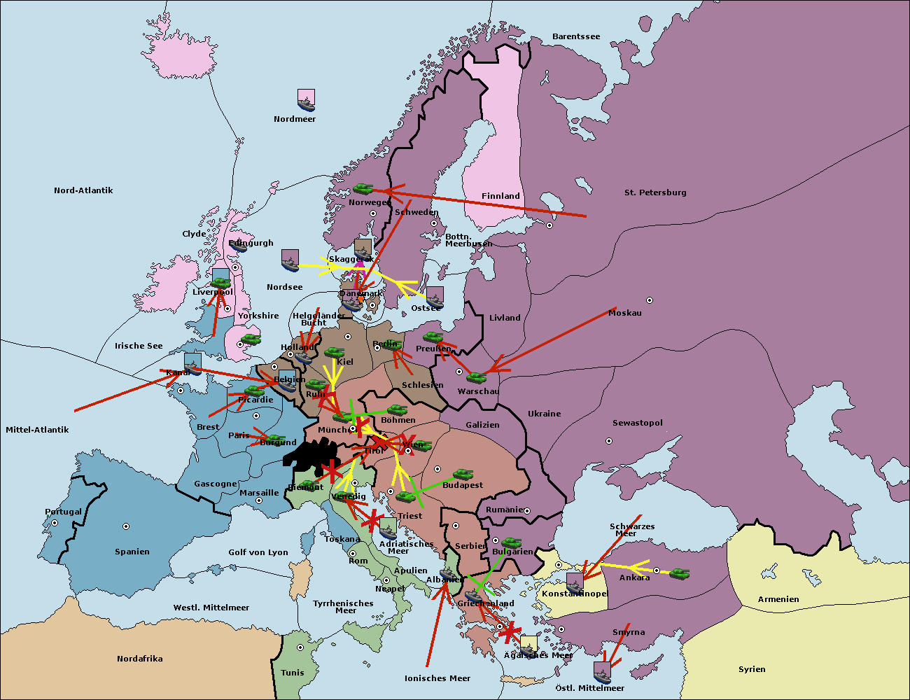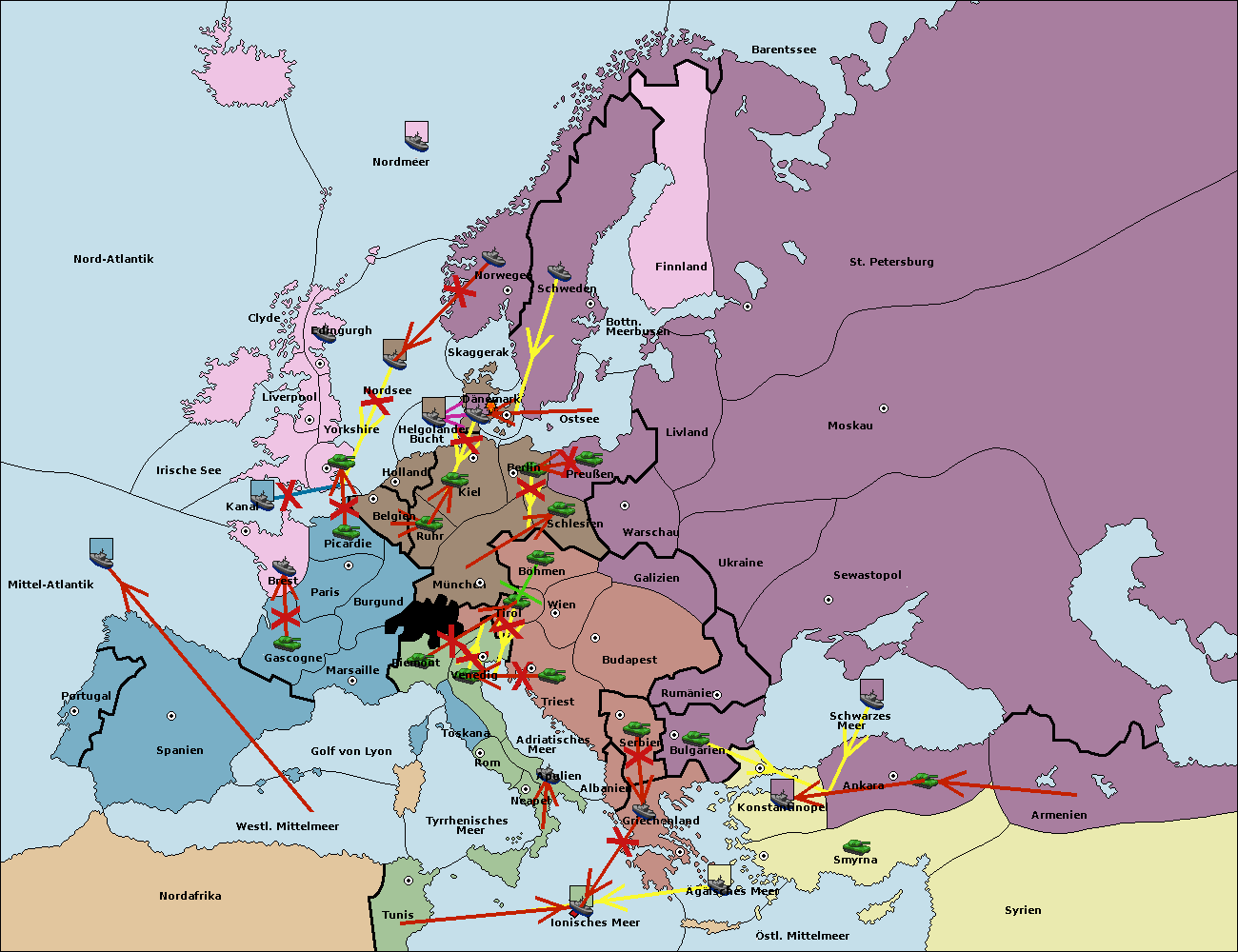 • Die Armee in Bulgarien wird zerstörtFlotte in Bulgarien gebaut.