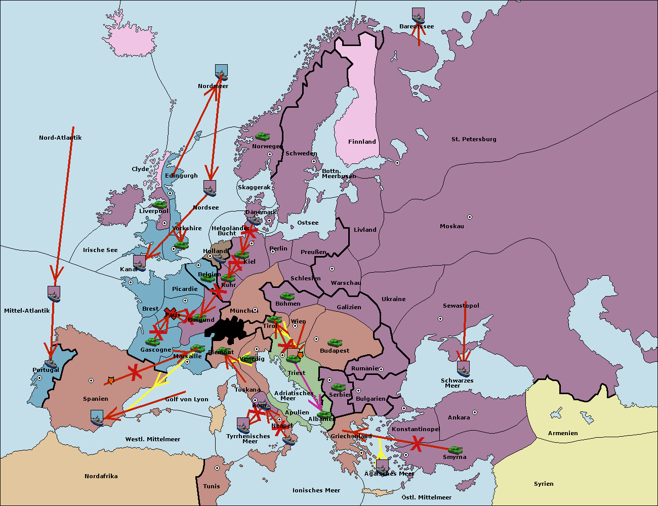 • Die Flotte in Golf von Lyon move nach westl. Mittelmeer. (gescheitert)