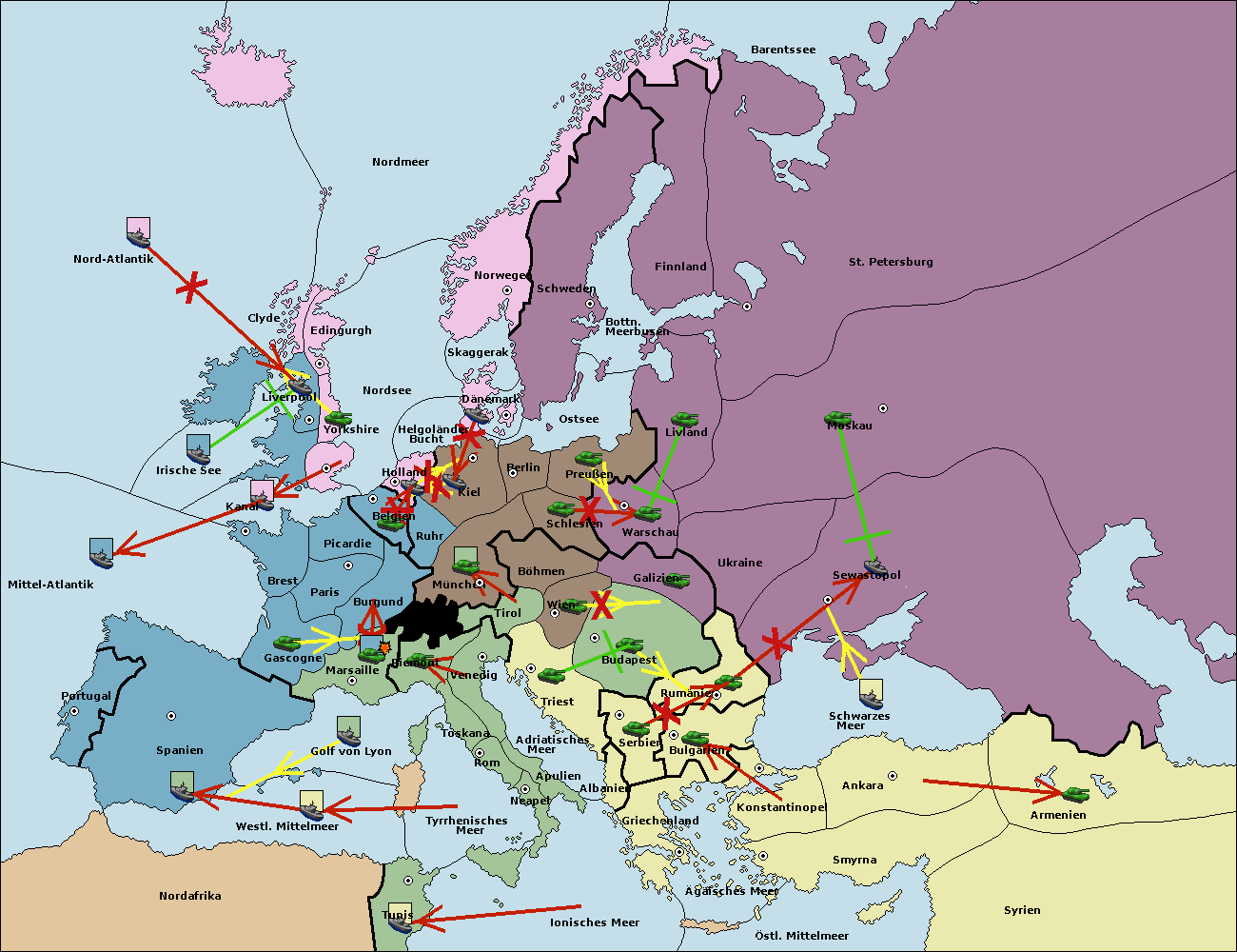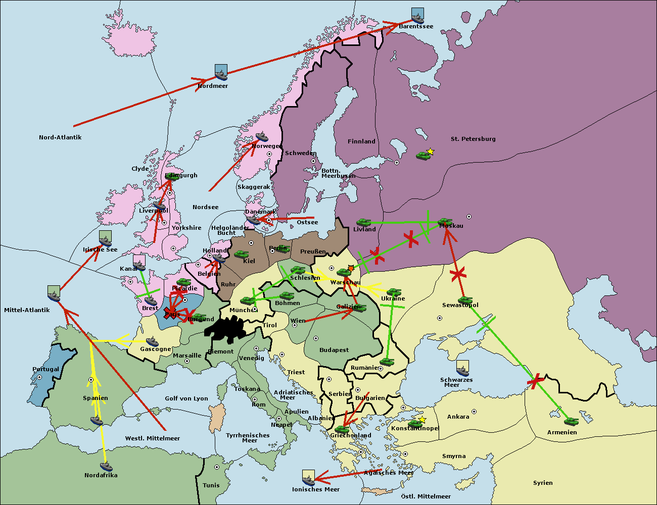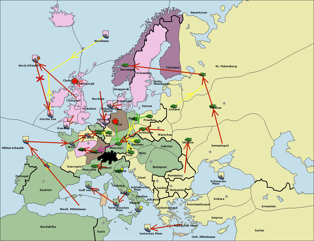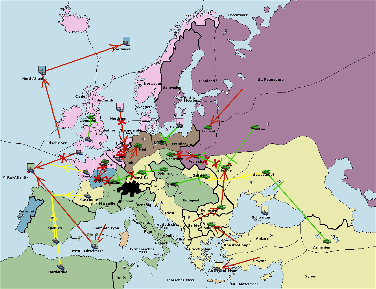 • Die Flotte in Spanien (Südküste) support move nach Mittel-Atlantik von westl. Mittelmeer.
