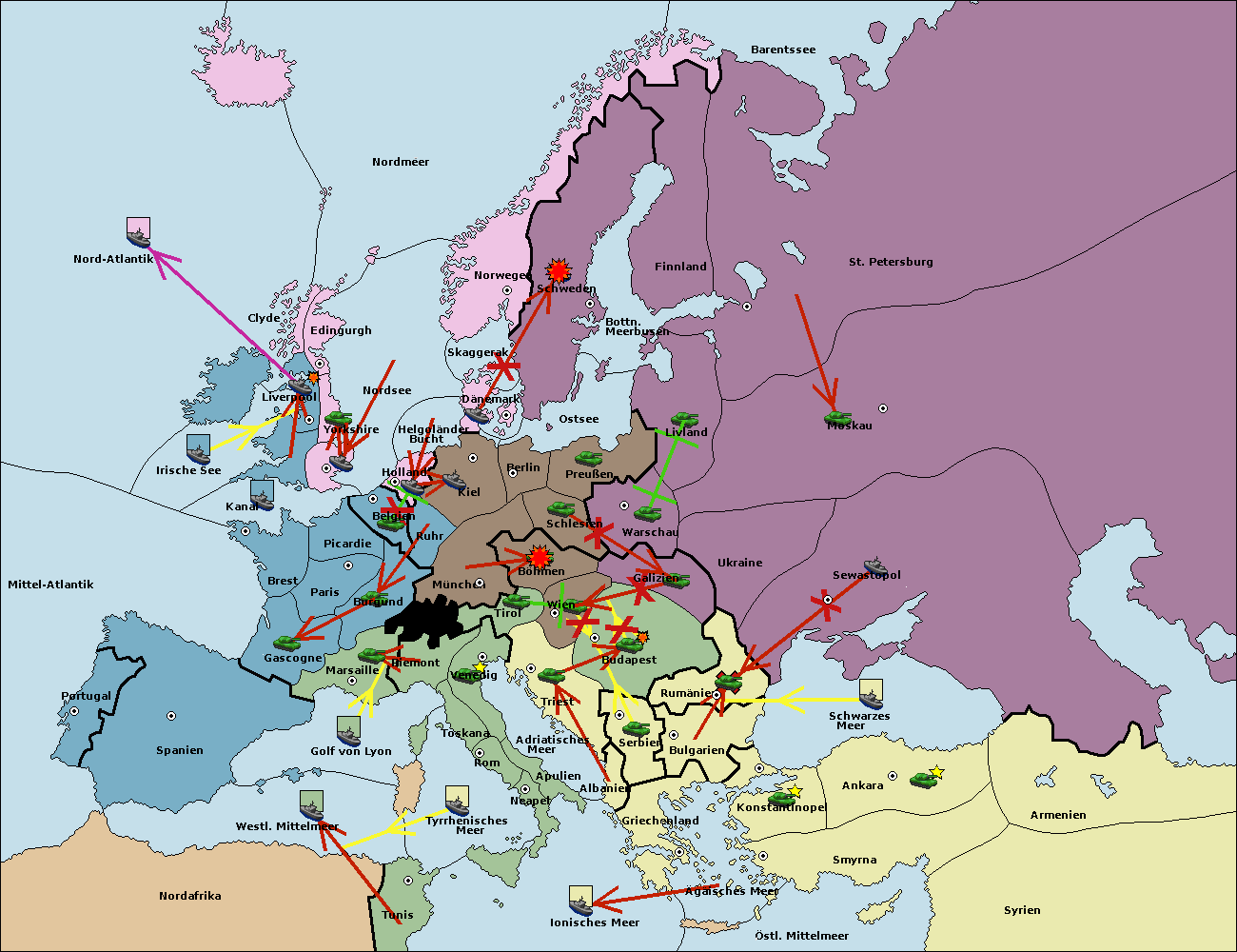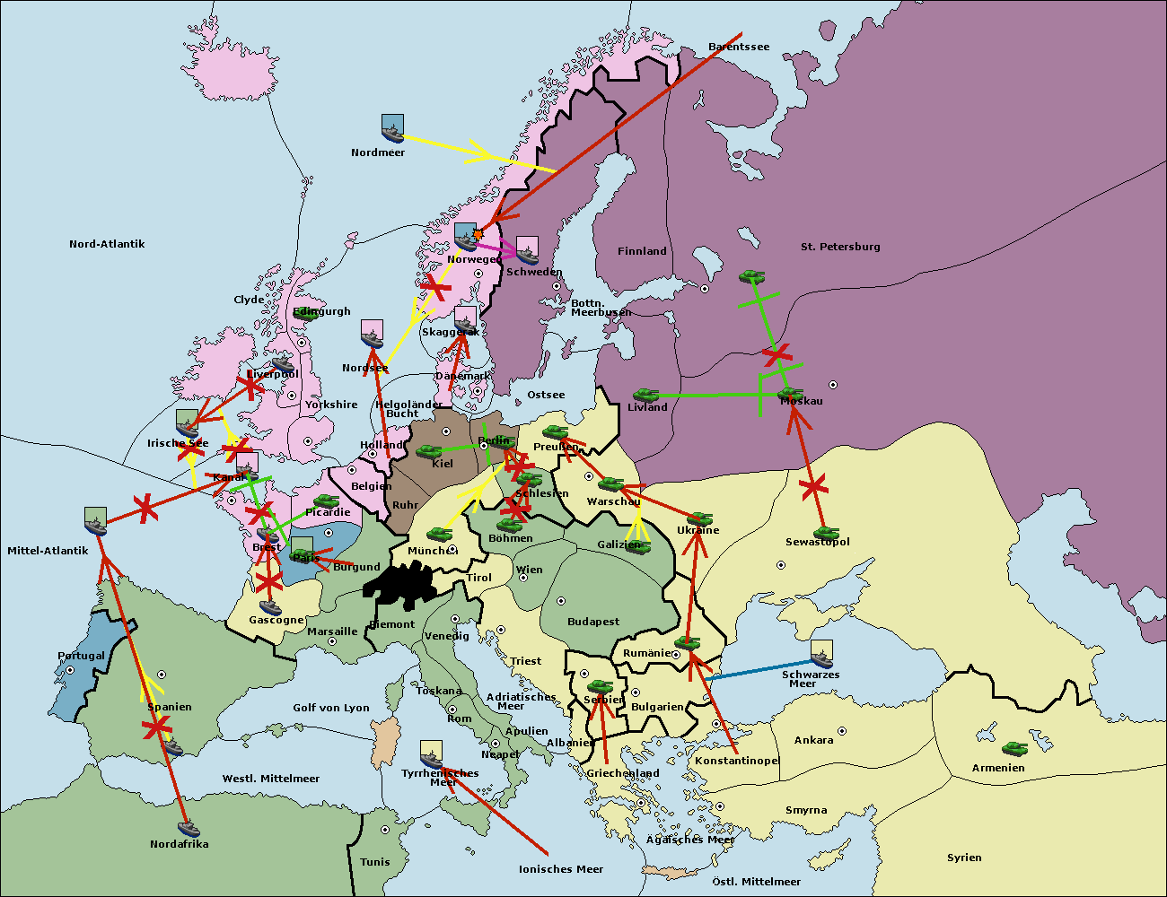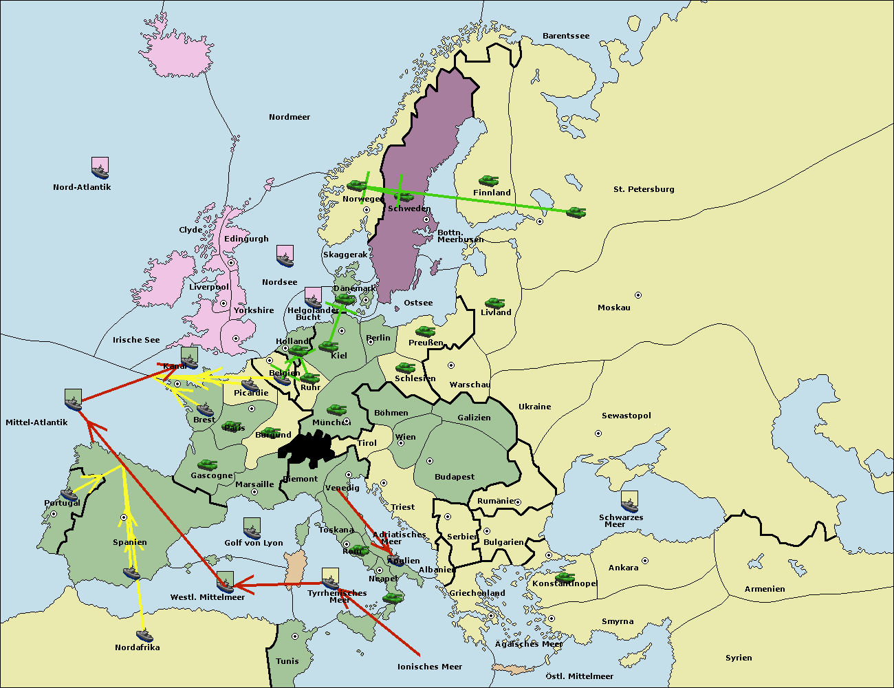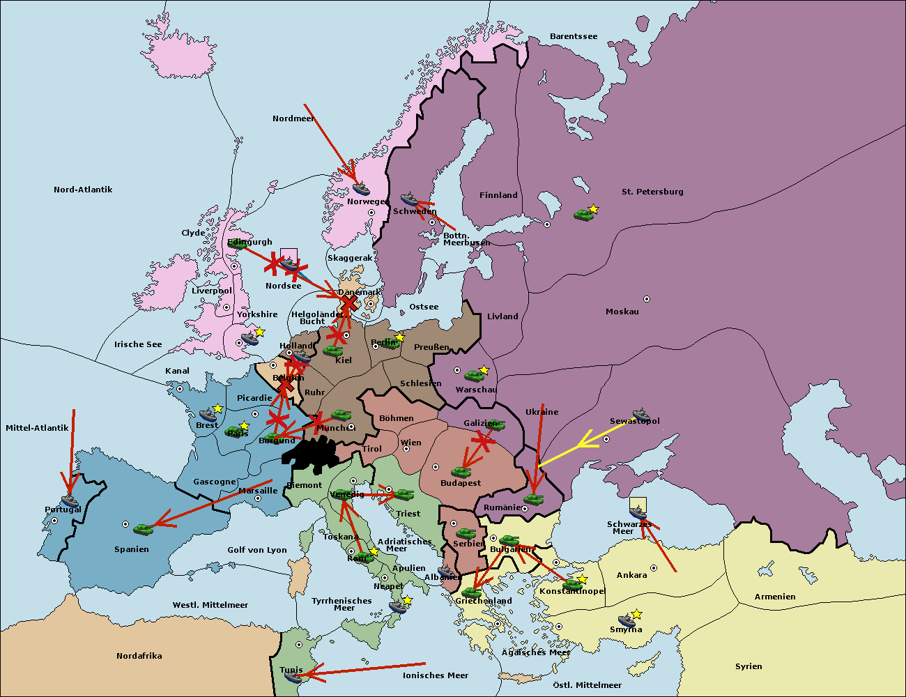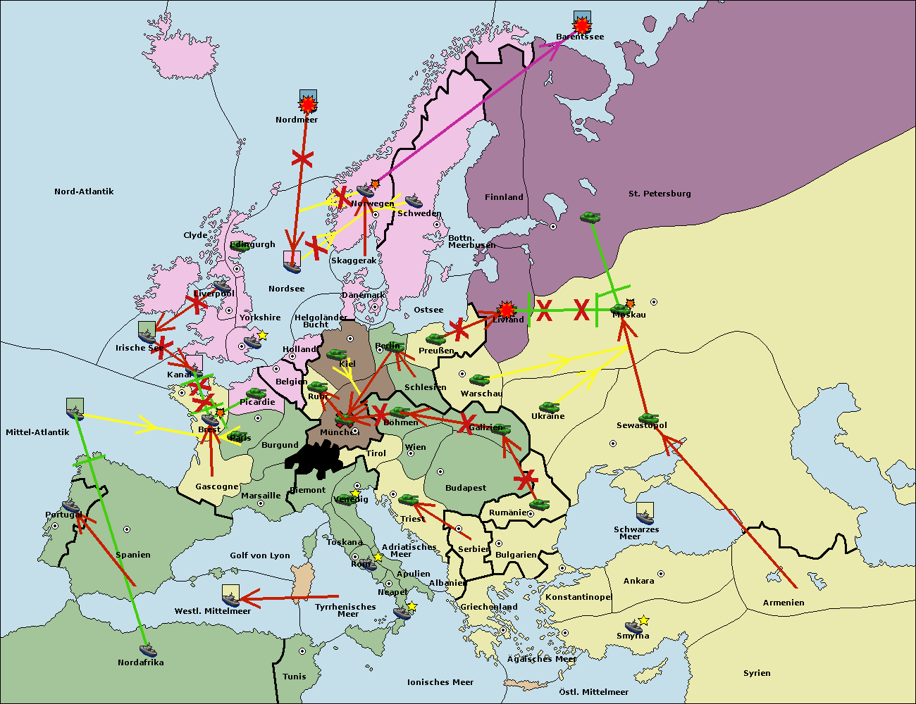 • Die Flotte in Spanien (Südküste) support move nach Mittel-Atlantik von westl. Mittelmeer.