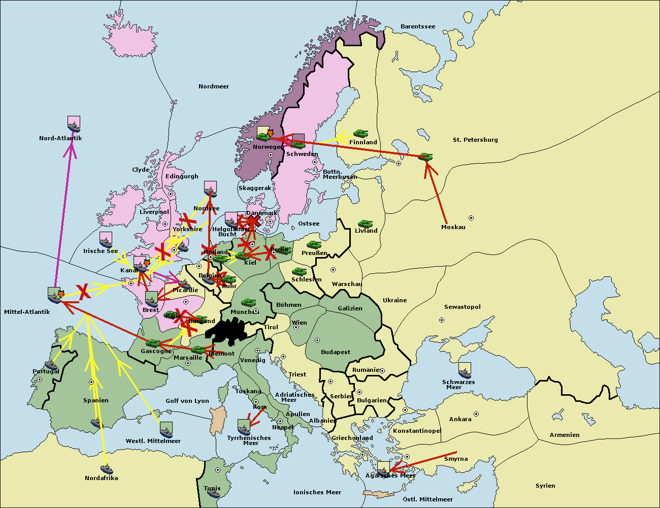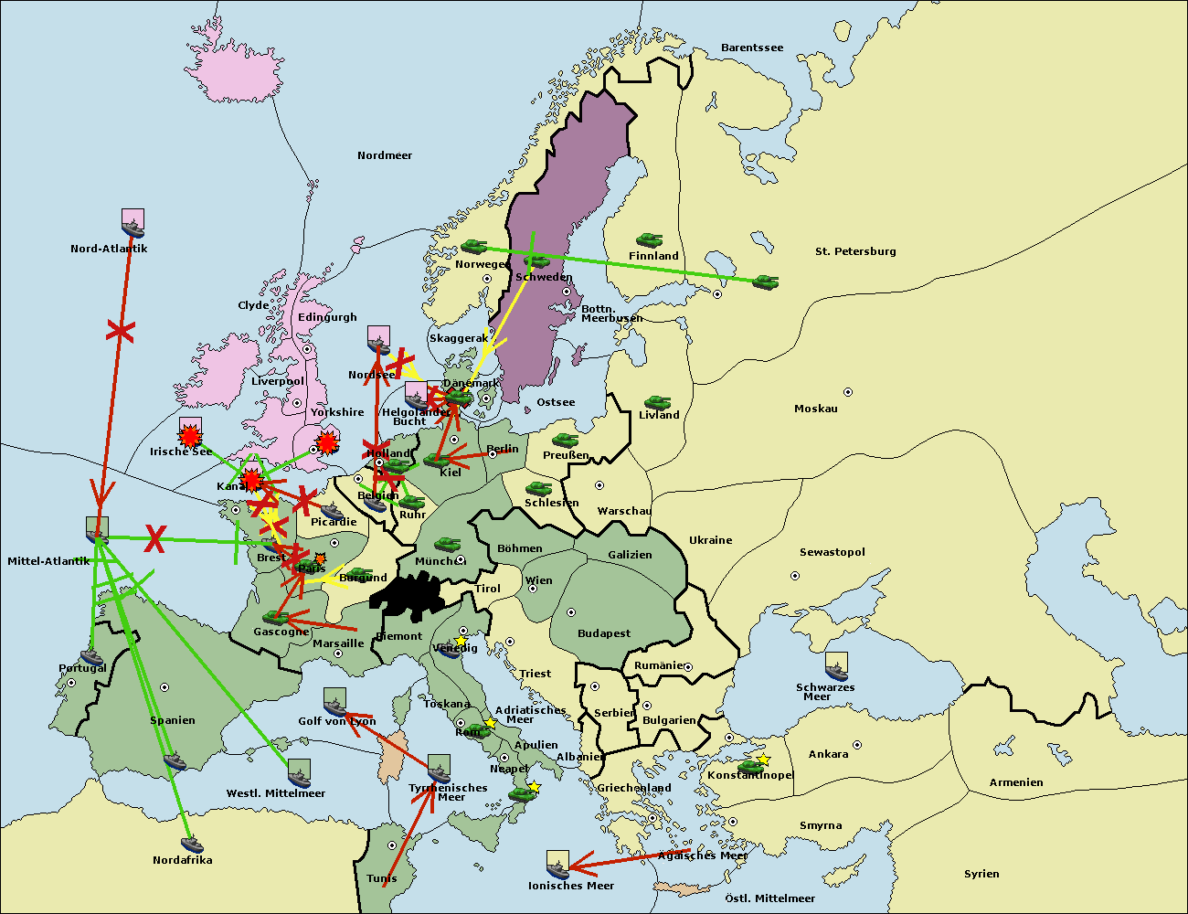 • Die Flotte in Belgien move nach Nordsee. (gescheitert)