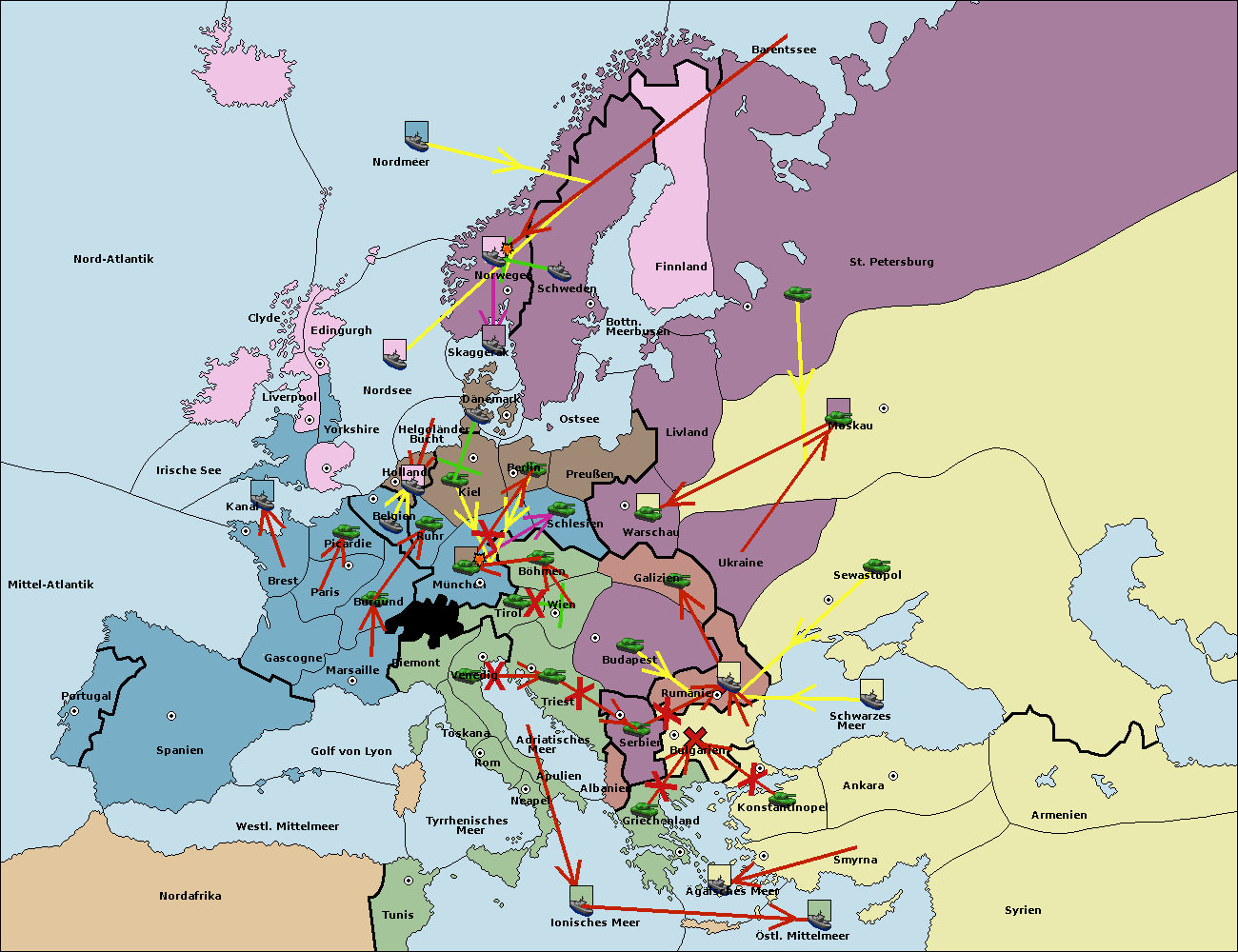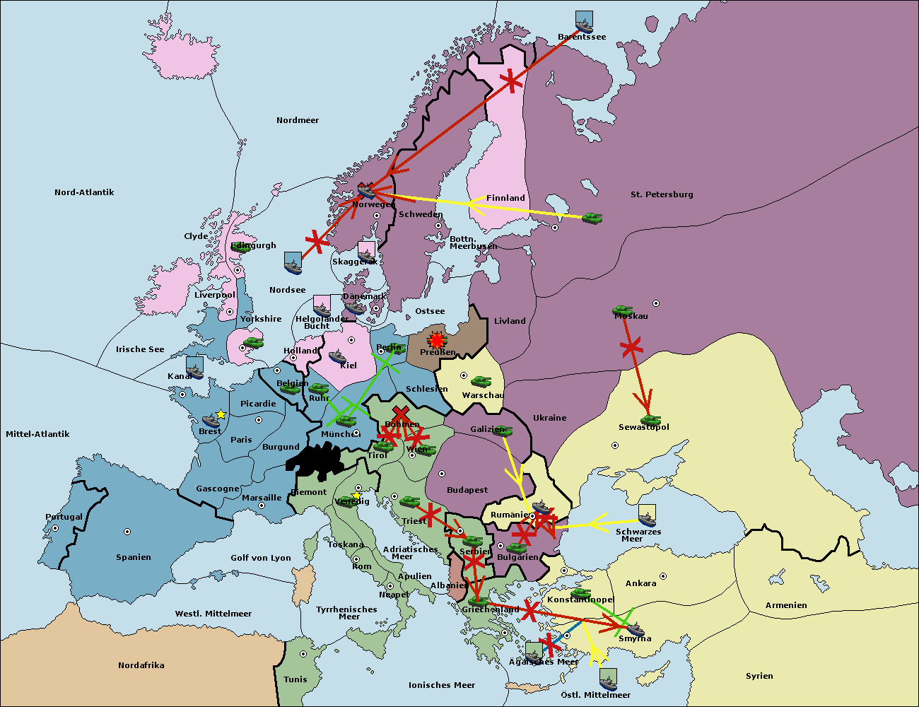 • Die Armee in Warschau support move nach Moskau von Sewastopol.