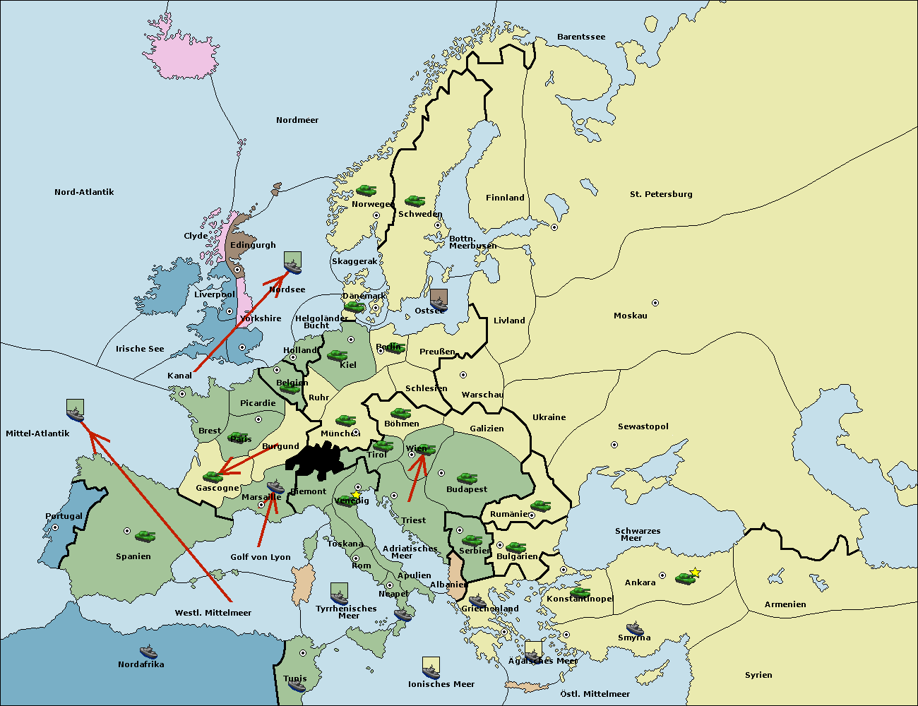 • Die Flotte in Barentssee move nach St. Petersburg (Nordküste). (gescheitert)
