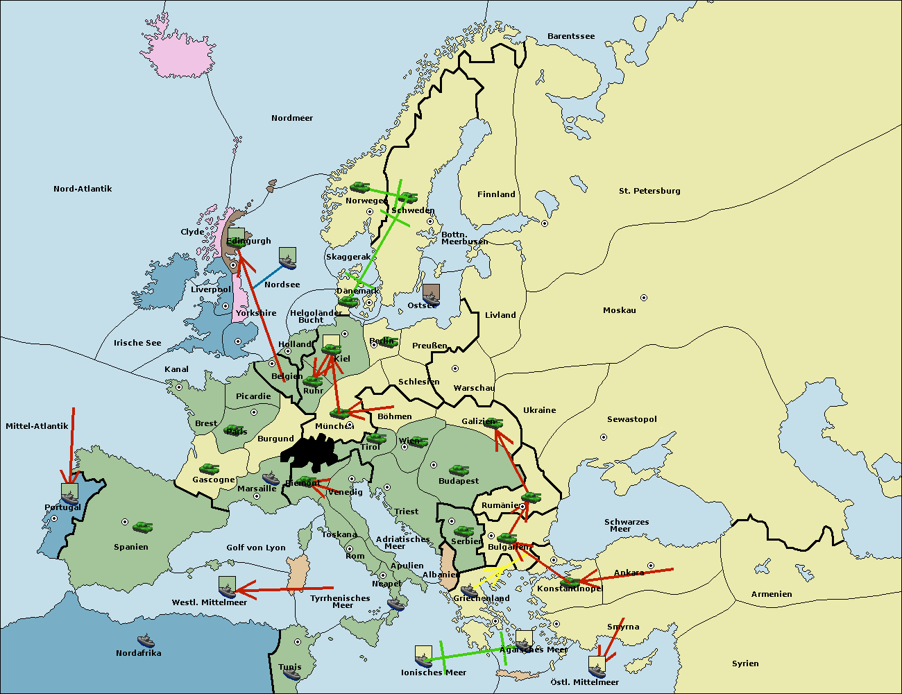 • Die Armee in Konstantinopel support hold nach Bulgarien.