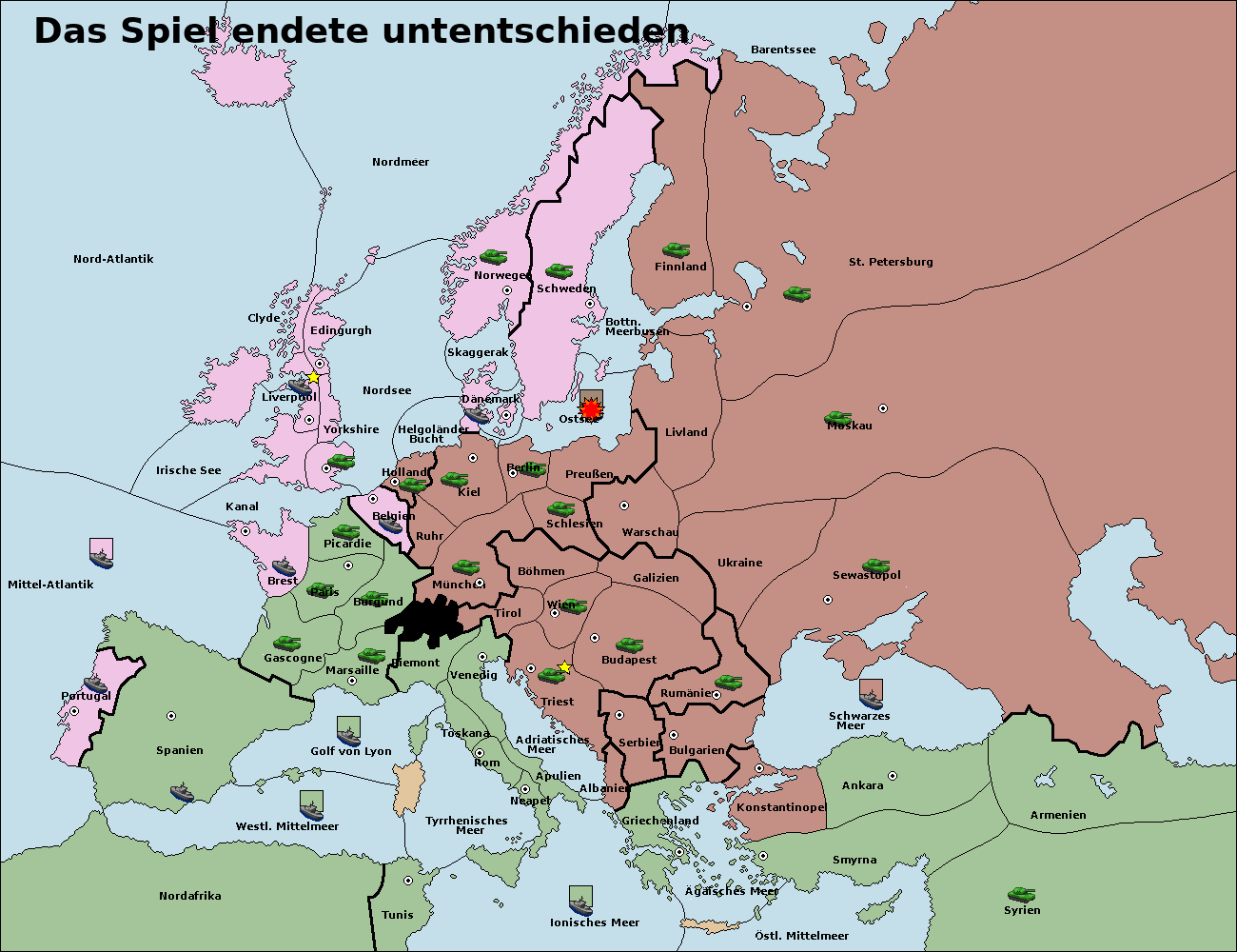 • Die Armee in Bulgarien wird zerstörtFlotte in Bulgarien gebaut.