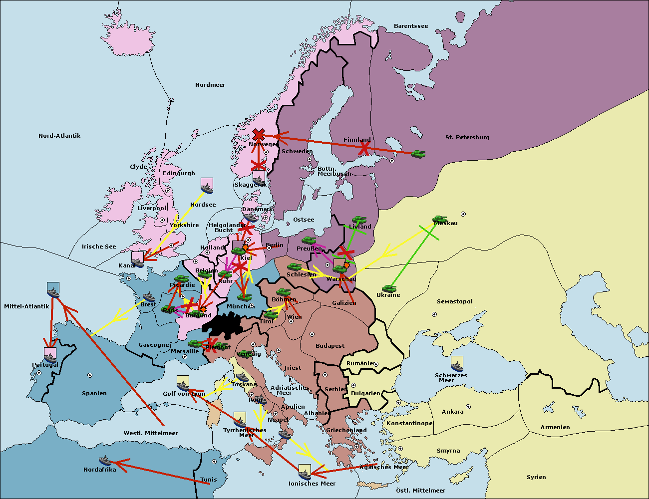 • Die Armee in Warschau support move nach Preußen von Livland.