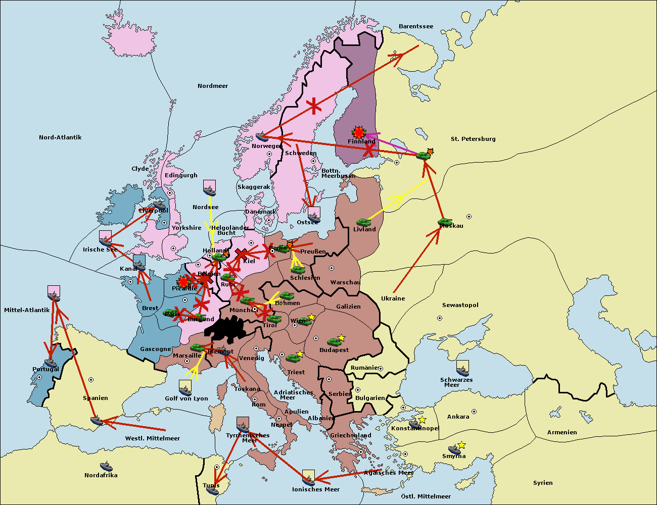 • Die Flotte in St. Petersburg (Südküste) move nach Finnland.