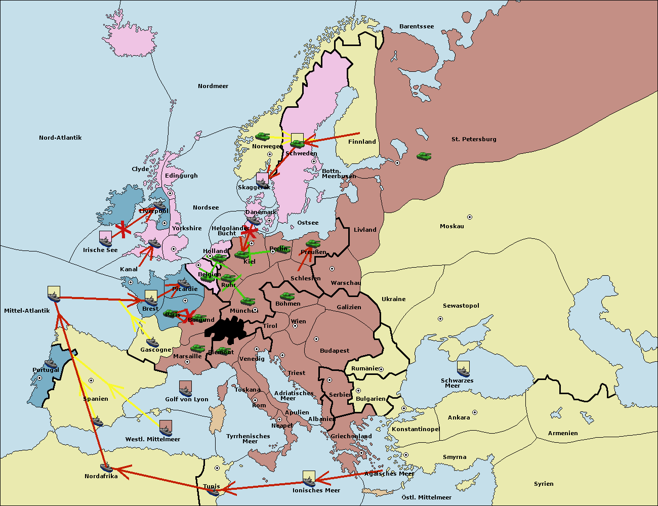• Die Flotte in Spanien (Südküste) move nach westl. Mittelmeer.