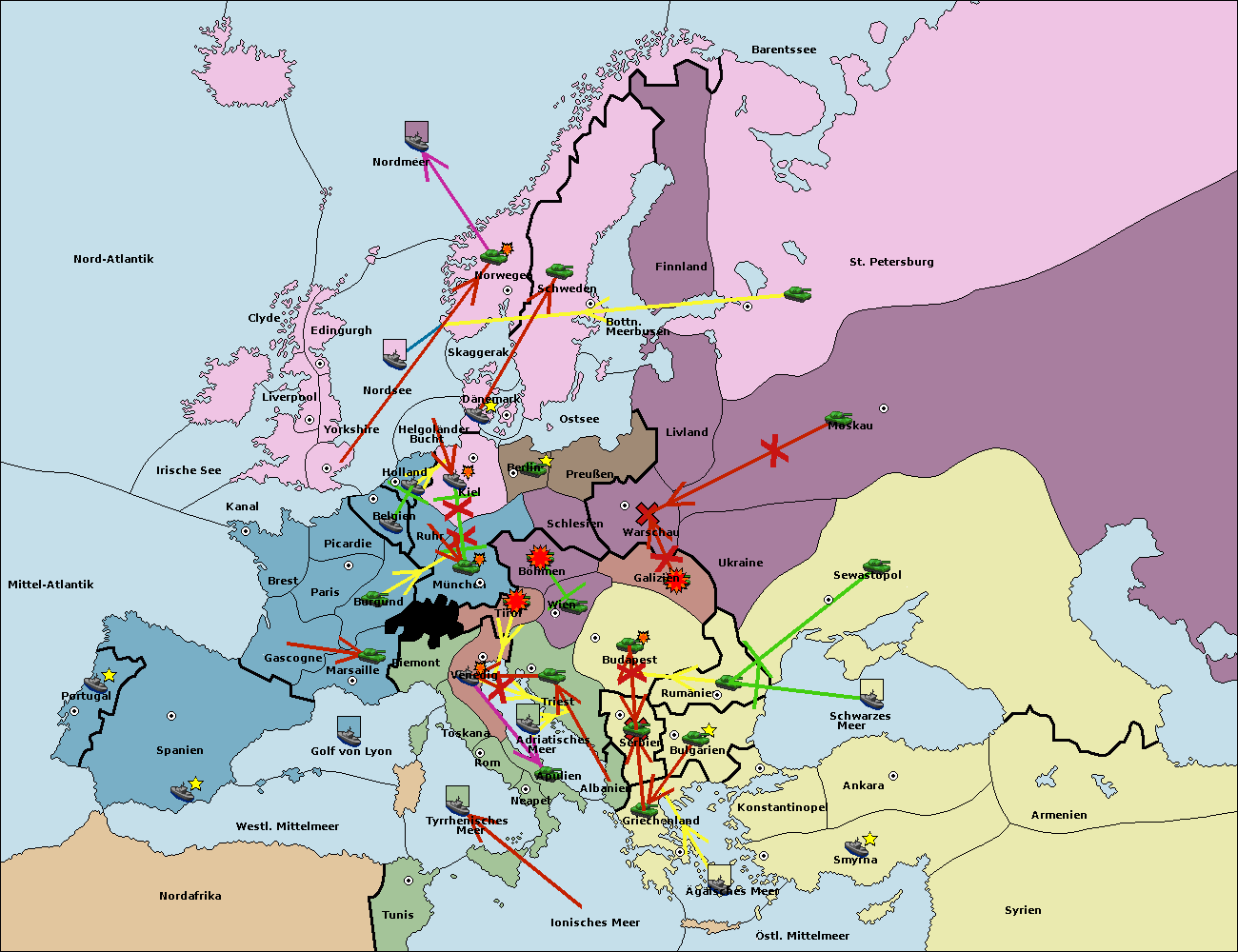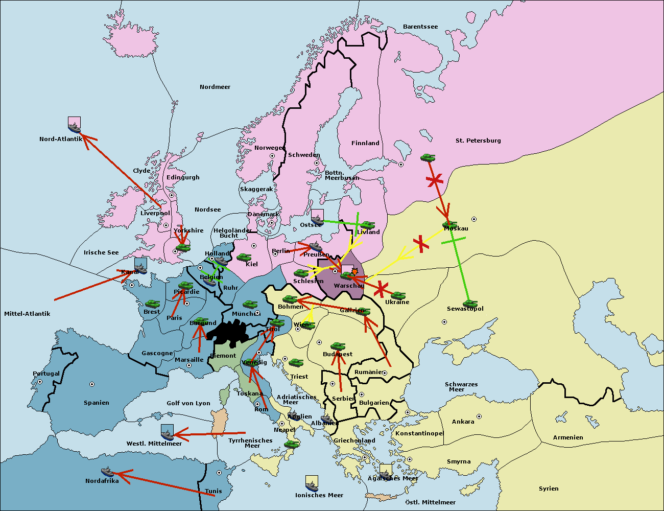 • Die Armee in Warschau wird zerstörtFlotte in Warschau gebaut.