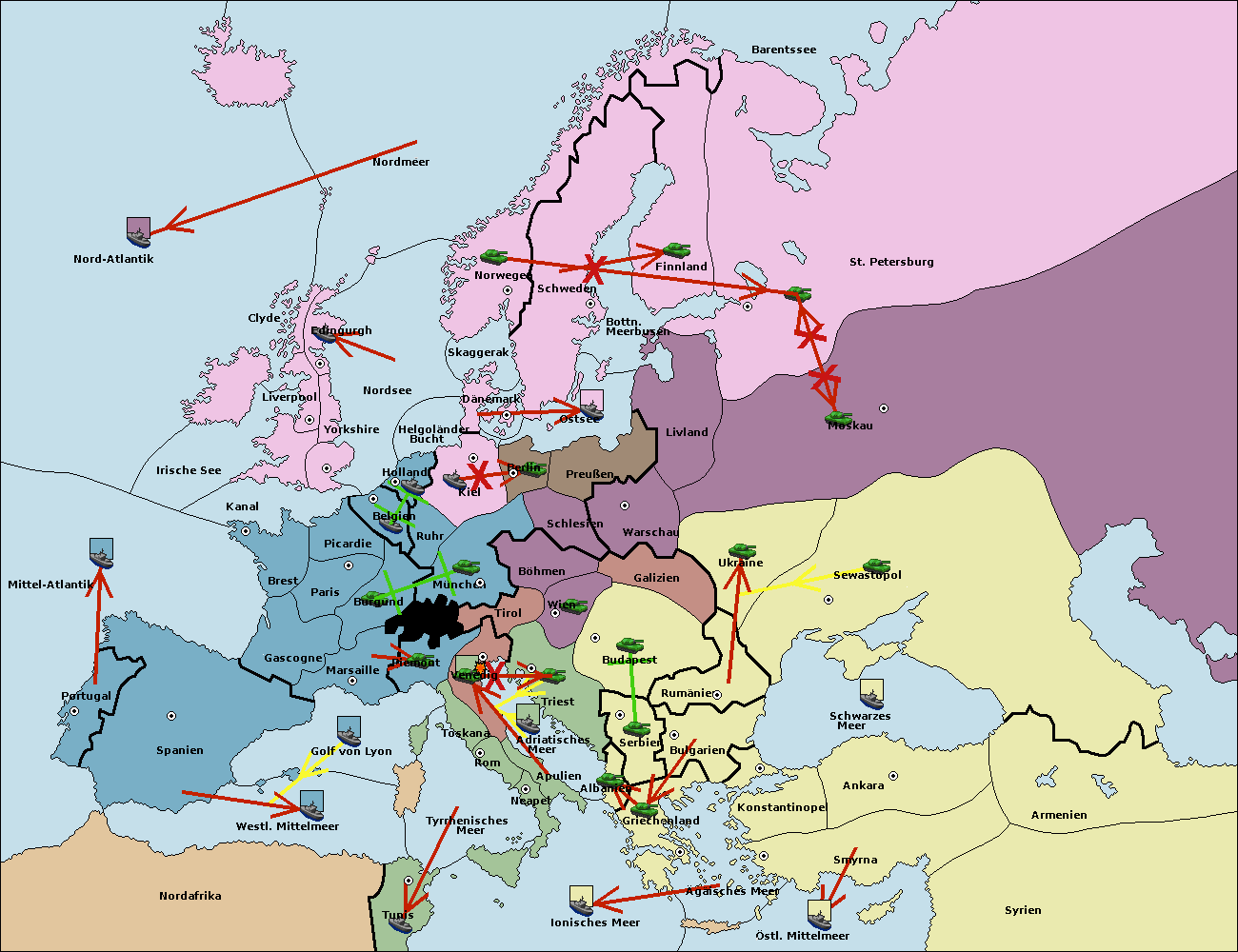 • Die Flotte in Albanien support hold nach Triest.