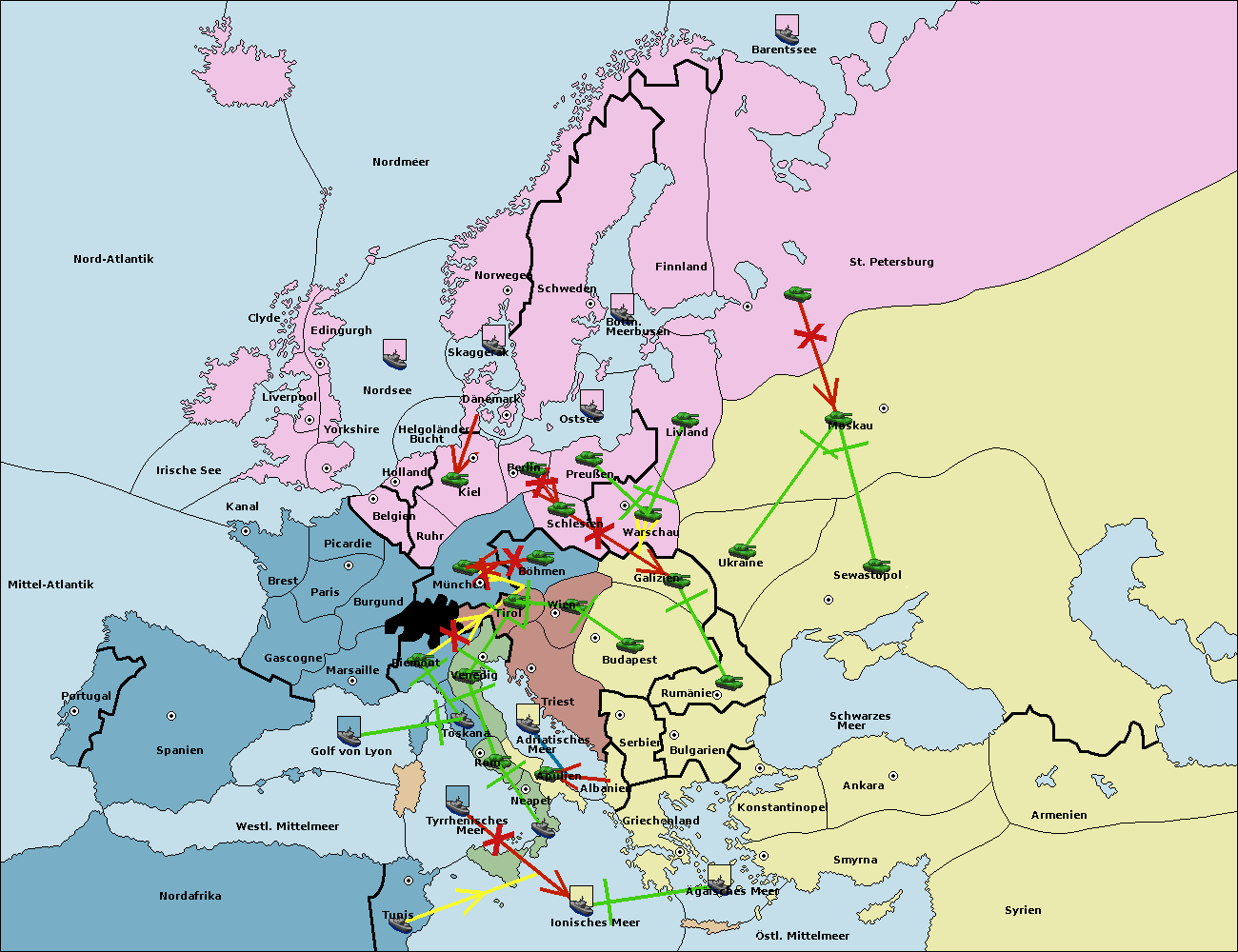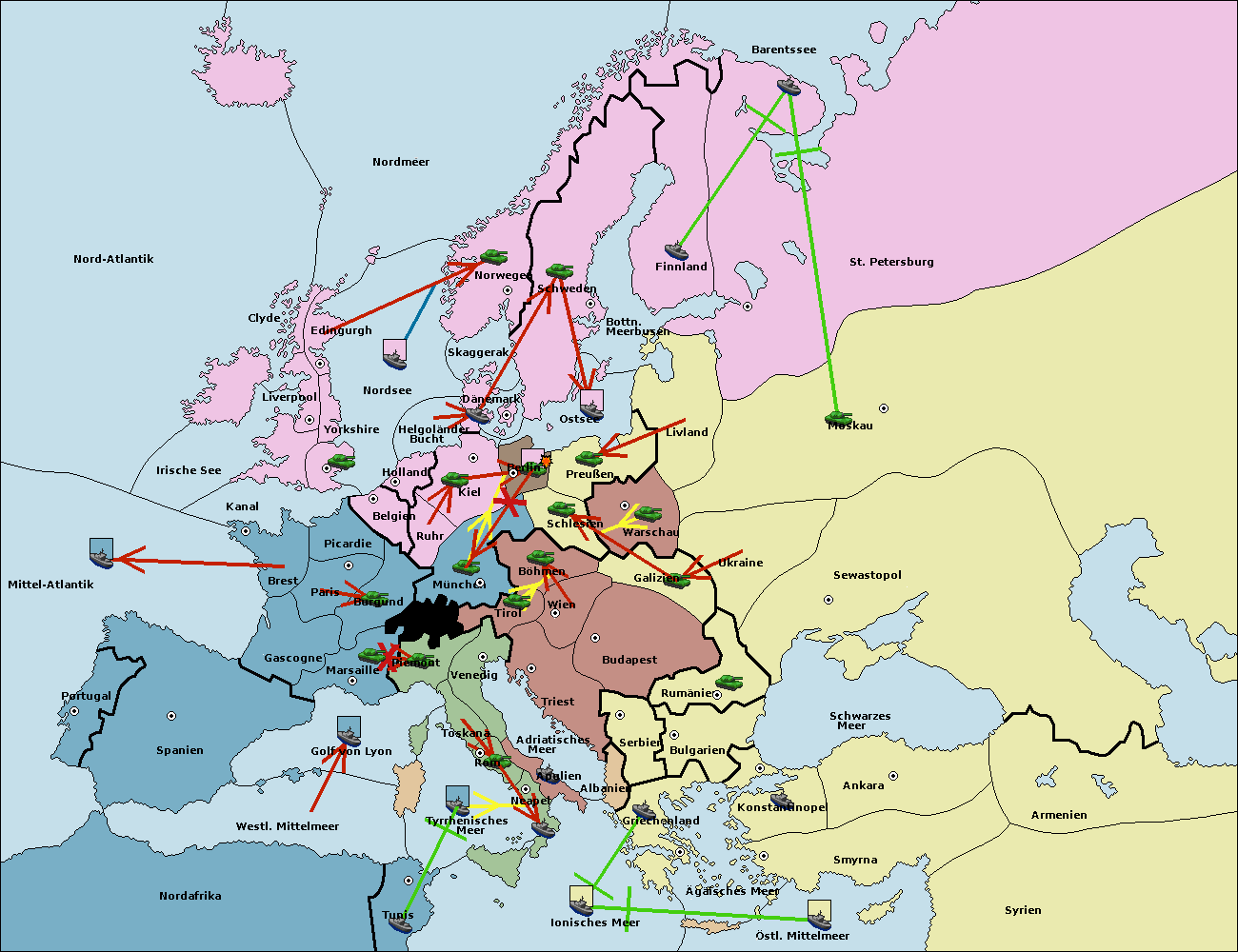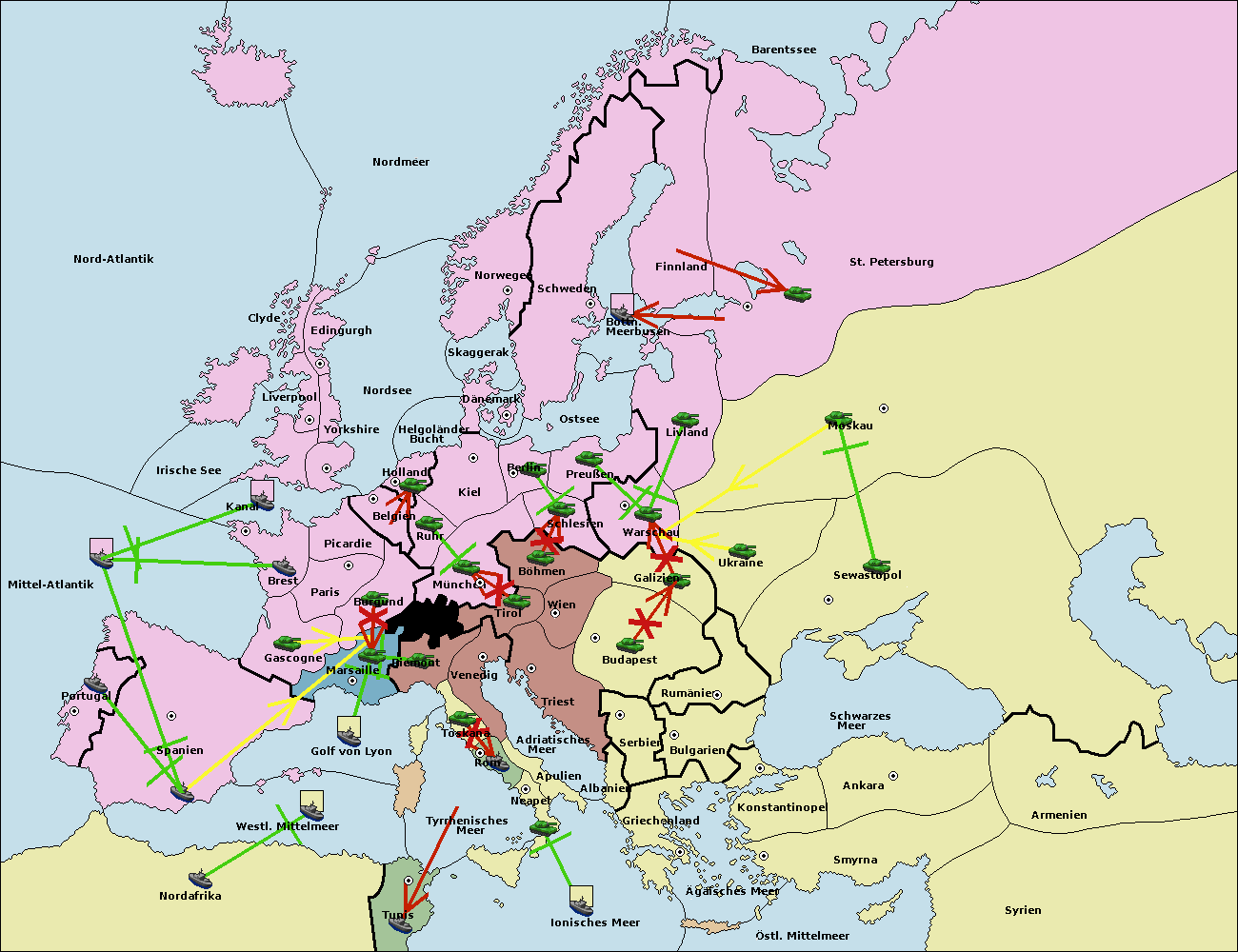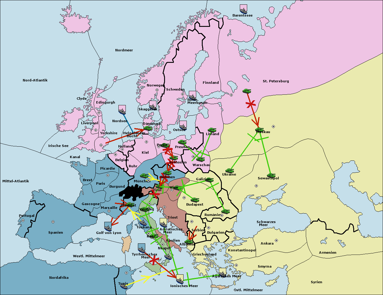 • Die Flotte in Nord Afrika support move nach Tunis von westl. Mittelmeer.
