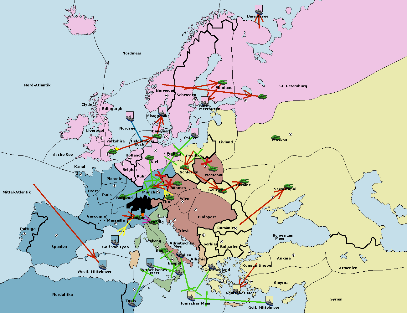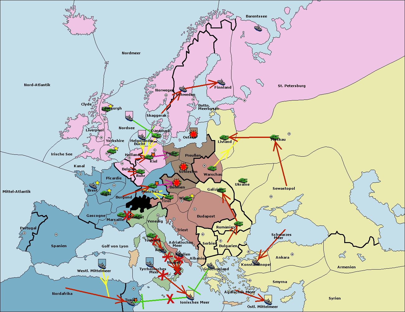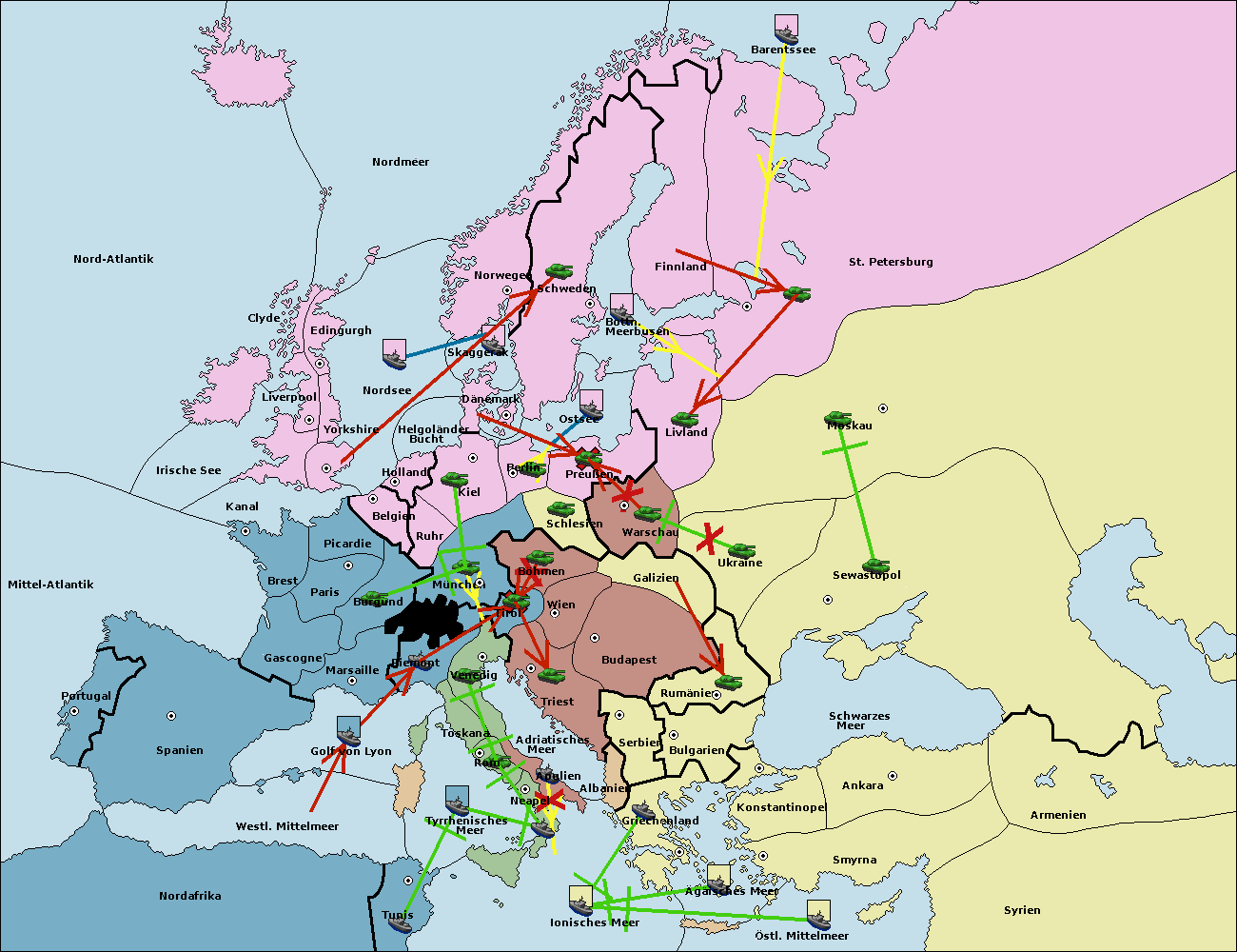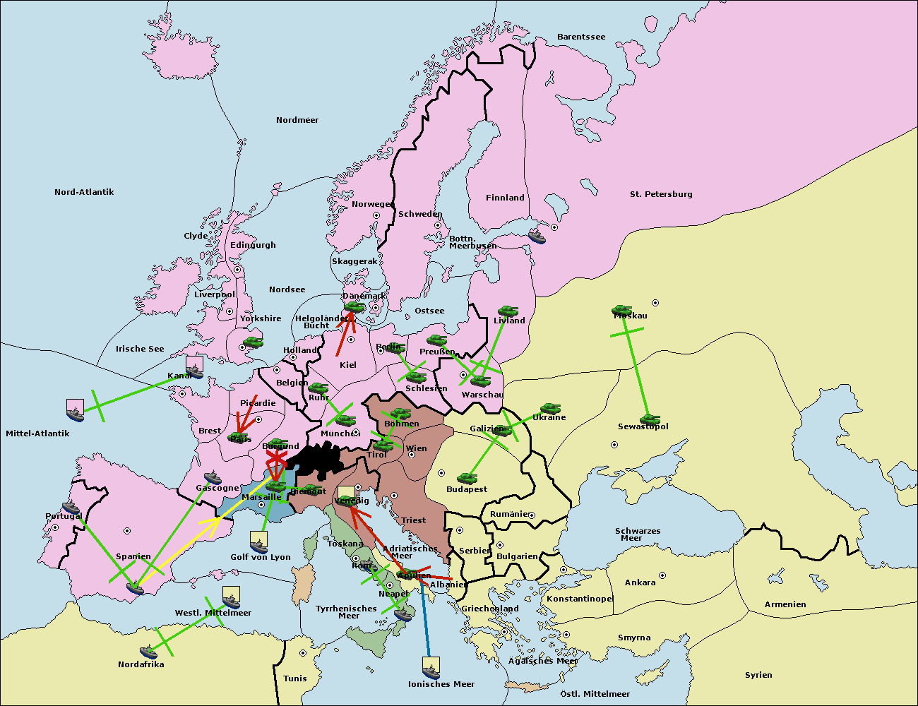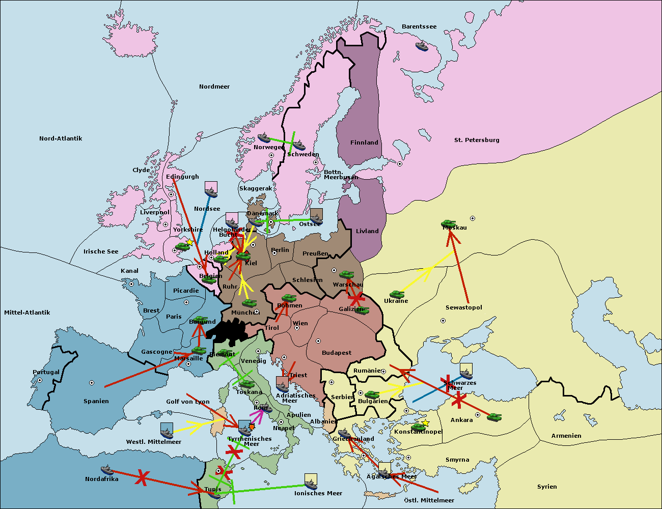 • Die Flotte in Nord Afrika support move nach Tunis von westl. Mittelmeer.