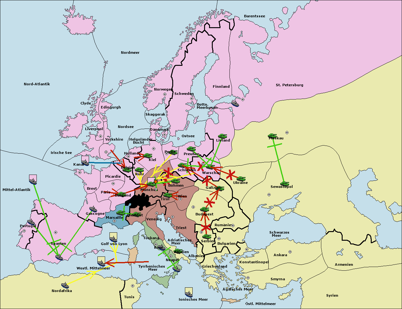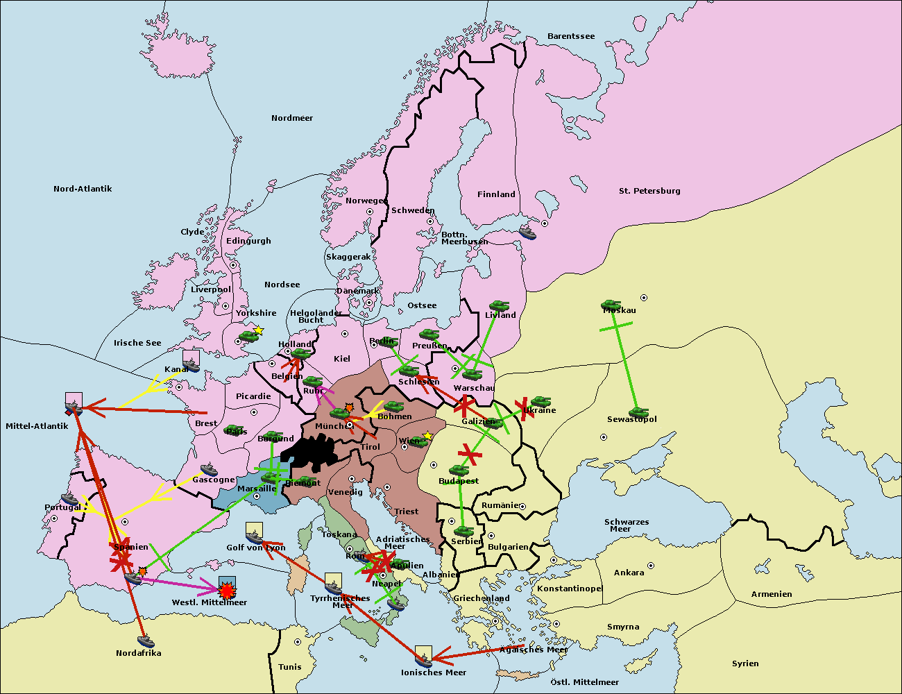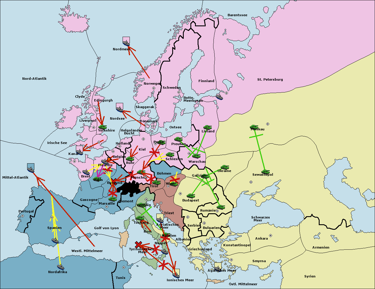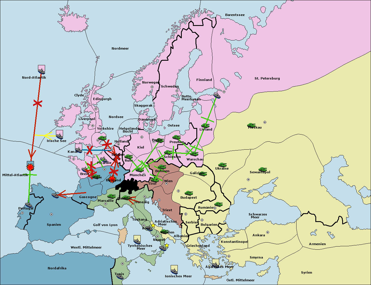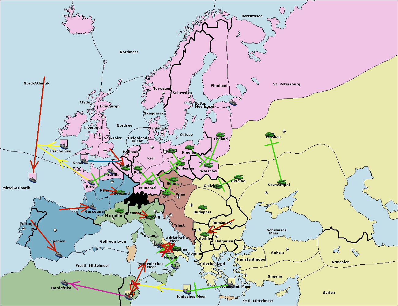 • Die Flotte in Spanien (Südküste) support move nach westl. Mittelmeer von Mittel-Atlantik.