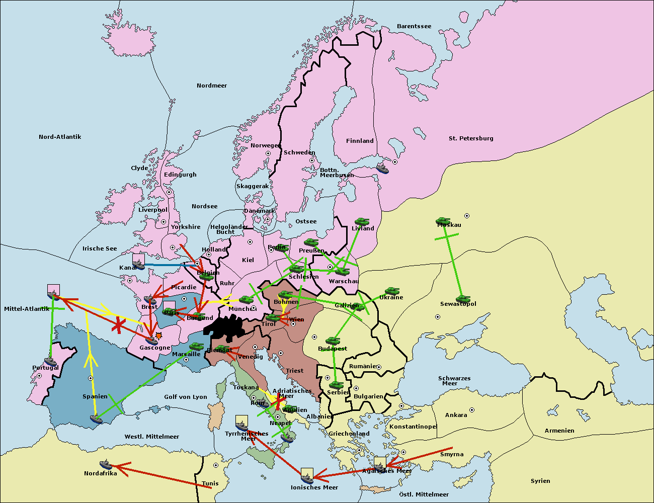 • Die Flotte in Spanien (Südküste) support move nach Marseille von Burgund.