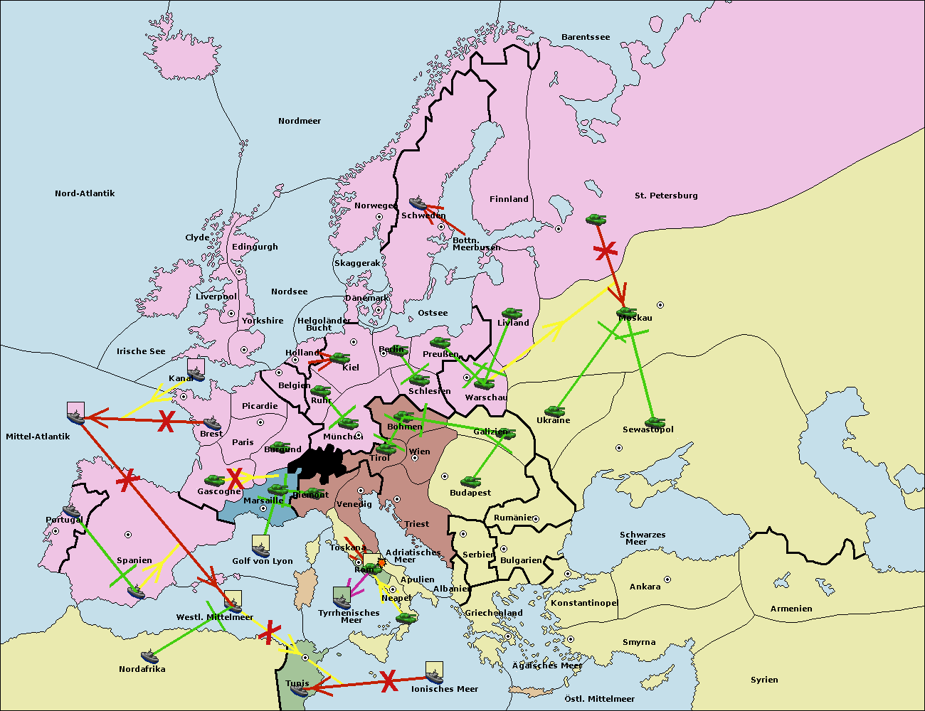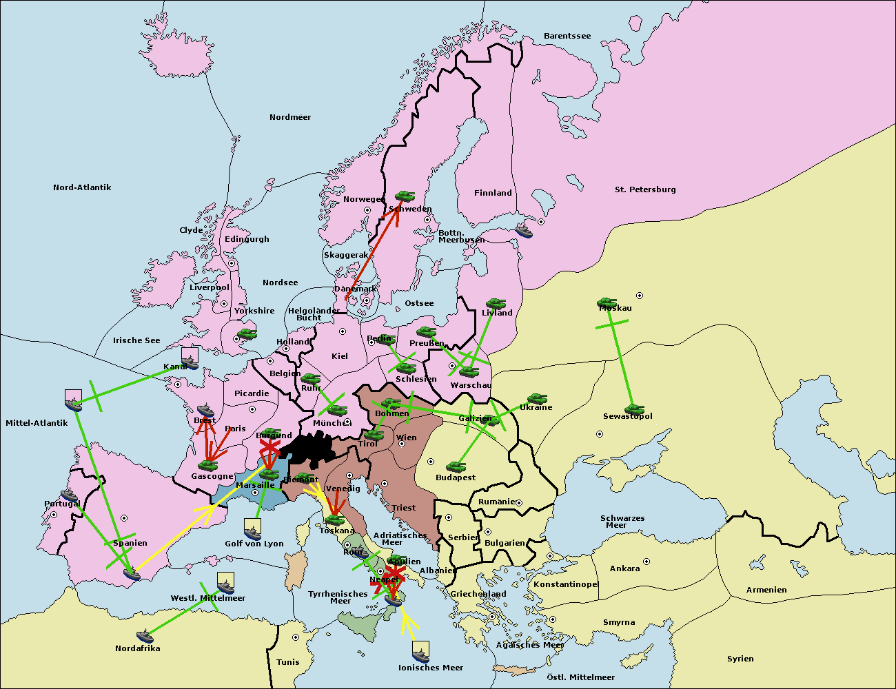 • Die Flotte in Spanien (Südküste) move nach westl. Mittelmeer. (gescheitert)