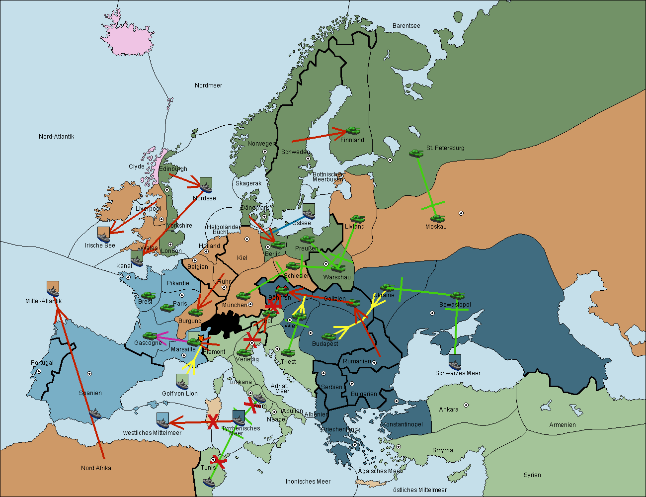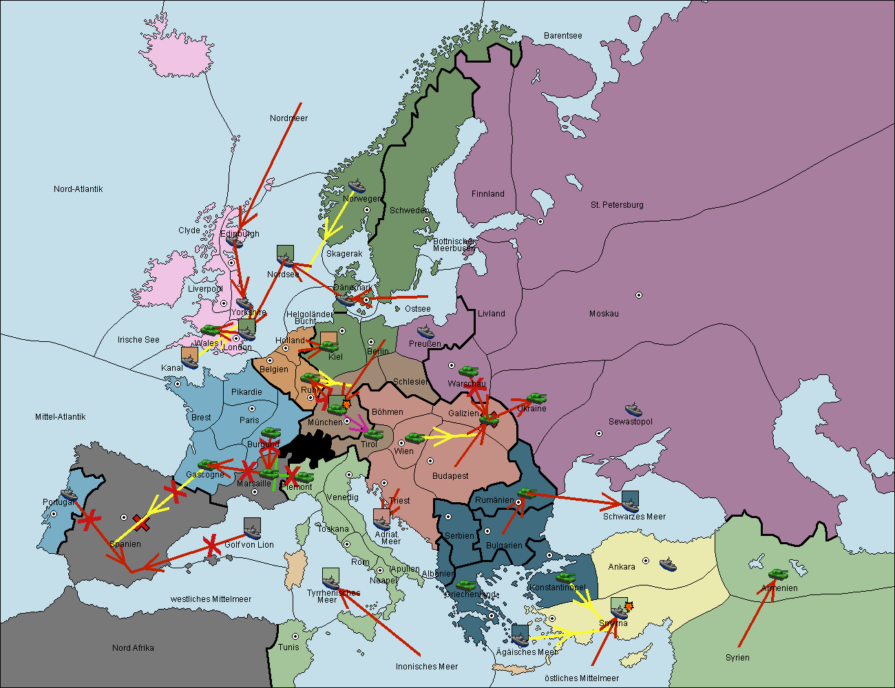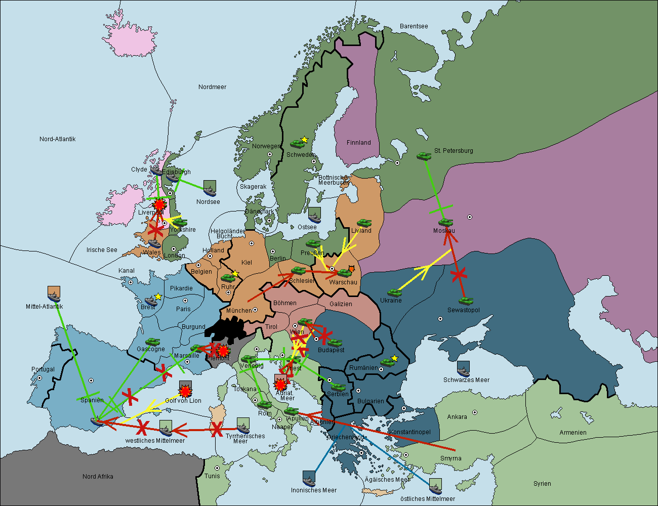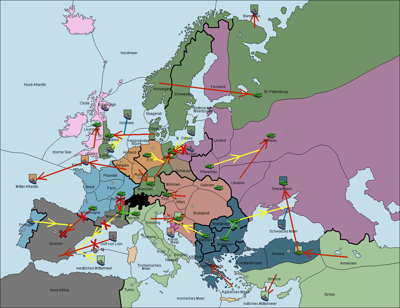 • Die Flotte in Spanien (Südküste) support move nach westl. Mittelmeer von Mittel-Atlantik.