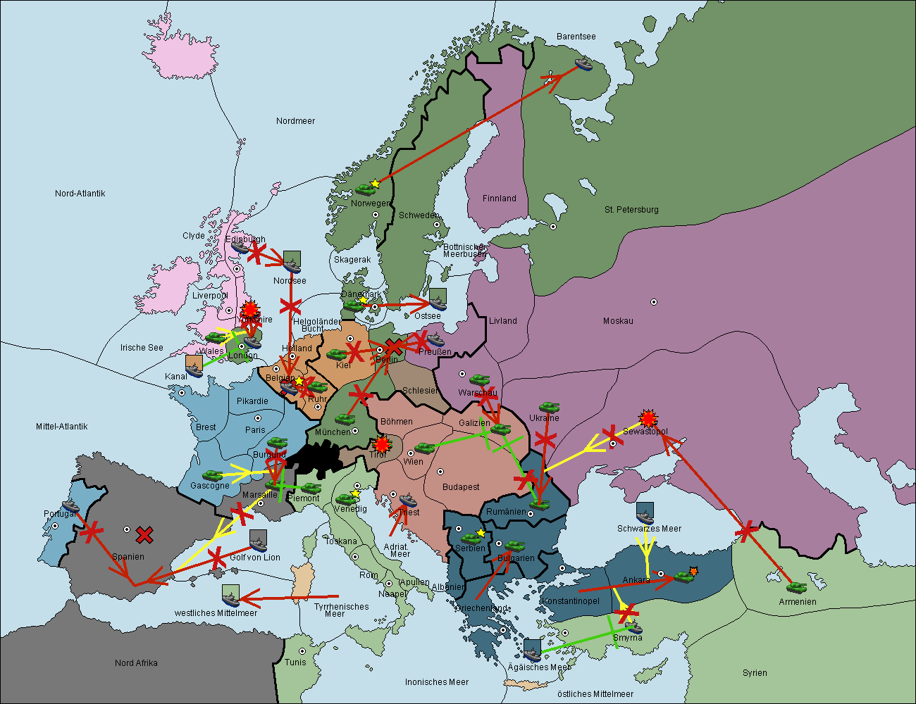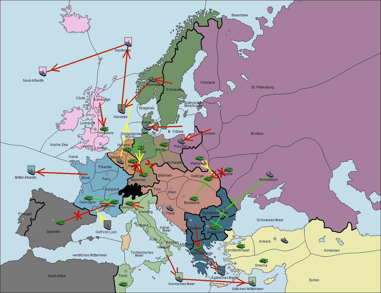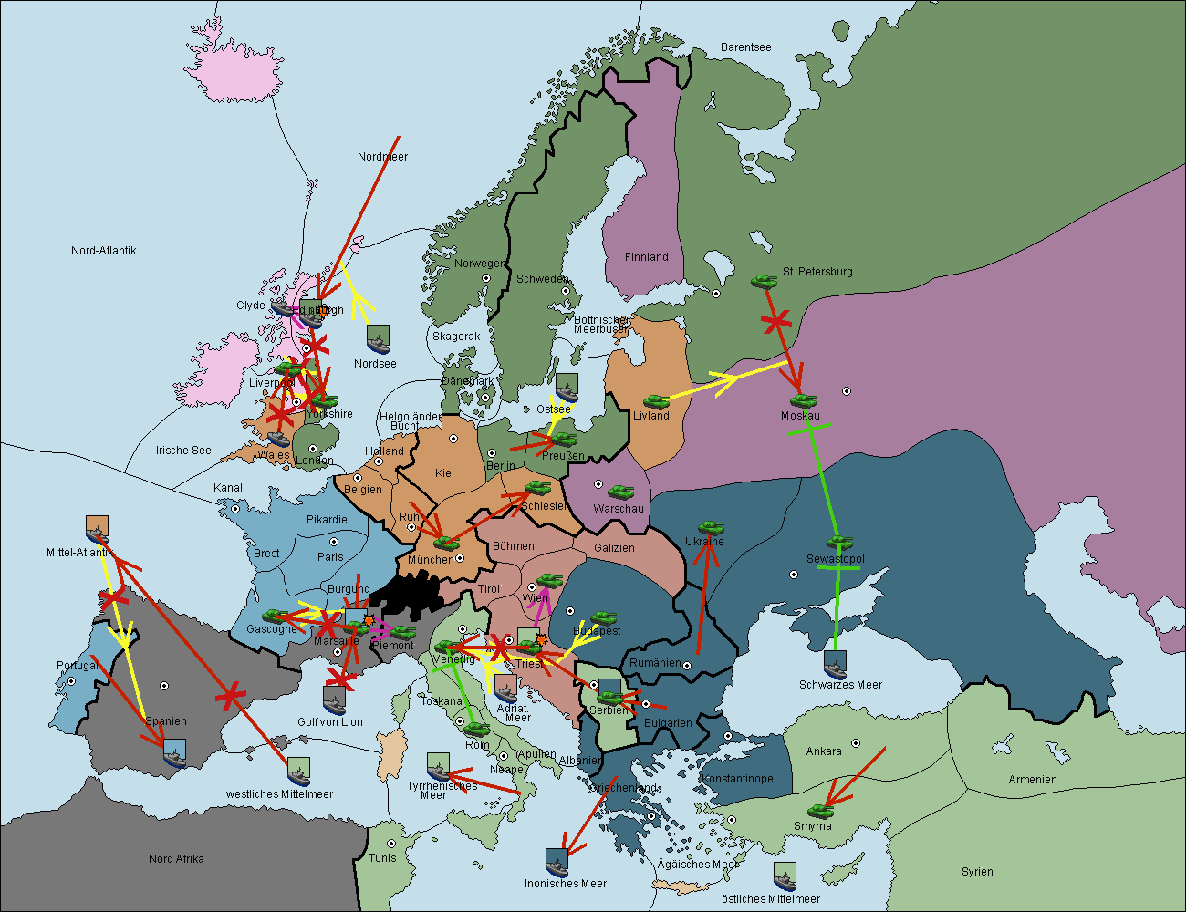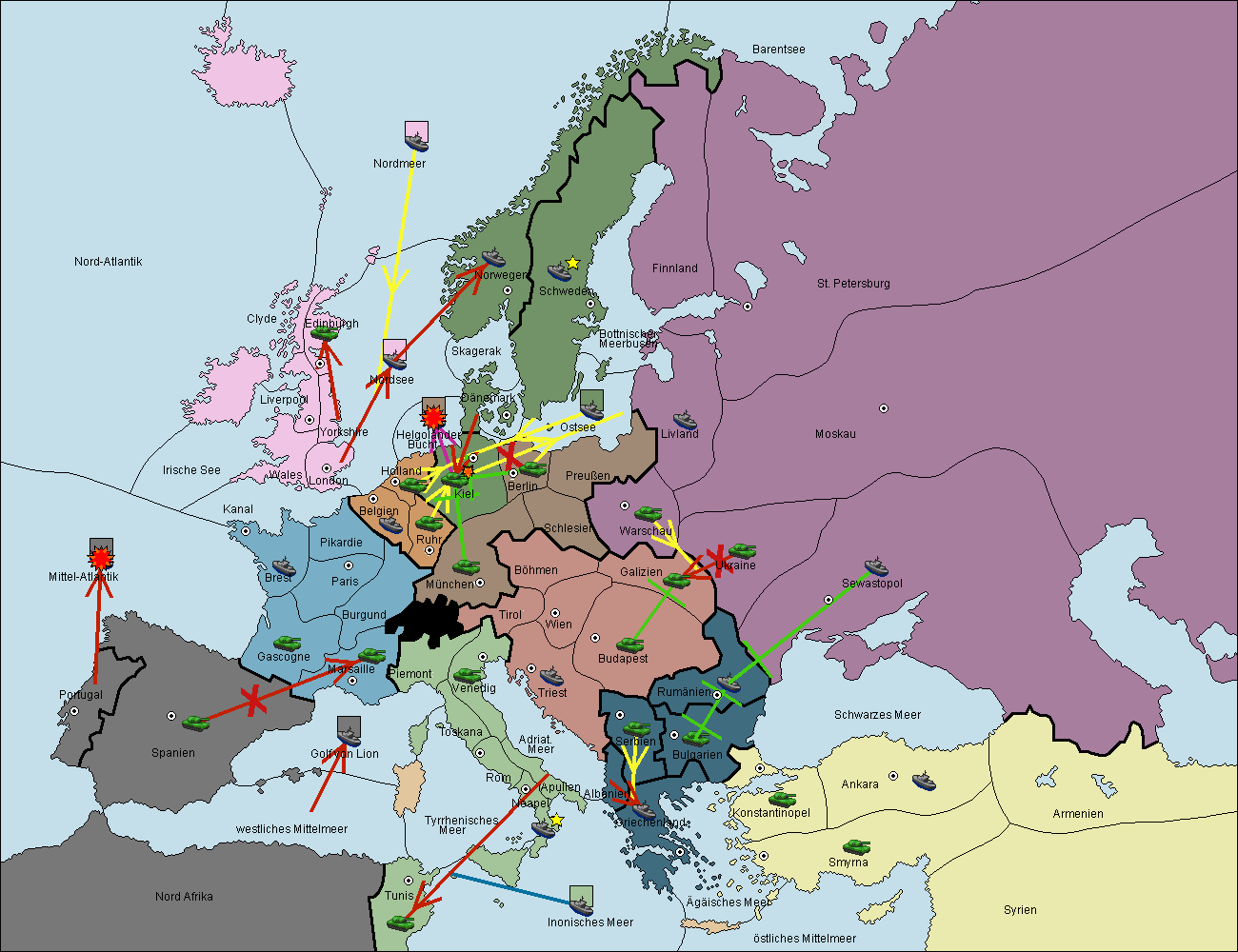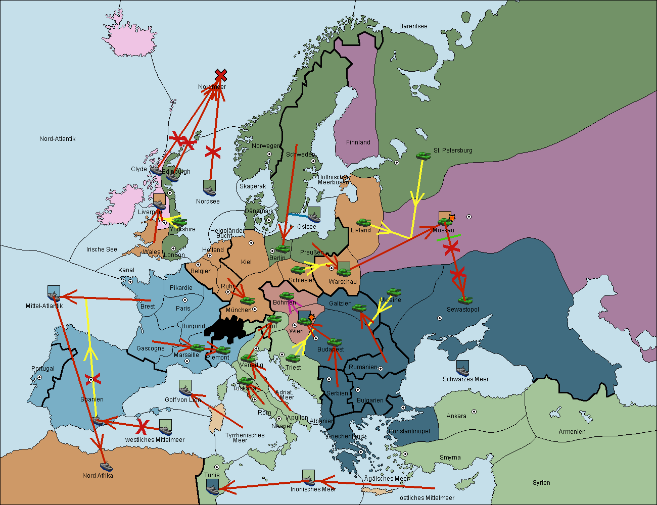 • Die Flotte in Spanien (Südküste) support move nach westl. Mittelmeer von Mittel-Atlantik.