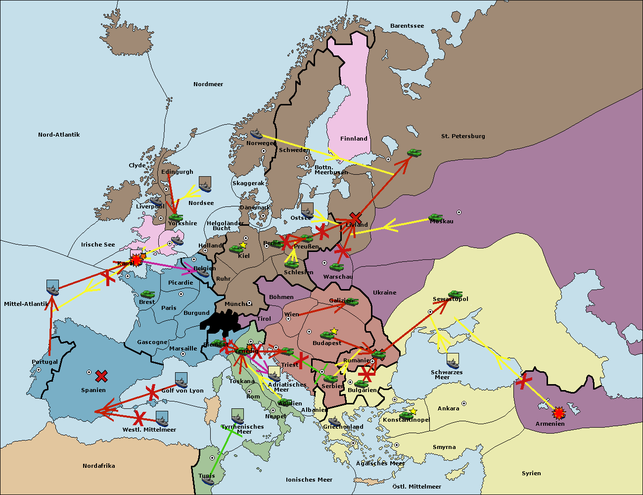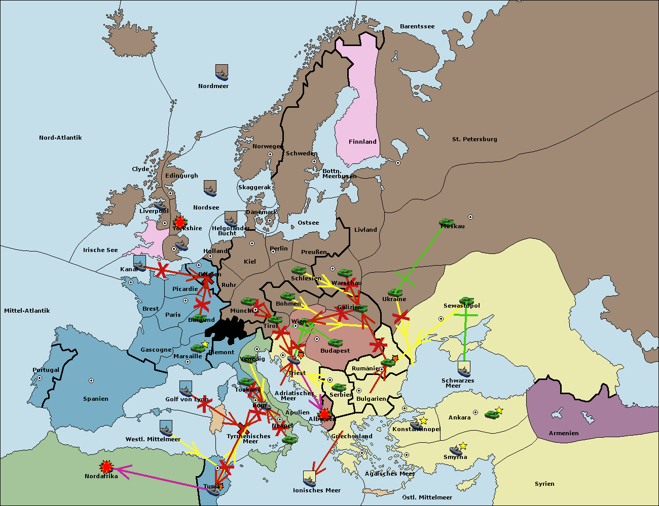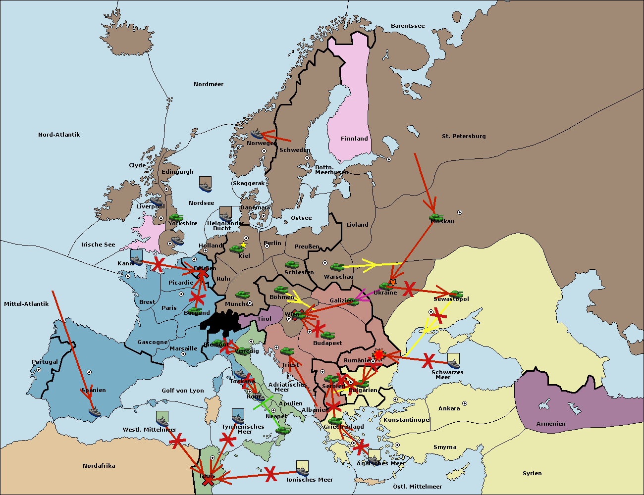 • Die Flotte in Tunis move nach Nord Afrika. (gescheitert)