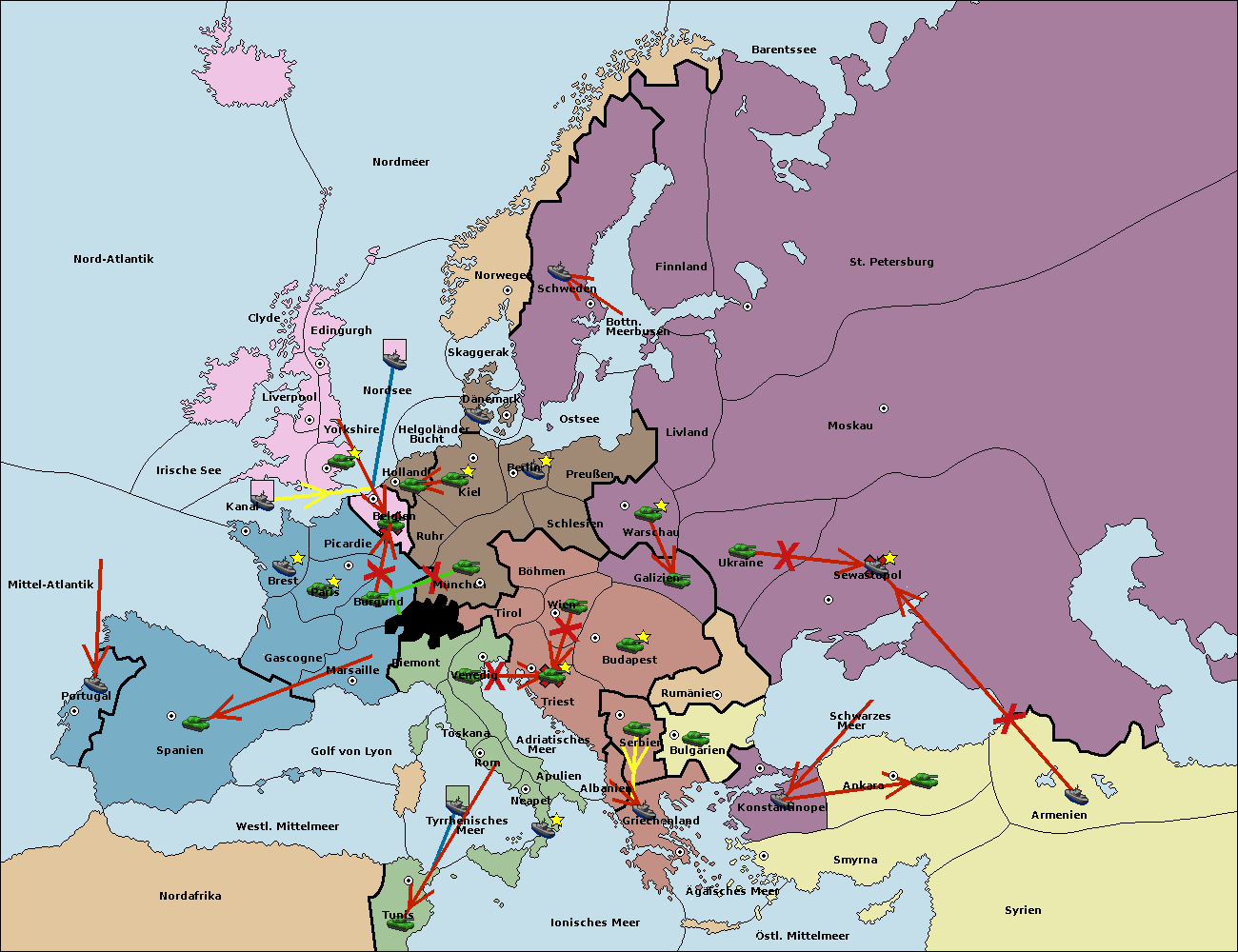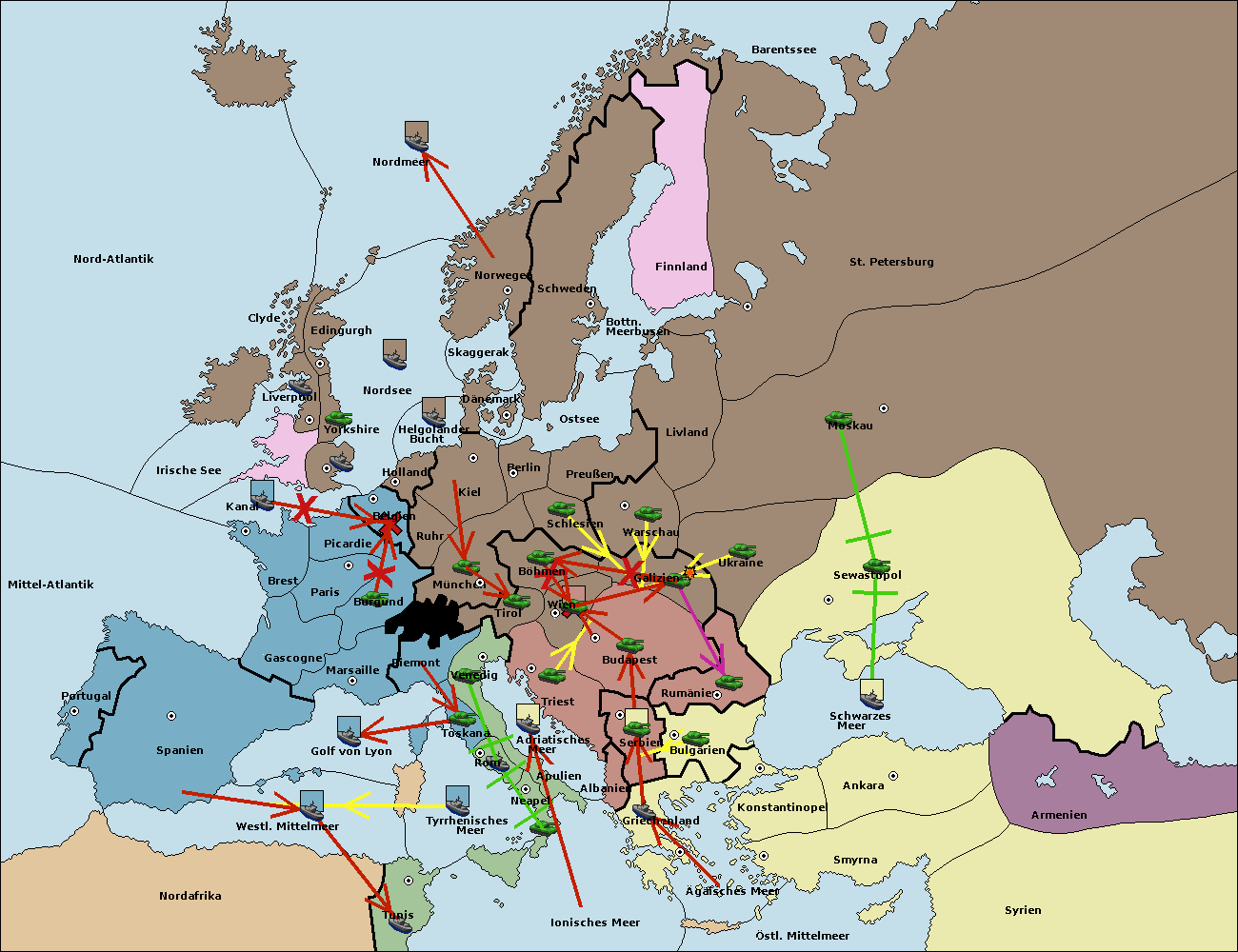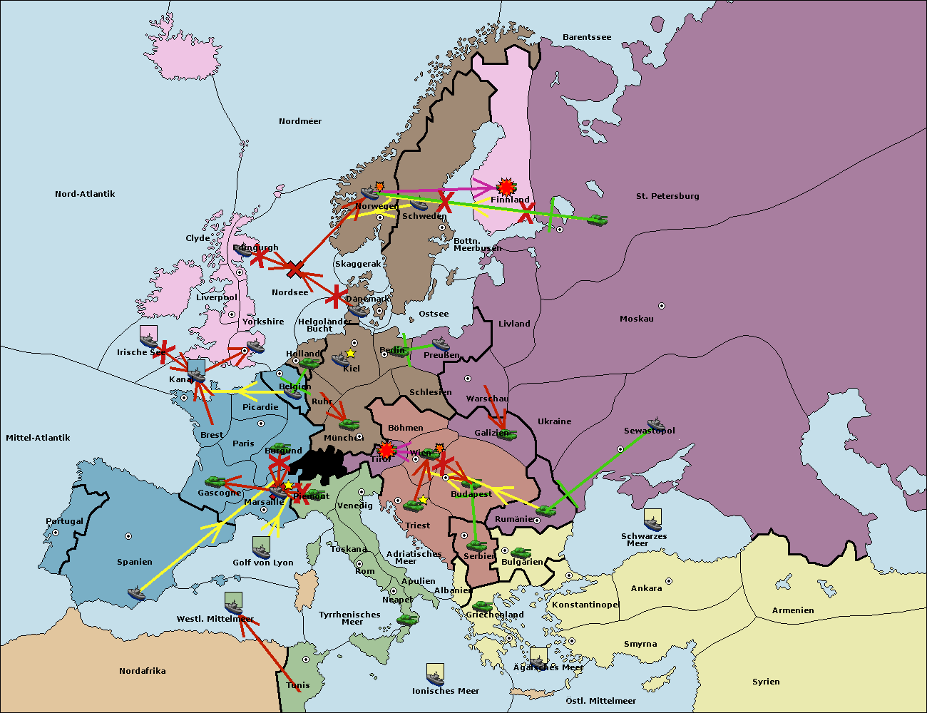 • Die Flotte in Tunis move nach Nord Afrika. (gescheitert)