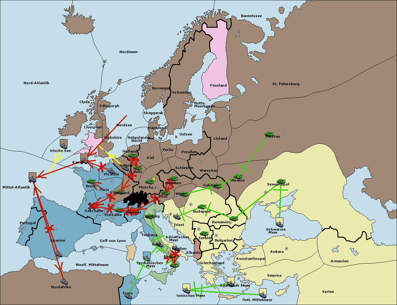 • Die Flotte in Nord Afrika move nach westl. Mittelmeer. (gescheitert)
