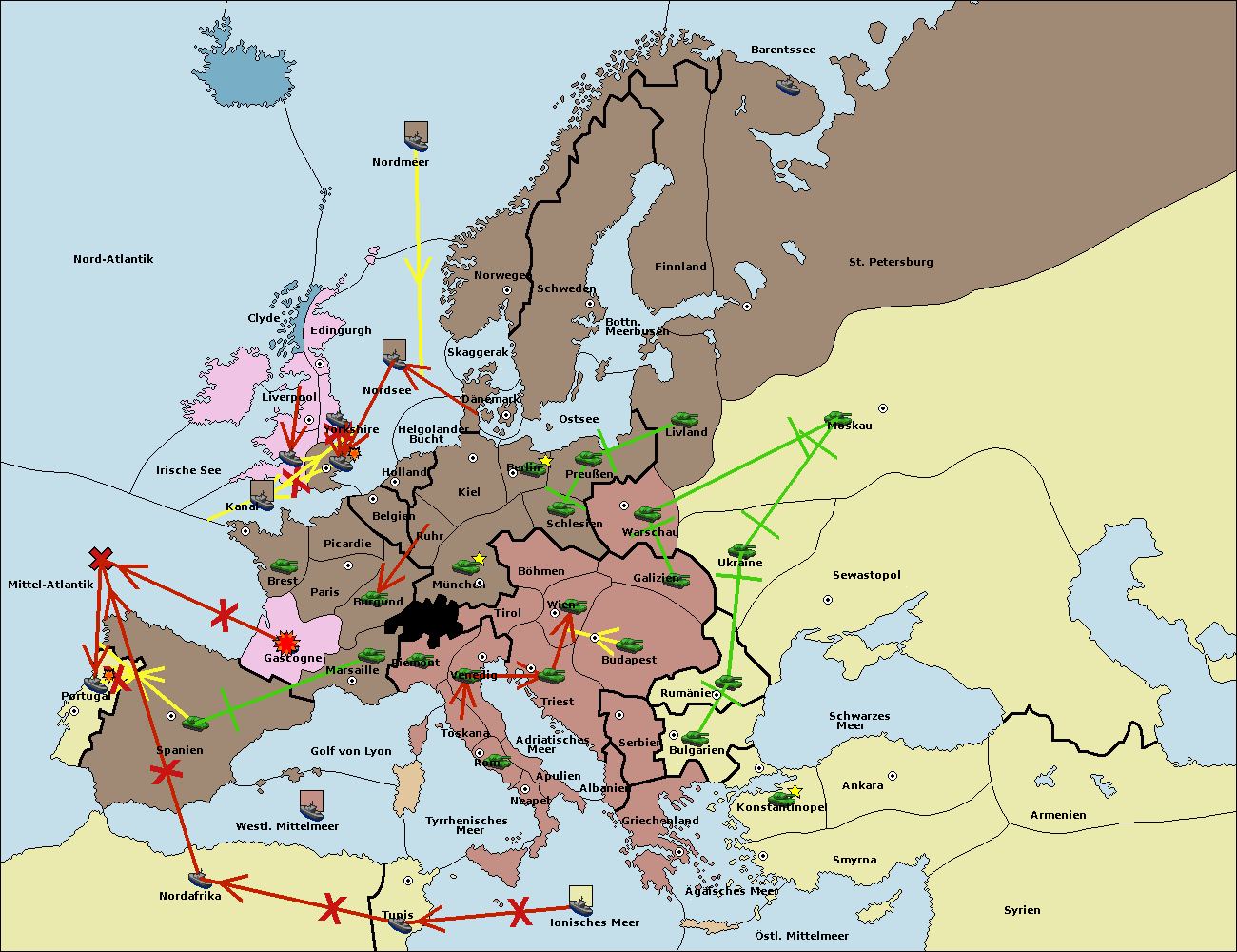 • Die Flotte in Spanien (Südküste) move nach Marseille.
