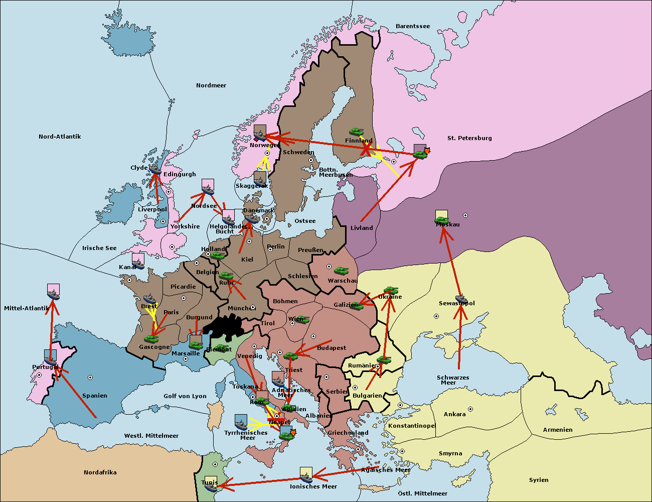 • Die Armee in Konstantinopel support hold nach Bulgarien.