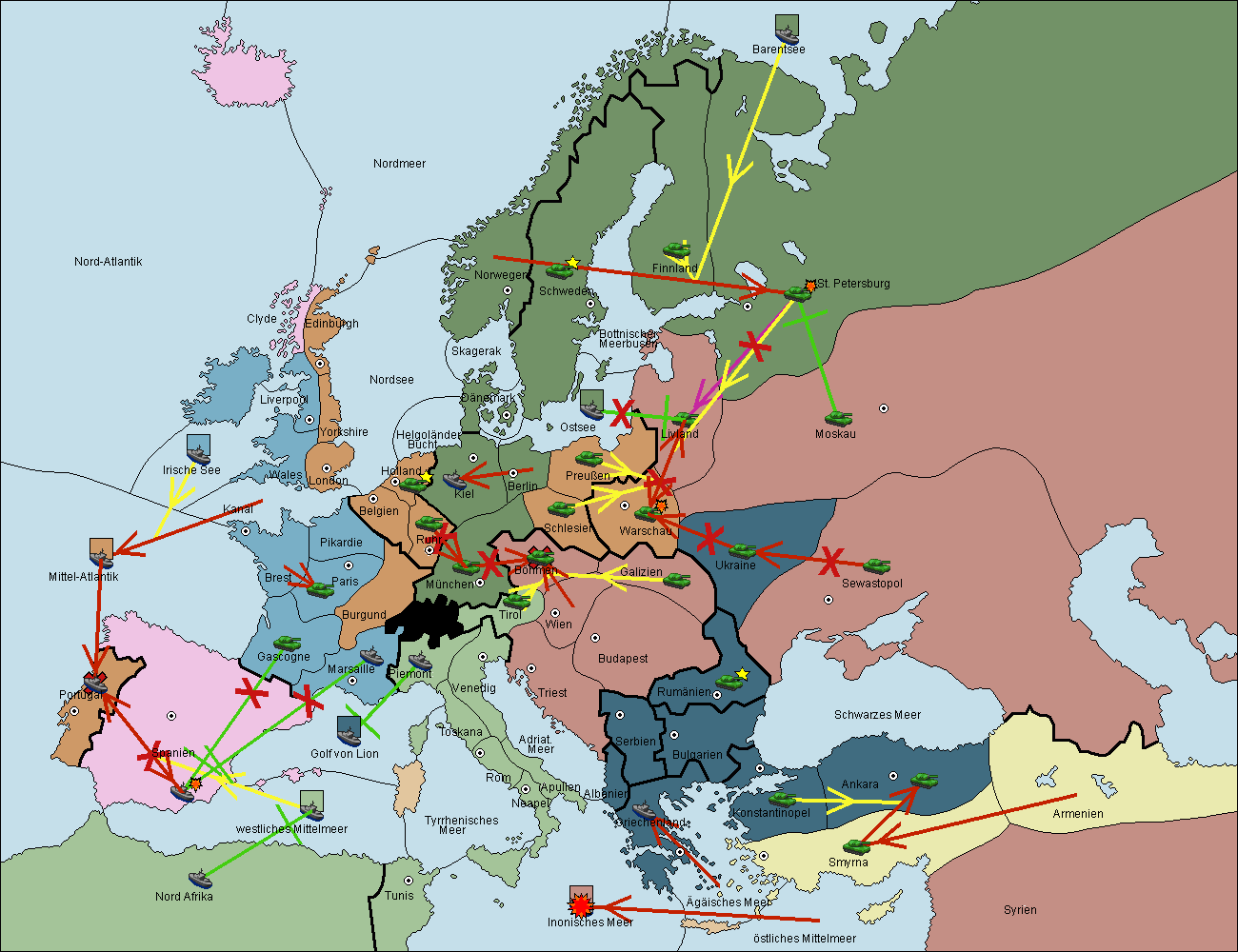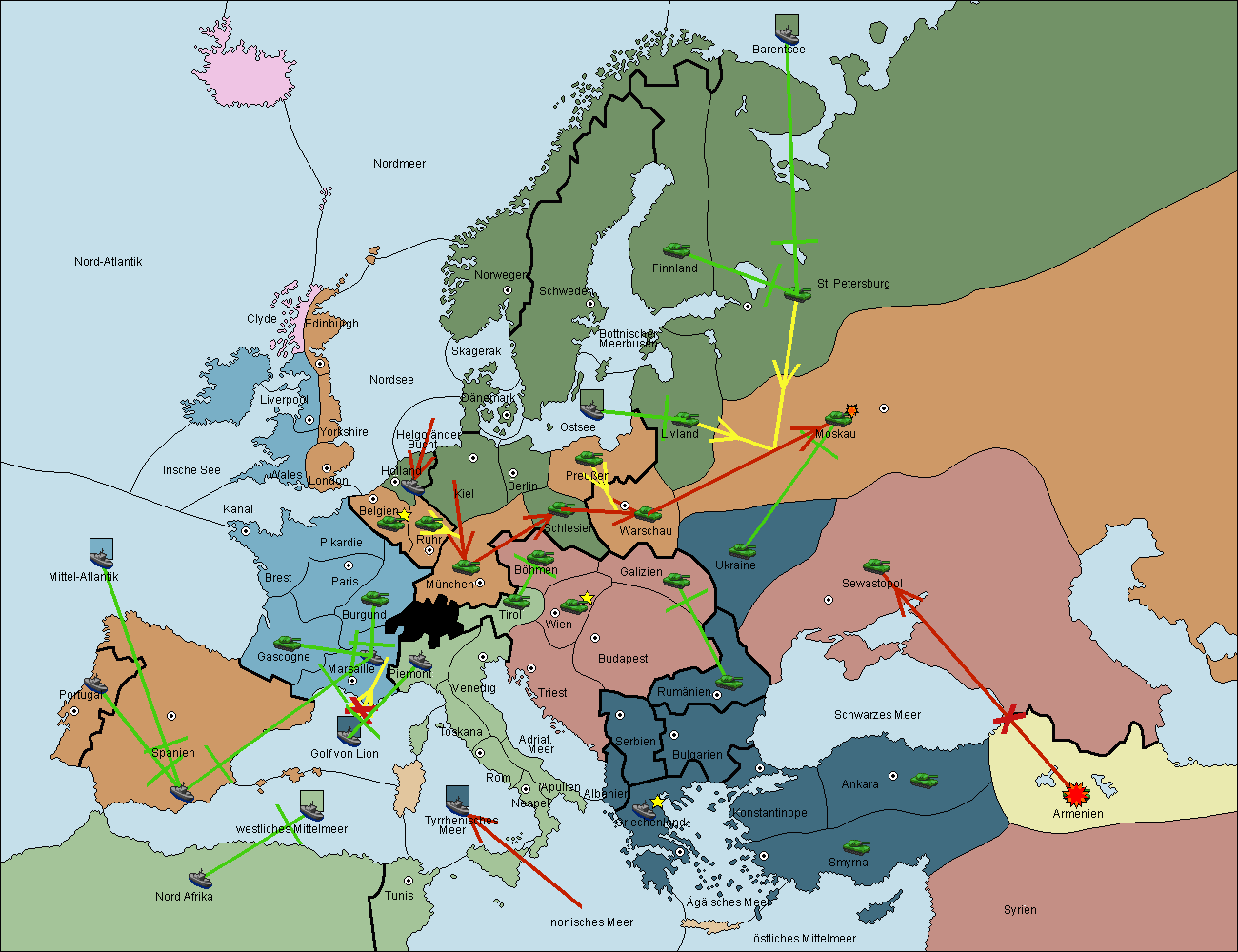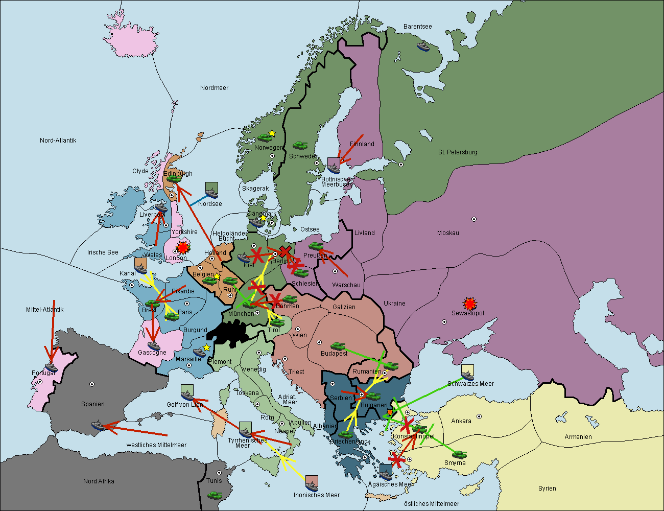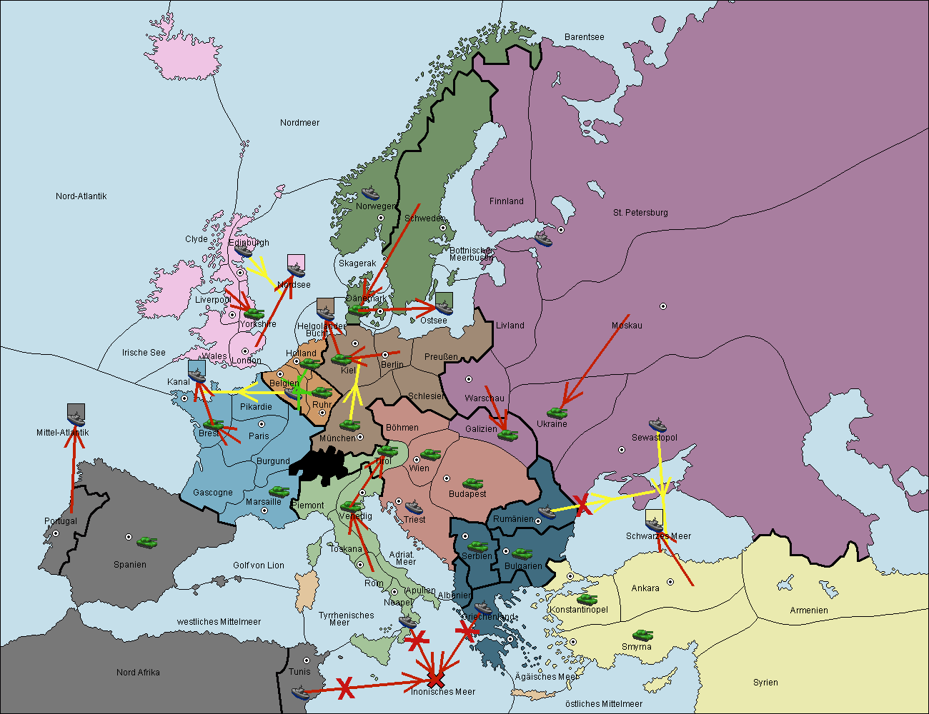 • Die Flotte in Nord Afrika support hold nach westl. Mittelmeer.