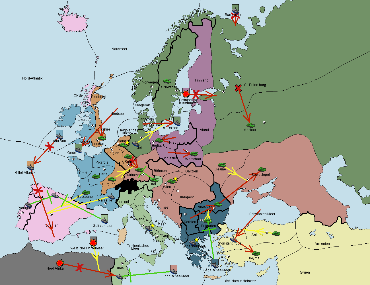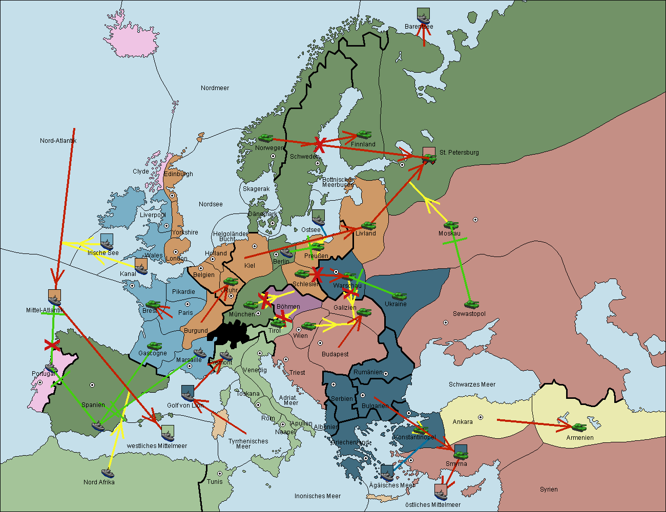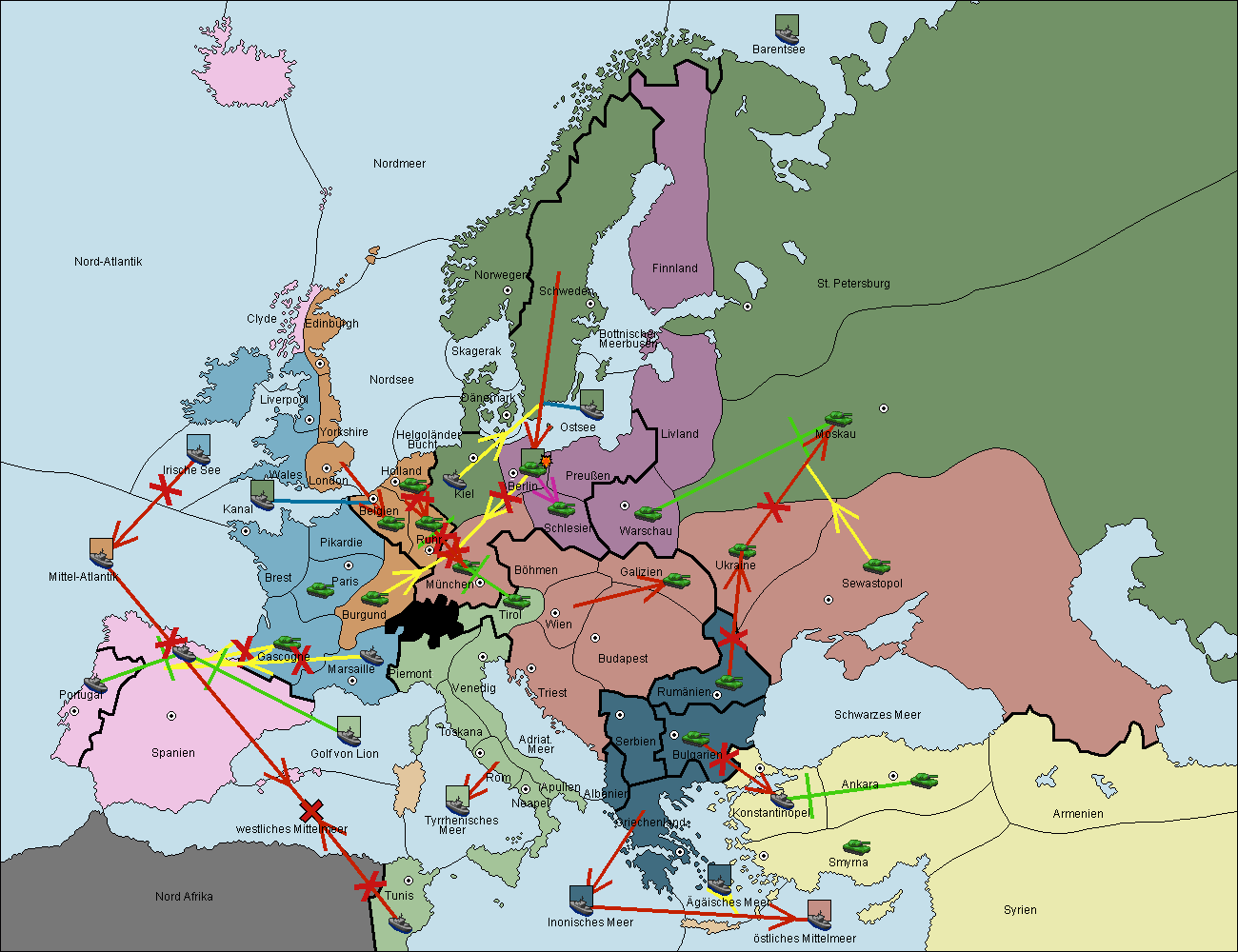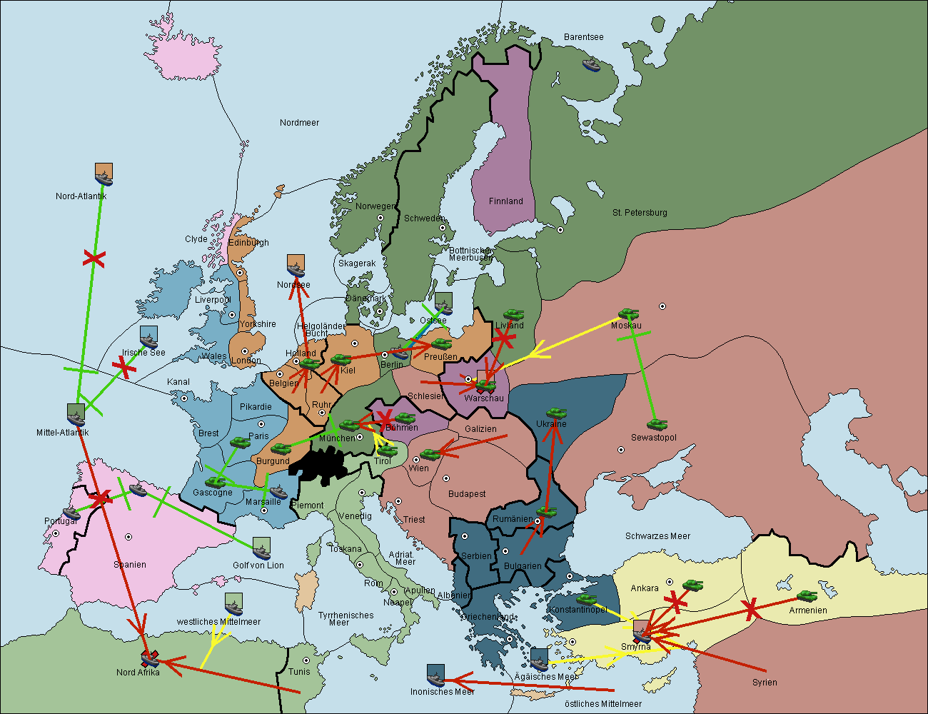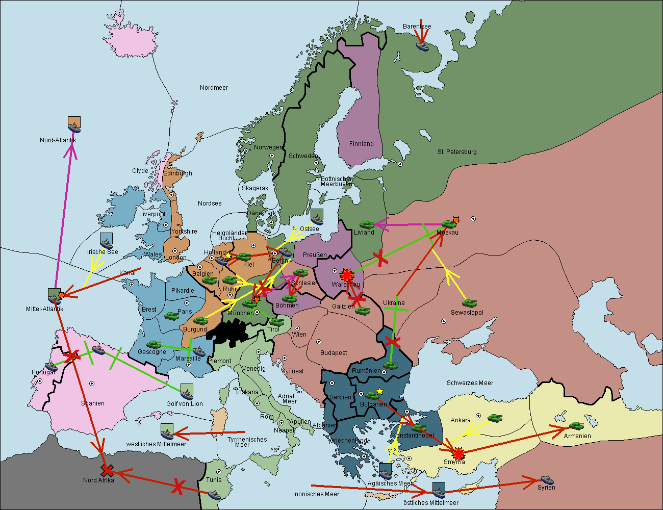 • Die Flotte in Nord Afrika support hold nach westl. Mittelmeer.