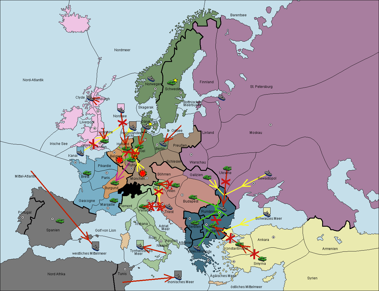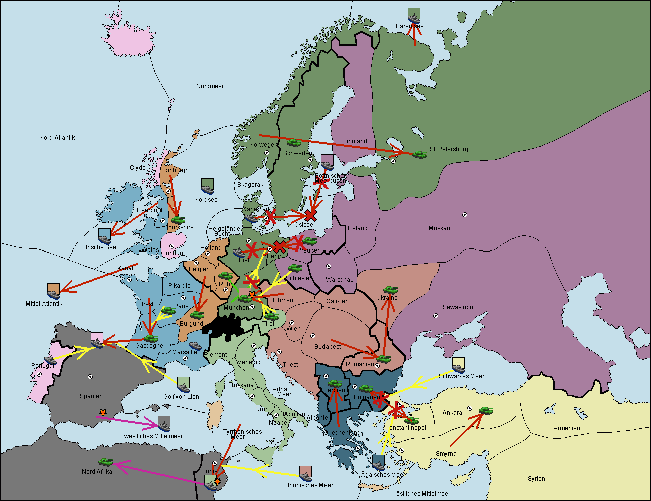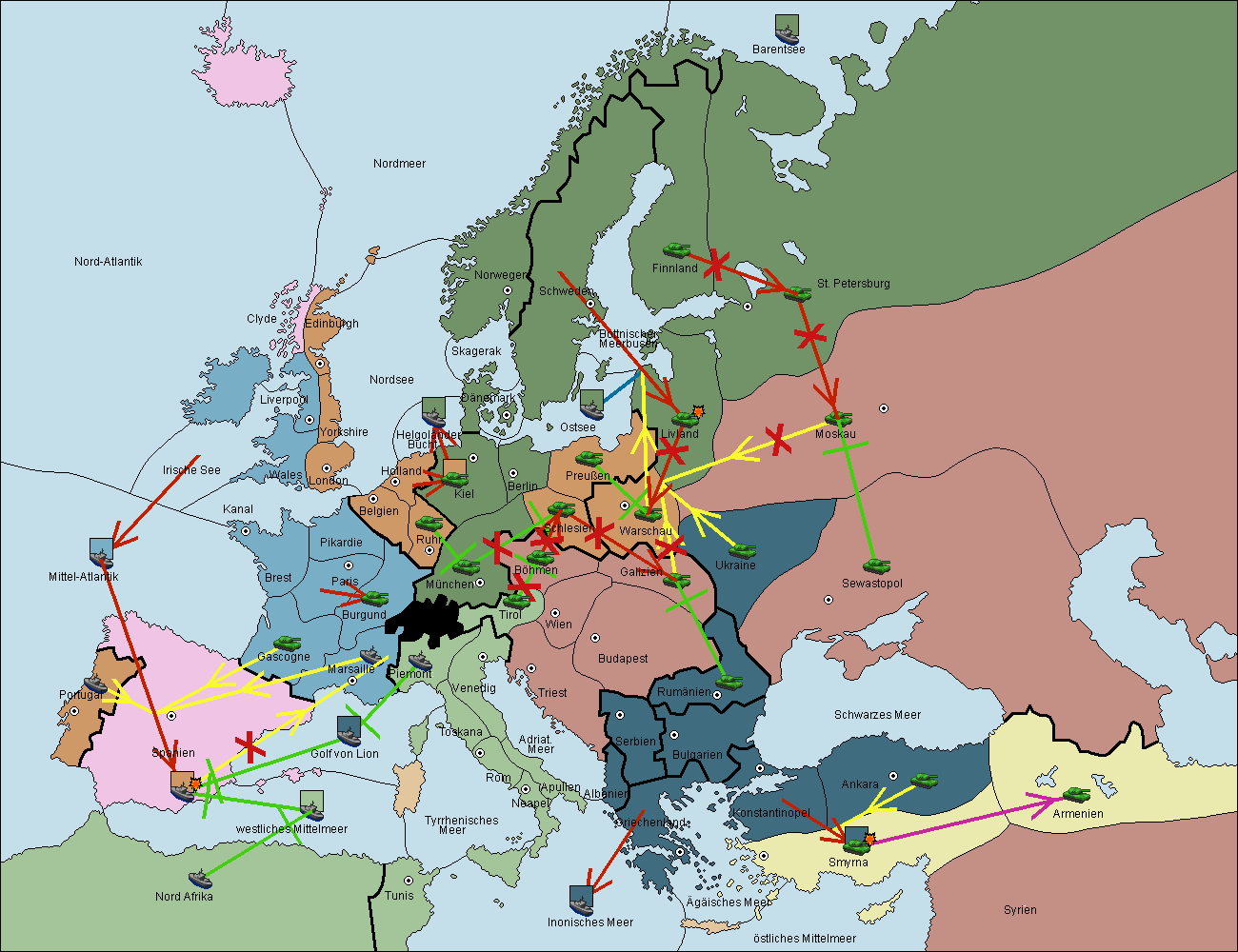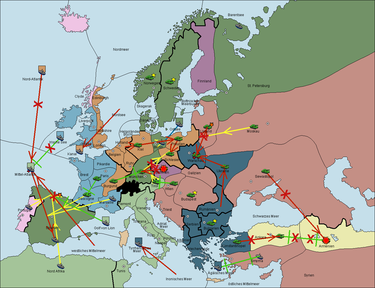 • Die Flotte in Nord Afrika support hold nach westl. Mittelmeer.