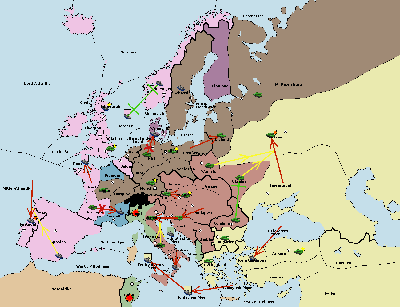 • Die Armee in Warschau support move nach Moskau von Sewastopol. (gescheitert)