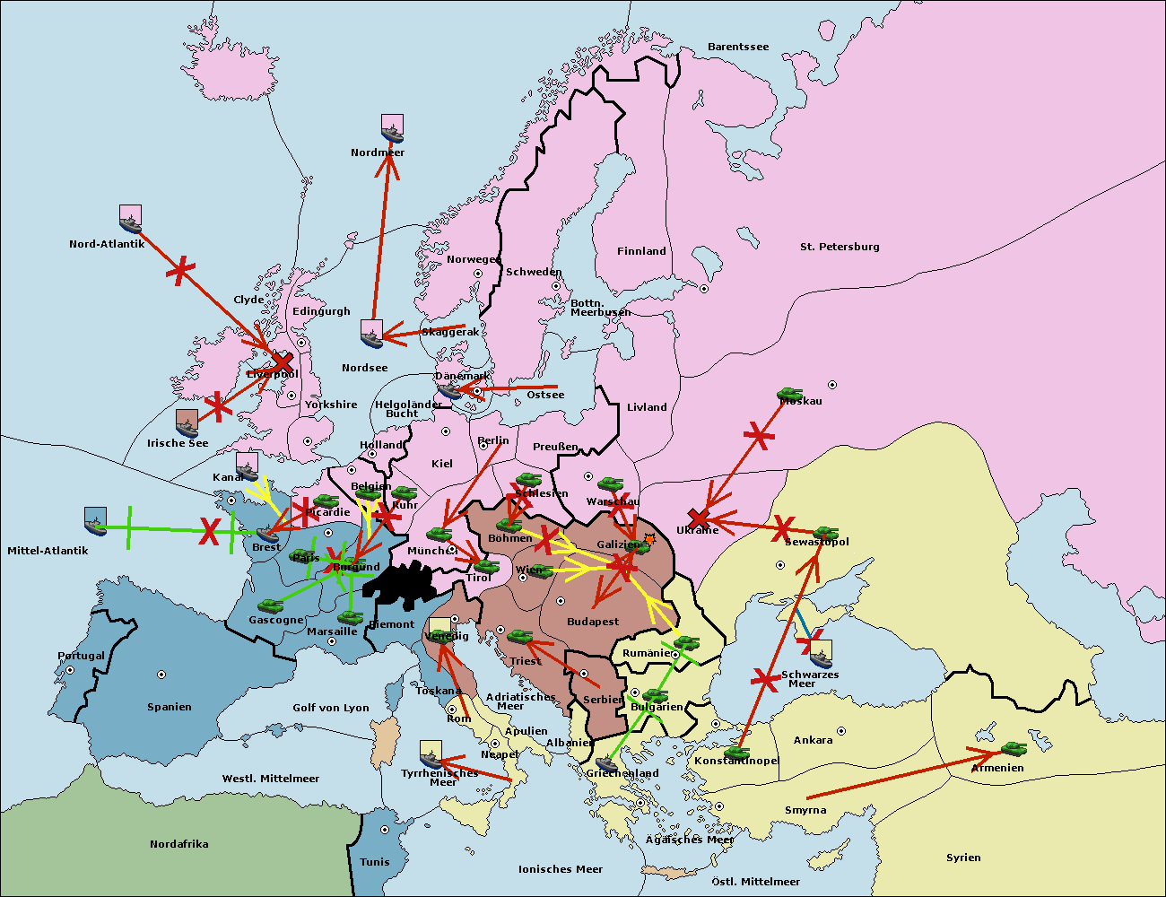 • Die Flotte in Nord Afrika support move nach Tunis von westl. Mittelmeer.