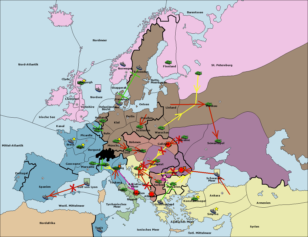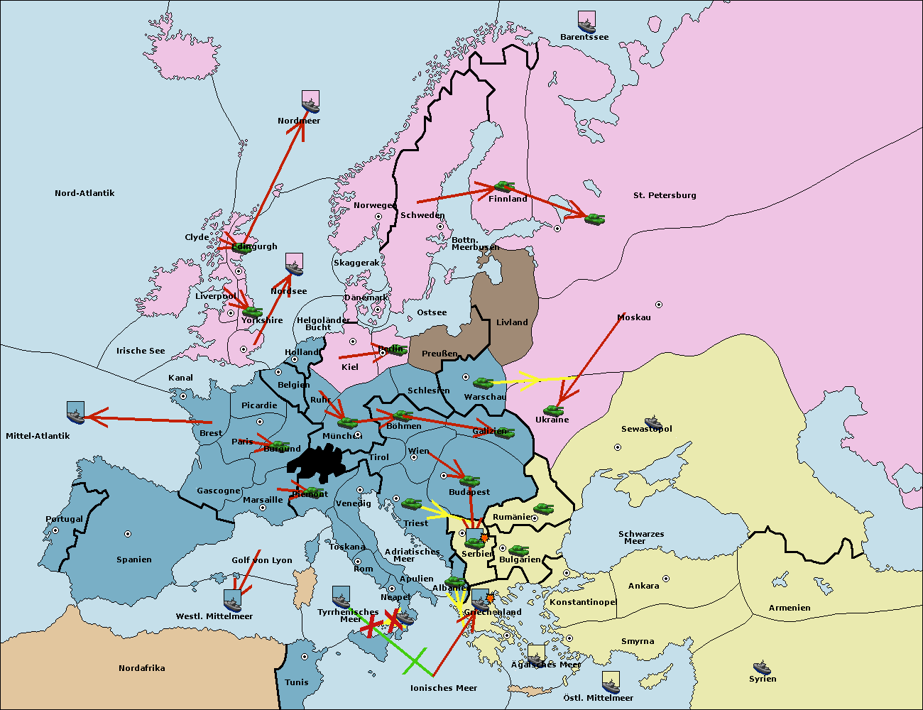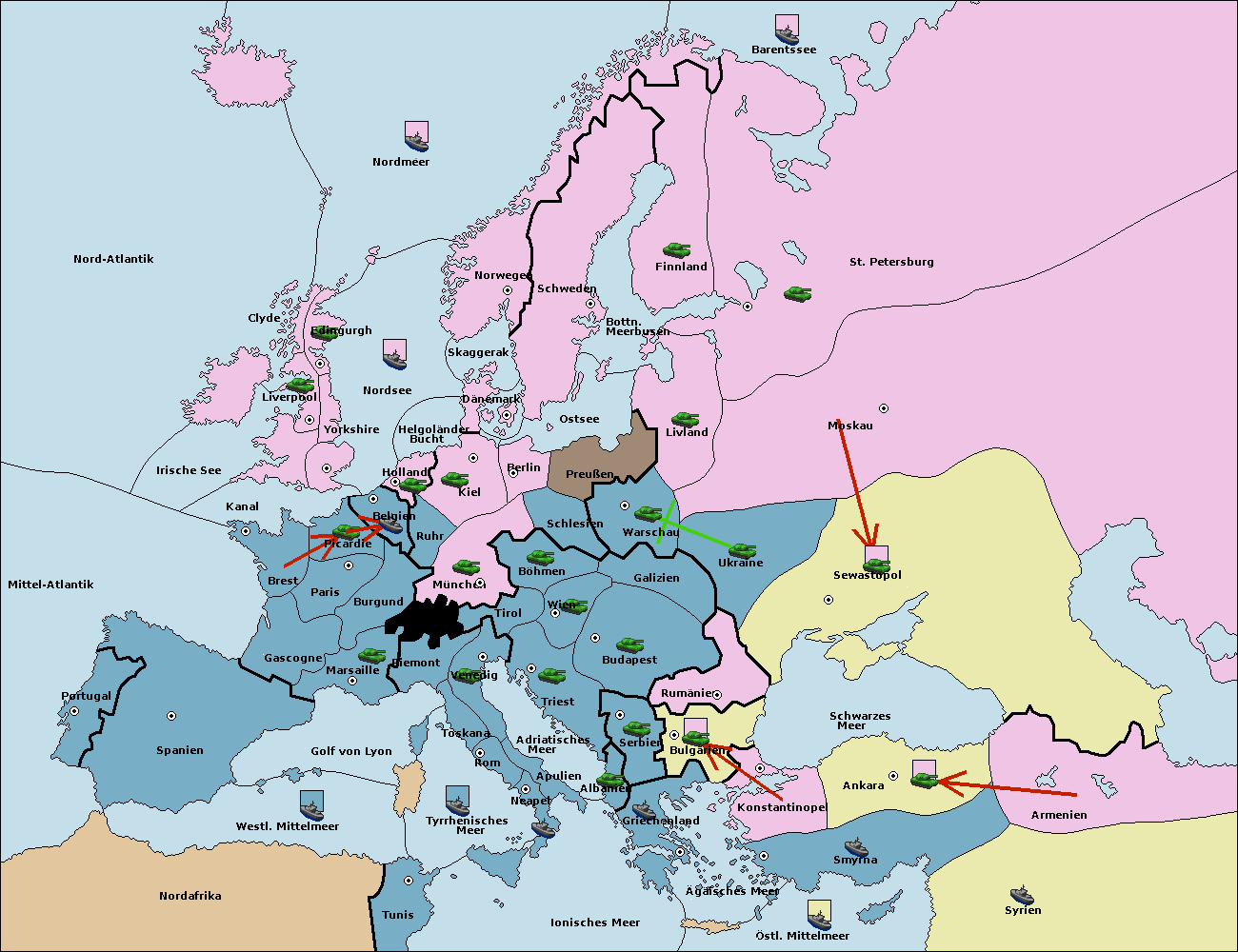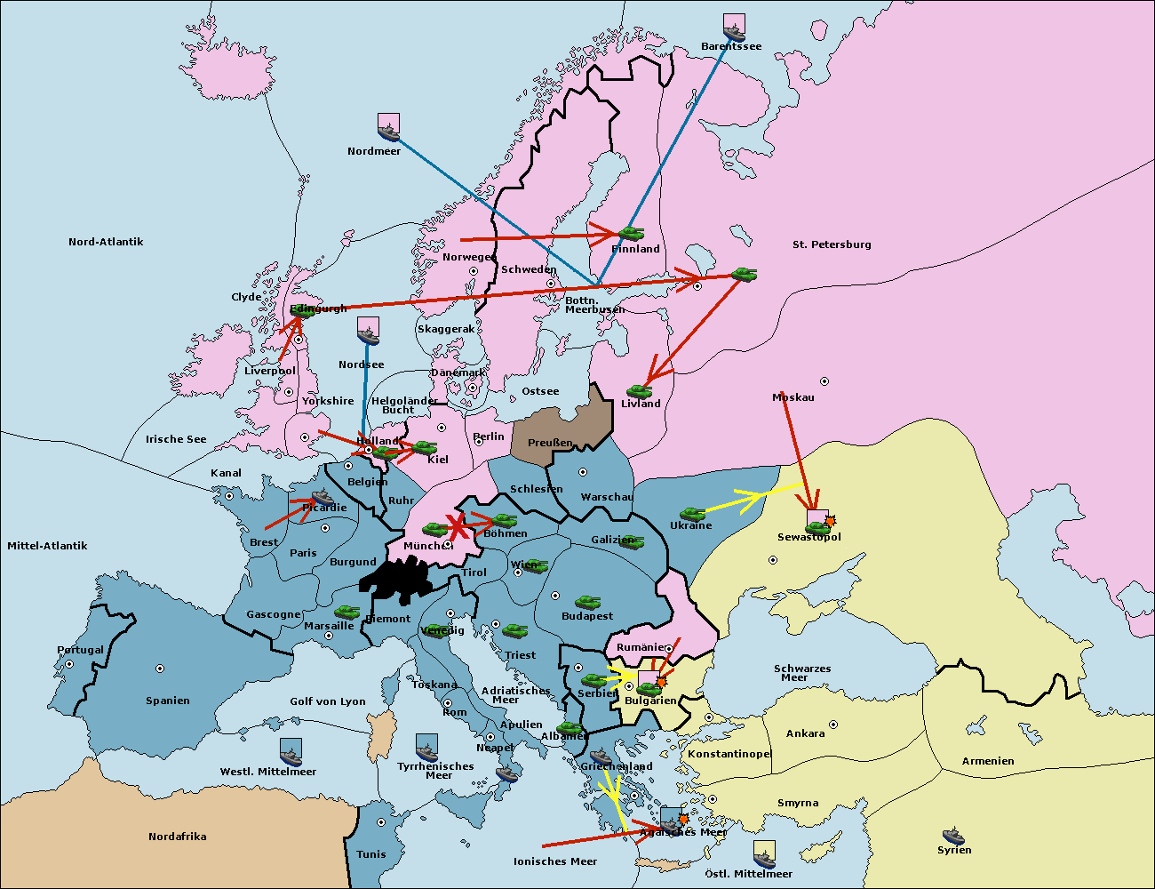 • Die Armee in Bulgarien wird zerstörtFlotte in Bulgarien gebaut.