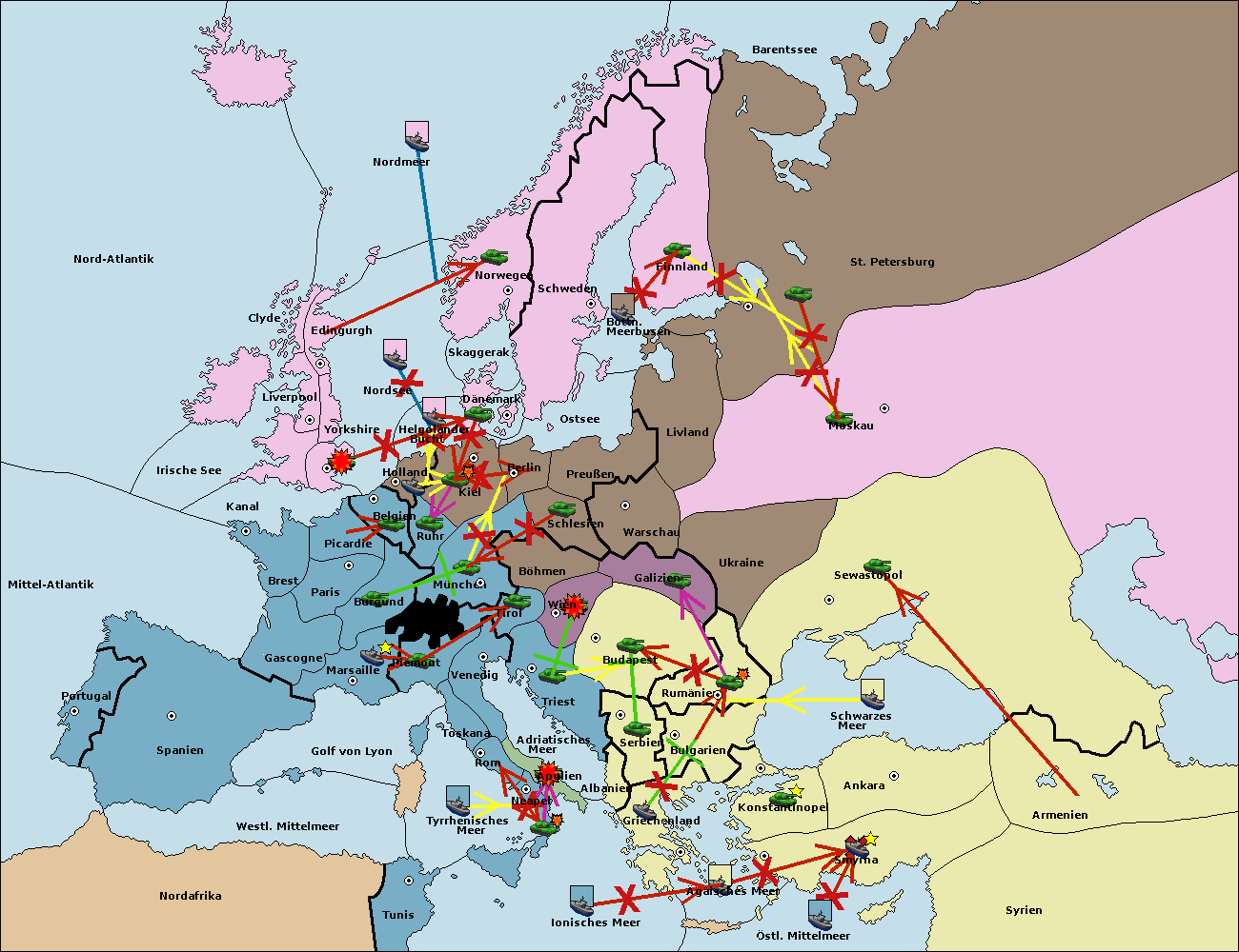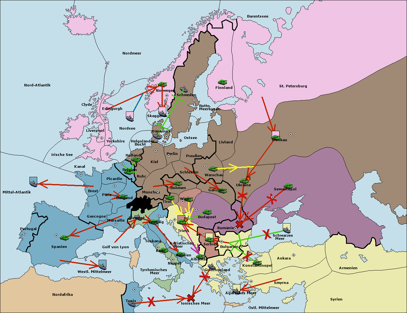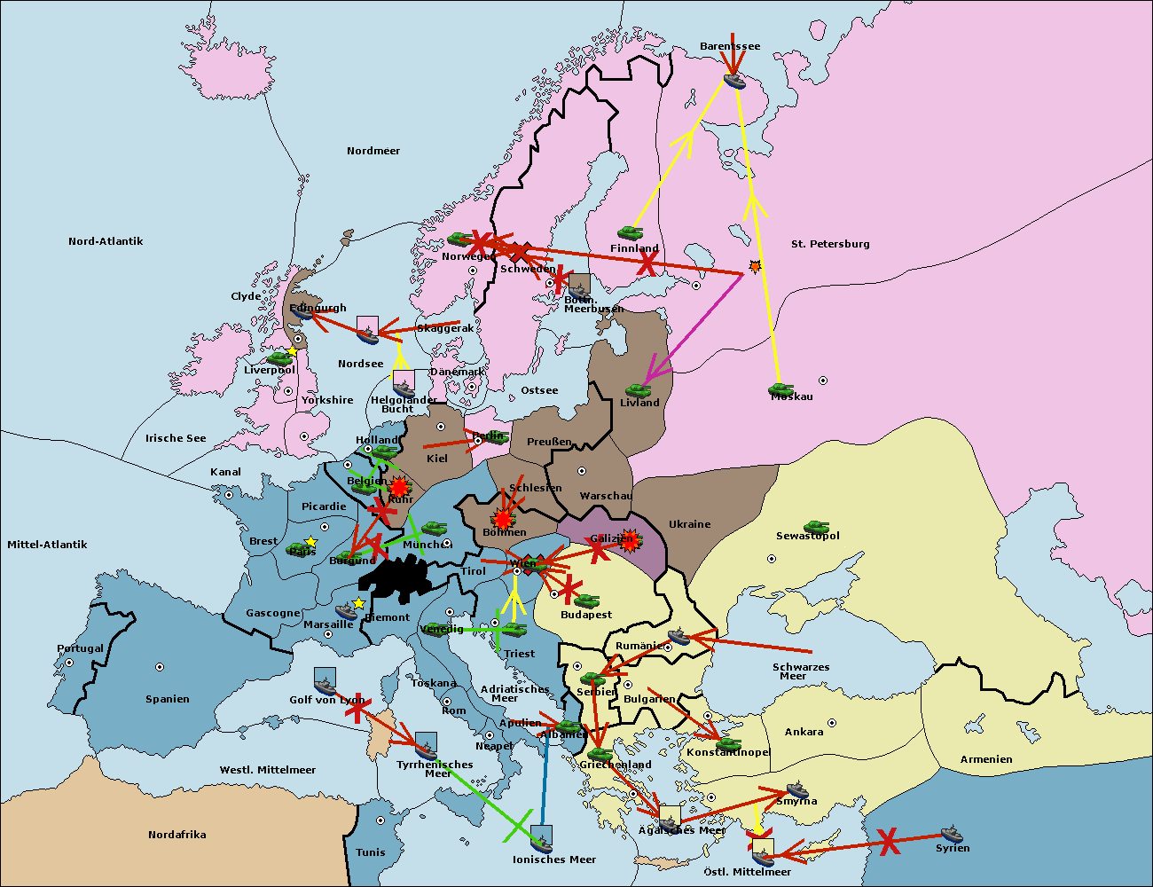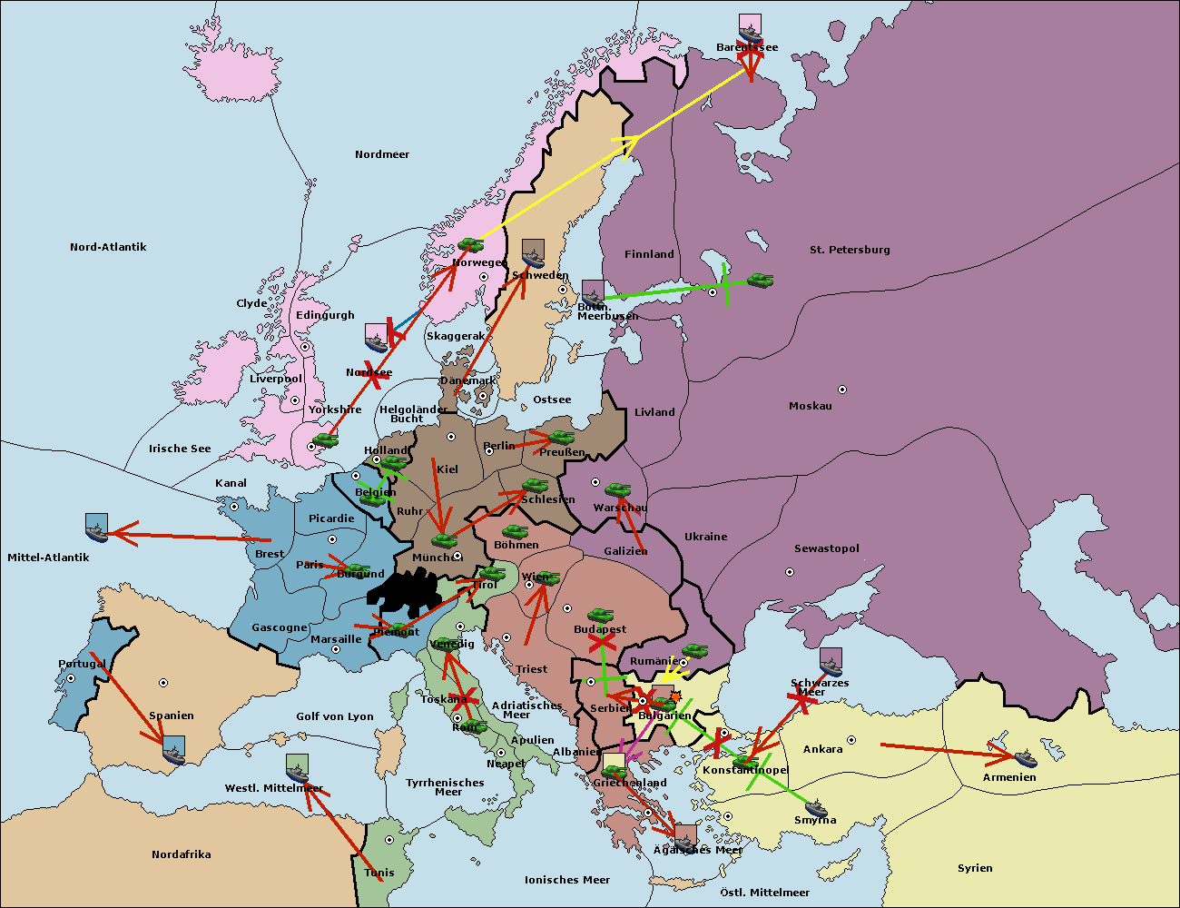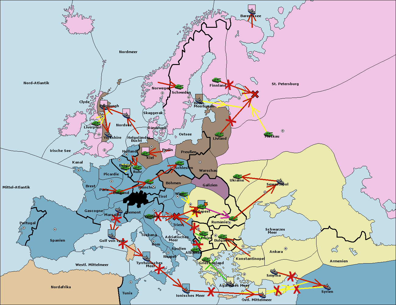 • Die Armee in Bulgarien wird zerstörtFlotte in Bulgarien gebaut.