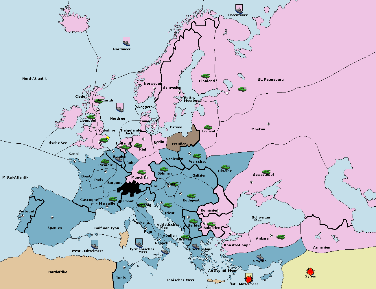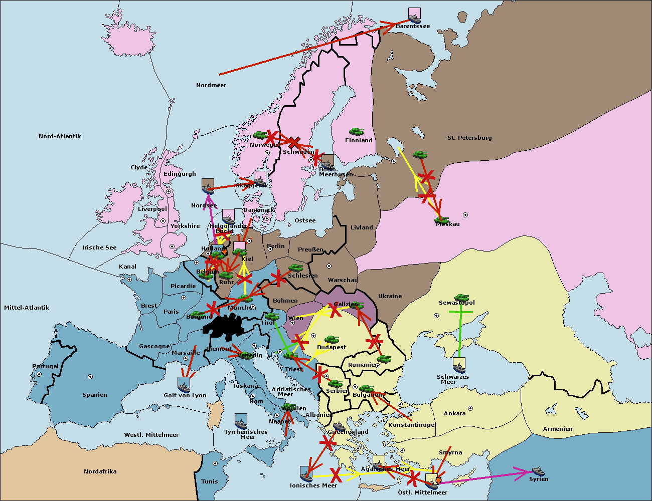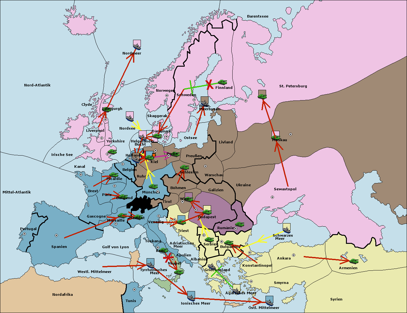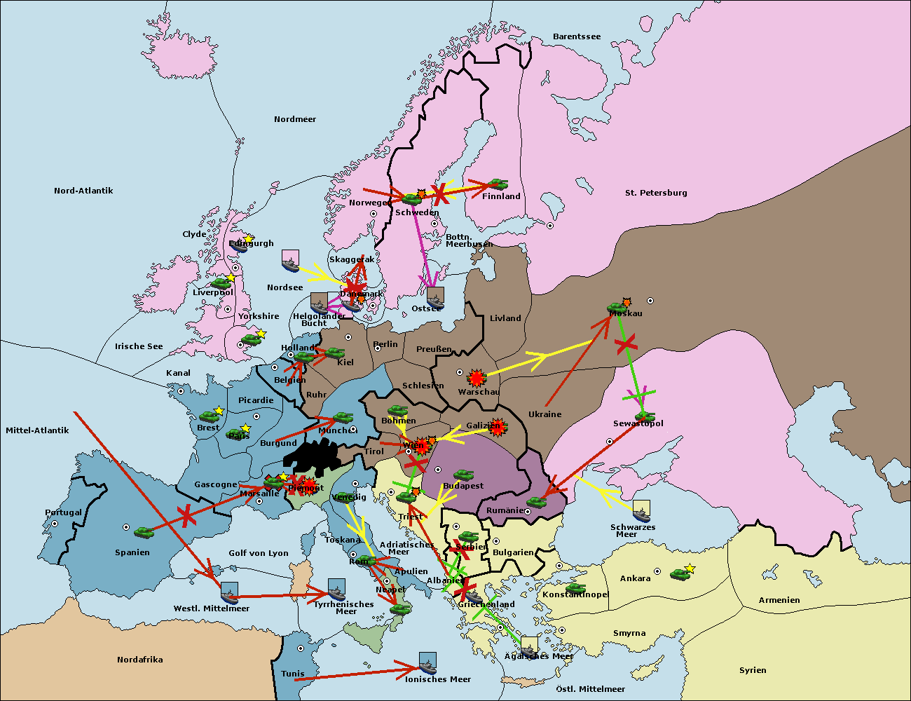 • Die Armee in Bulgarien wird zerstörtFlotte in Bulgarien gebaut.