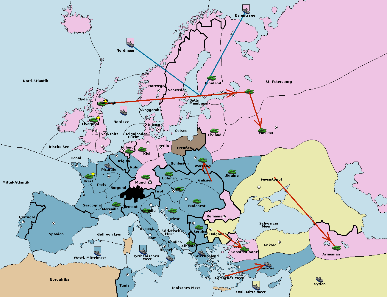 • Die Flotte in Barentssee move nach St. Petersburg (Nordküste). (gescheitert)