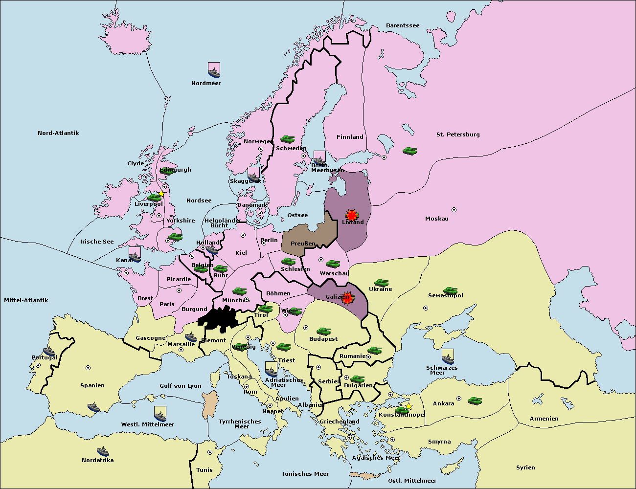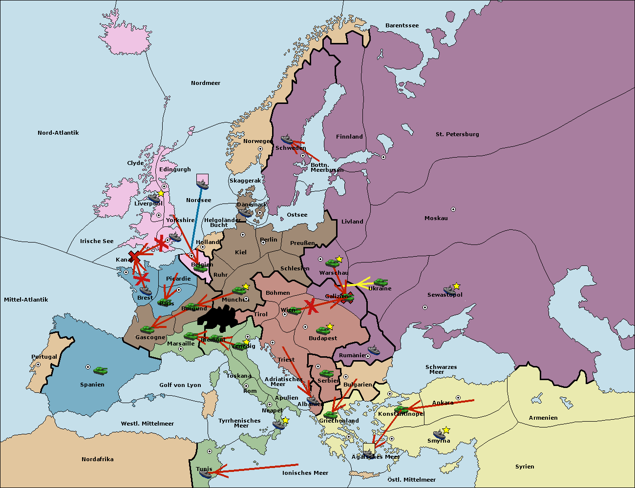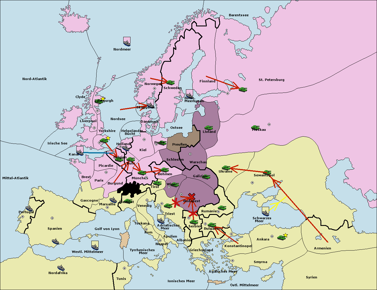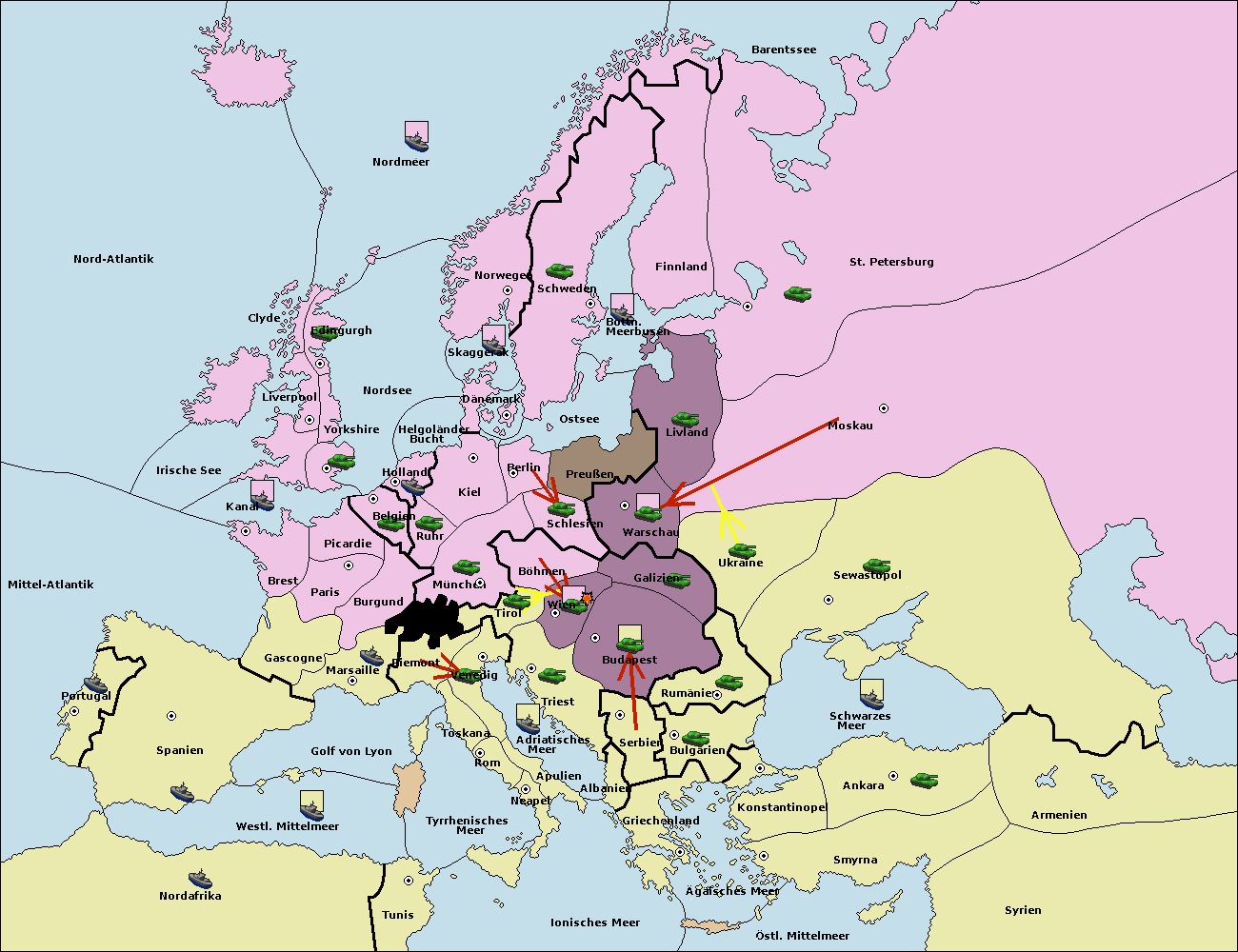 • Die Armee in Wien support move nach Budapest von Galizien.